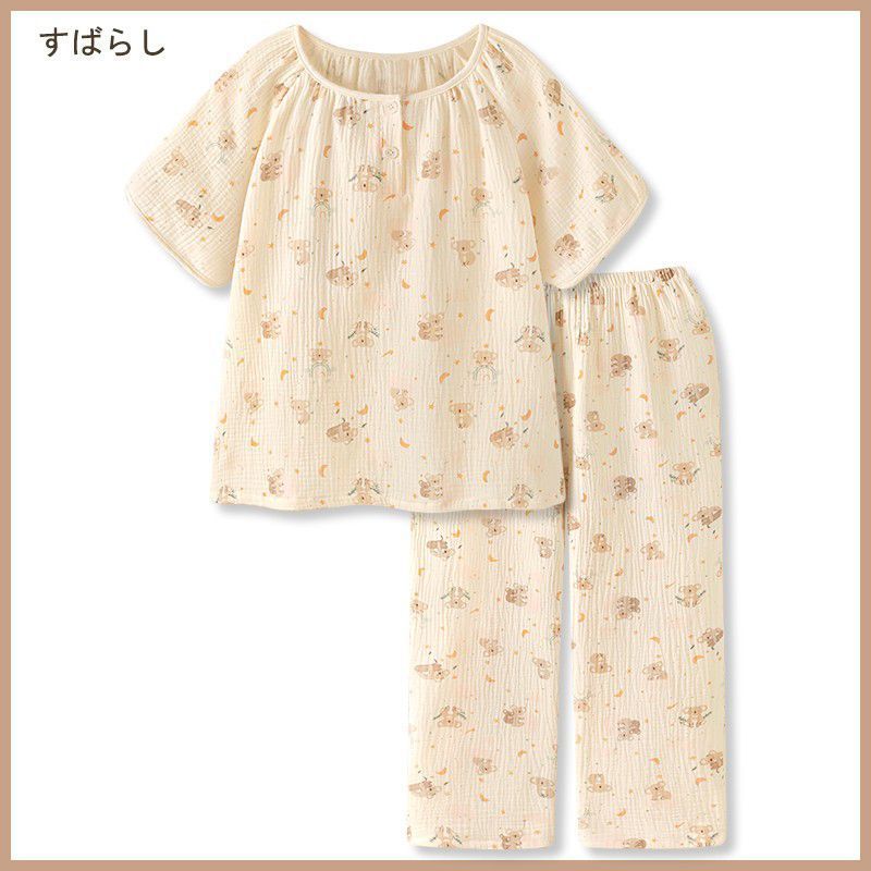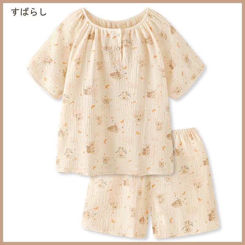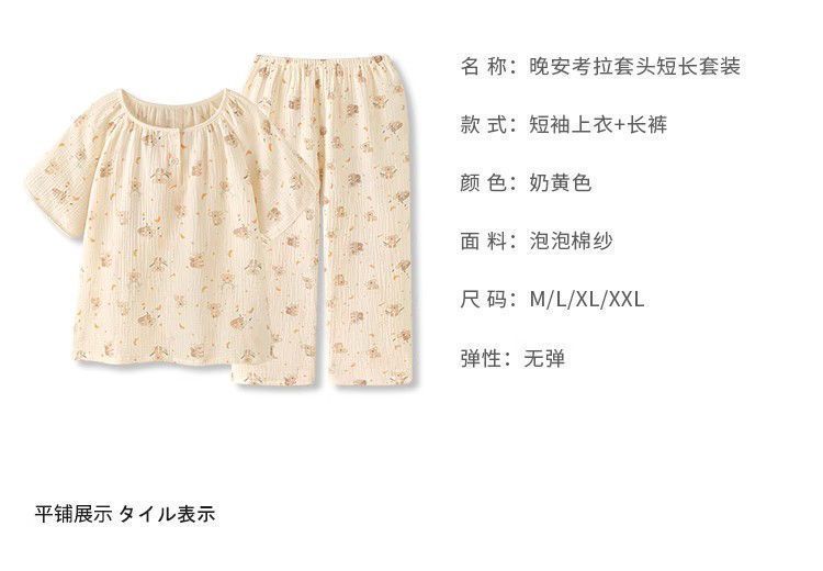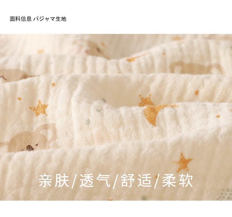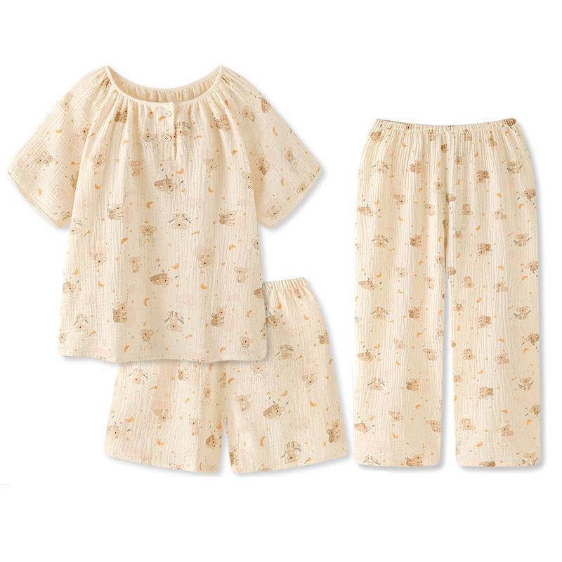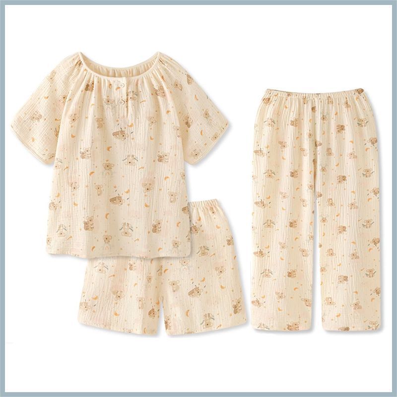 코튼 거즈 파자마 여름 여성 아기 코튼 파자마 성인 반팔 세 조각 만화 학생 홈 옷스토어 가기