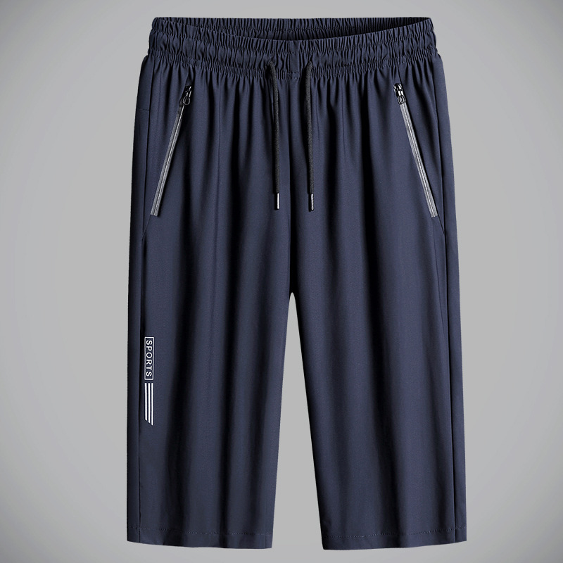 아이스 실크 카프리 바지 남성용 여름 반바지 얇은 탄성 느슨한 플러스 사이즈 큰 크기 빠른 건조 에어컨 카프리 바지
