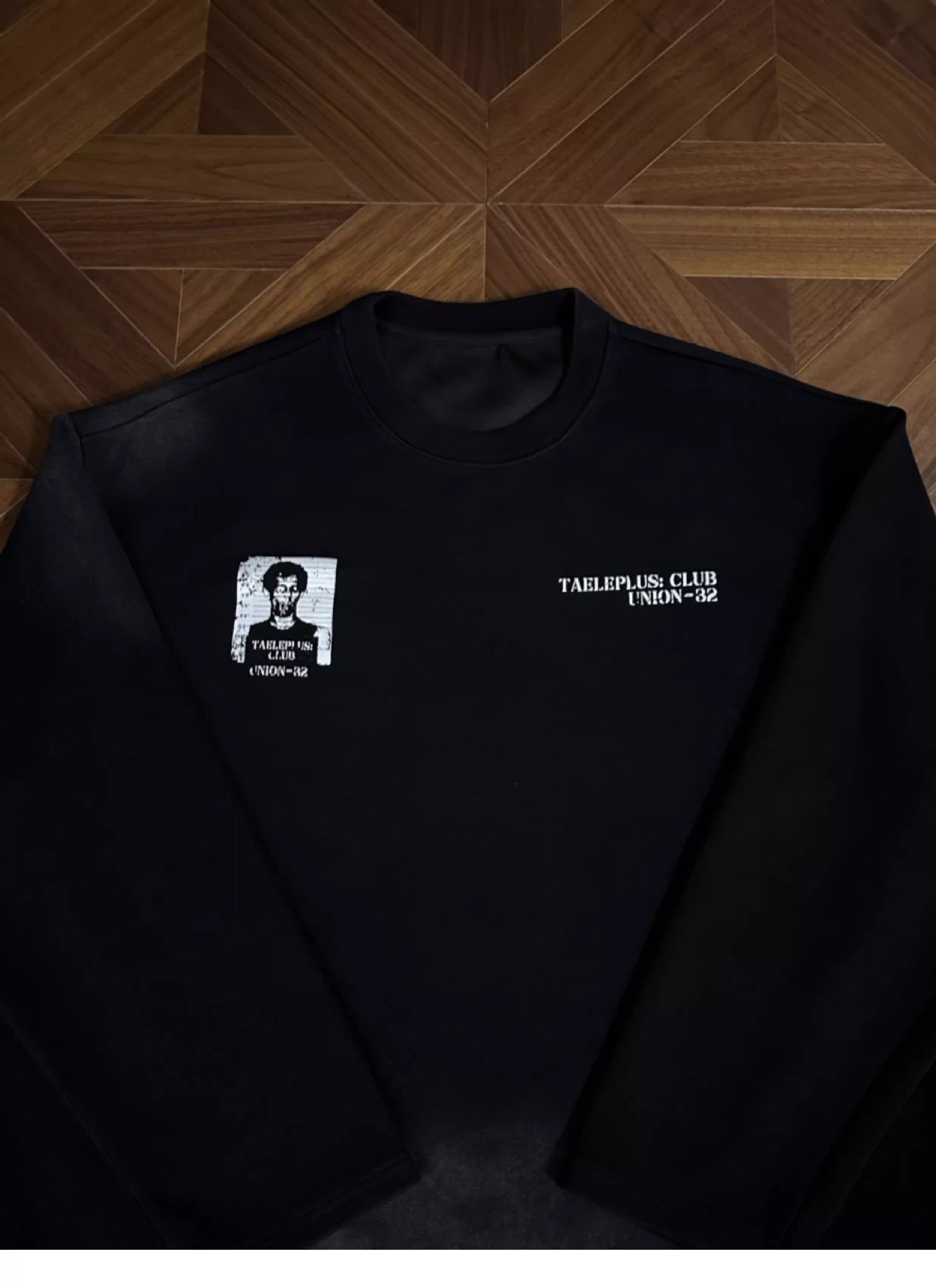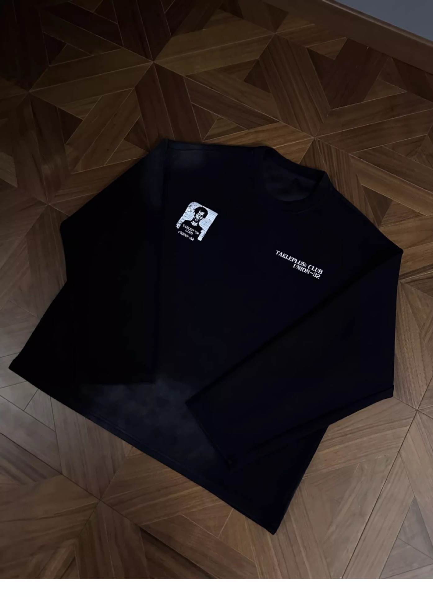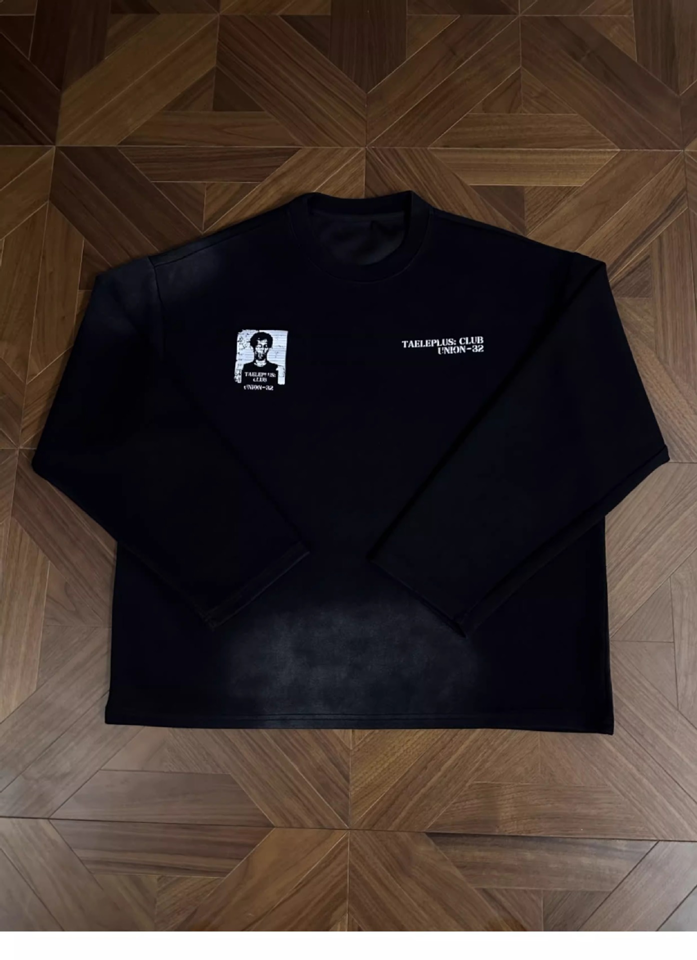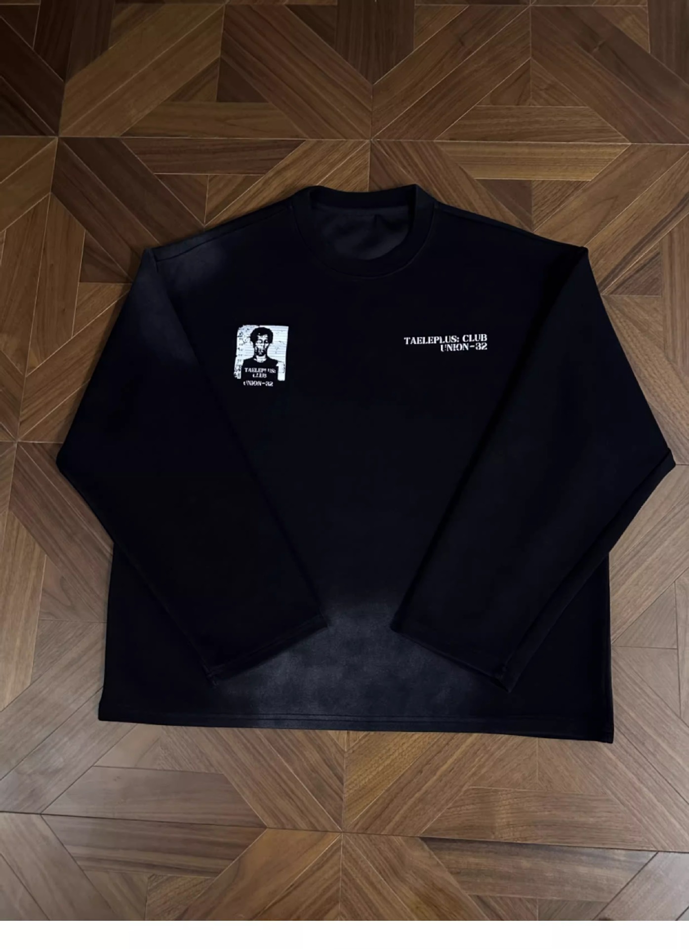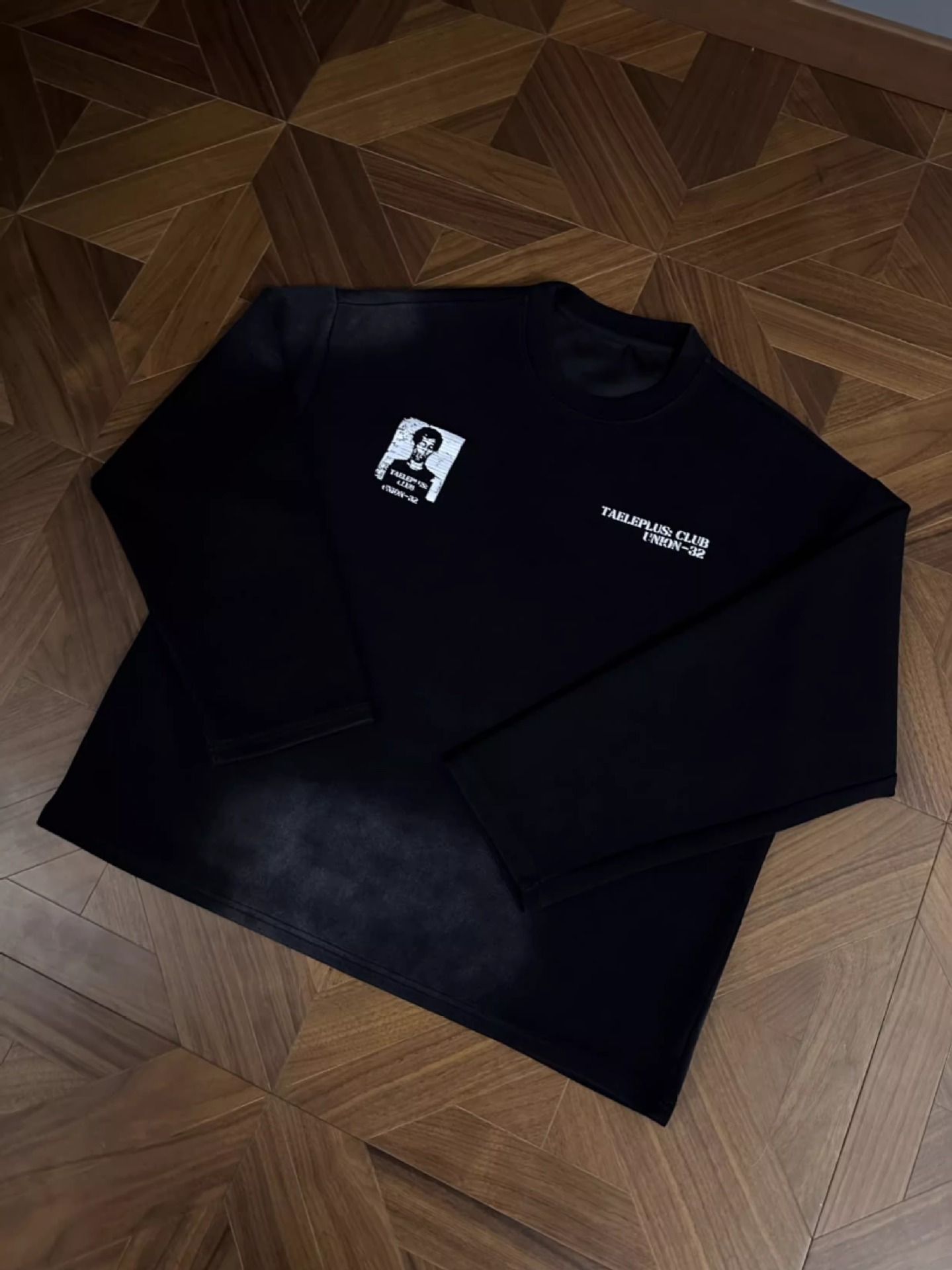 RTIMFD 미국 복고풍 캐릭터 높은 카운트 기지 긴 소매 클린 핏 크루 넥 오래 된 파괴 내부