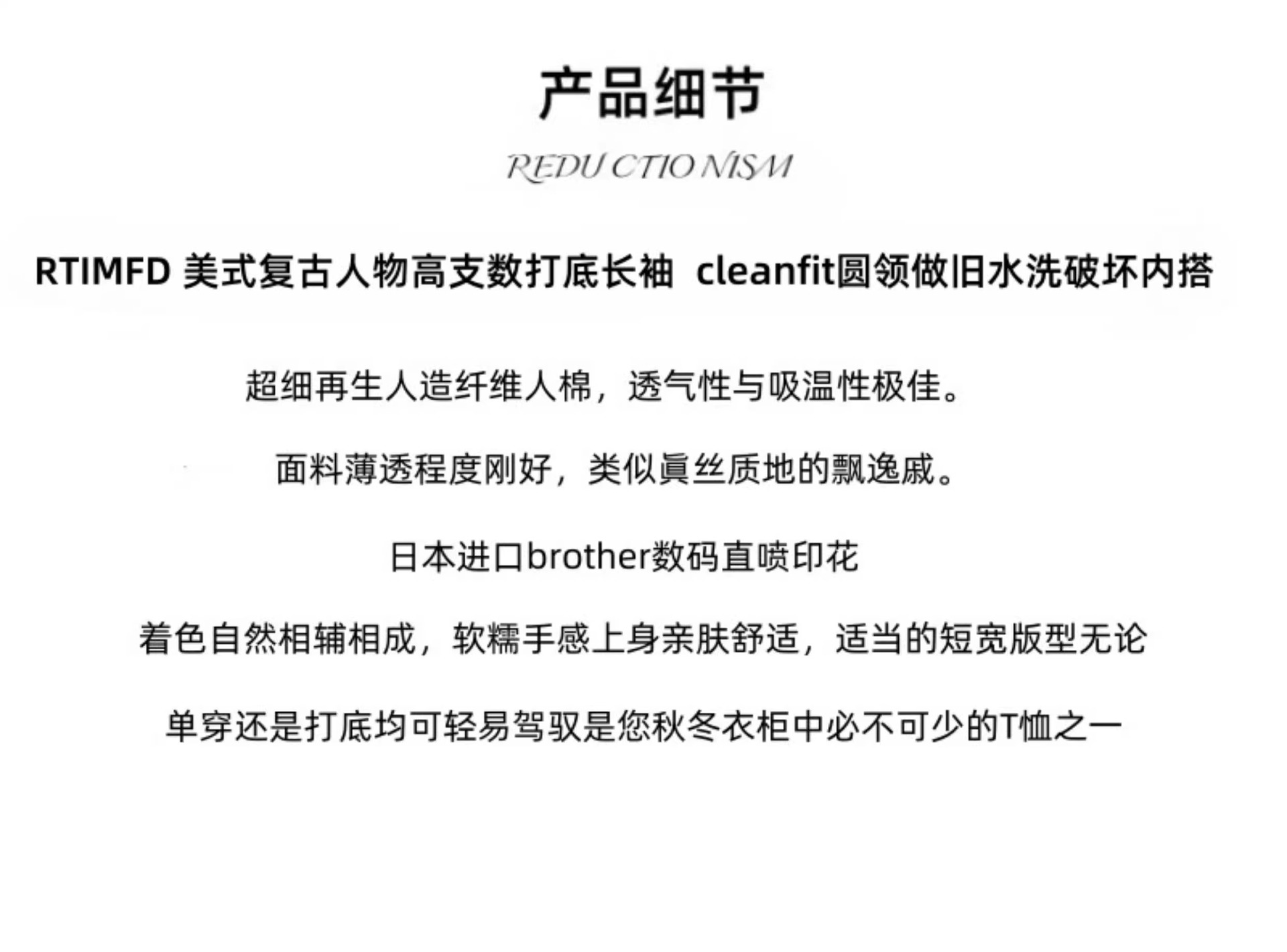RTIMFD 미국 복고풍 캐릭터 높은 카운트 기지 긴 소매 클린 핏 크루 넥 오래 된 파괴 내부스토어 가기