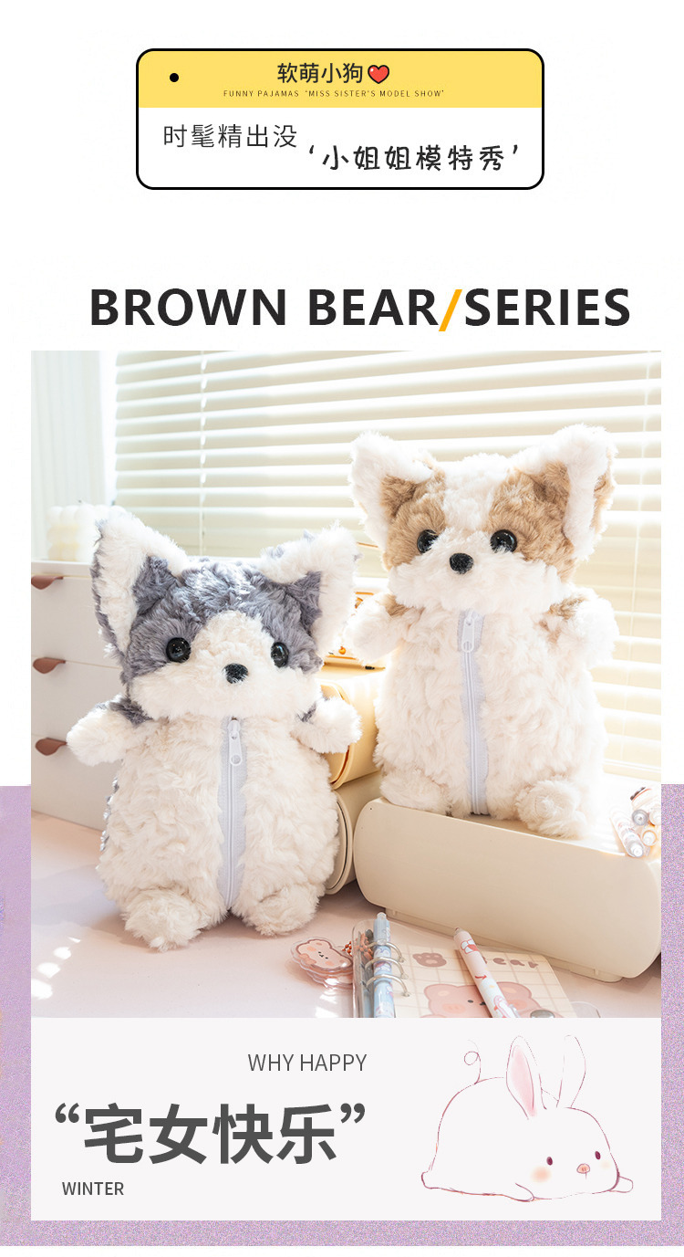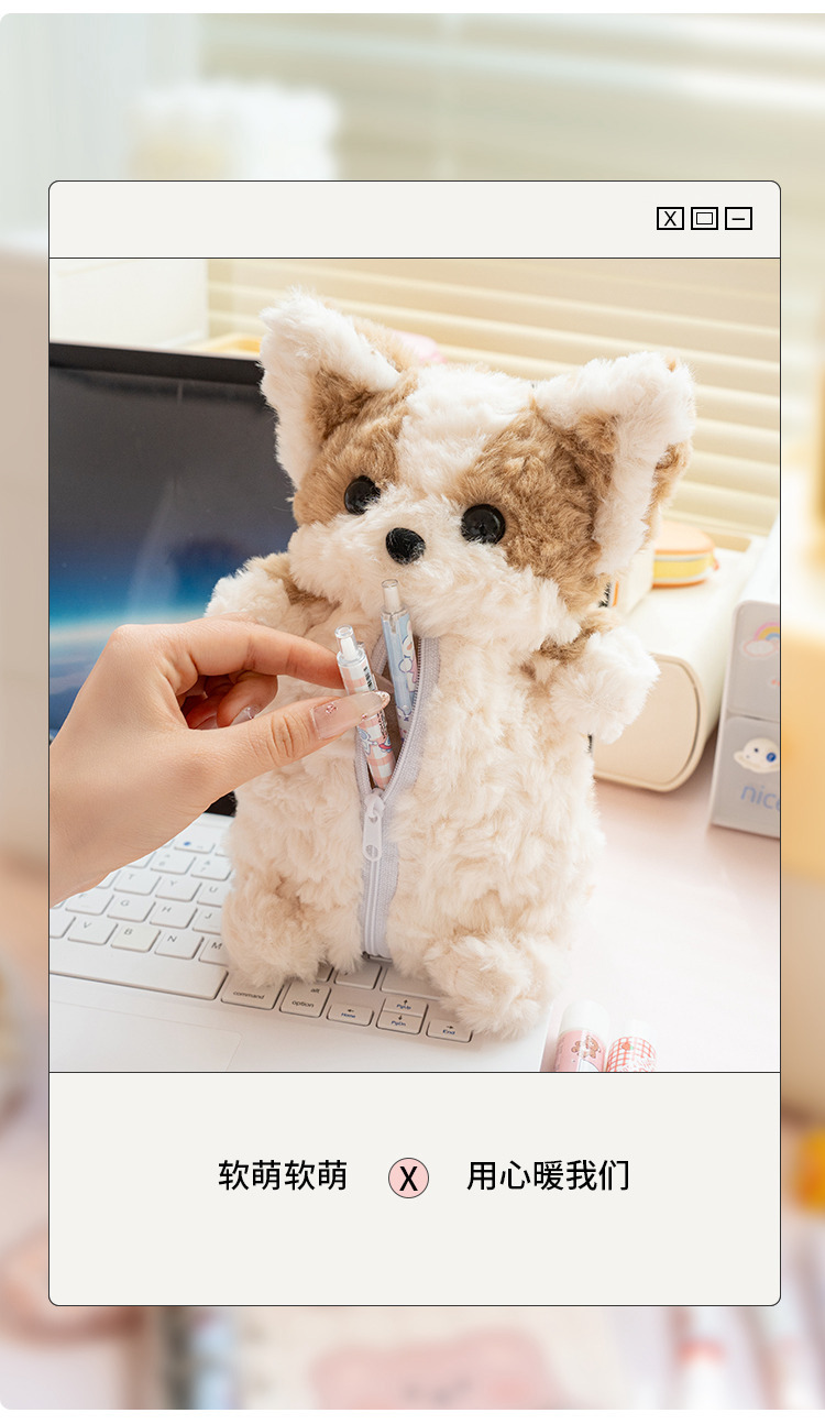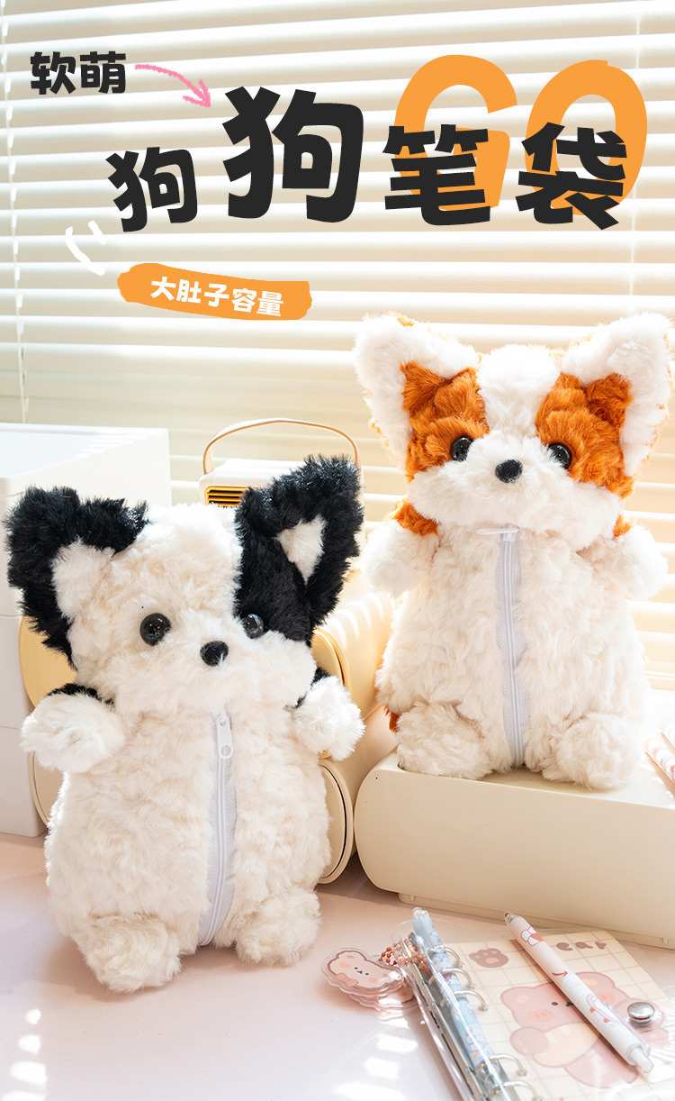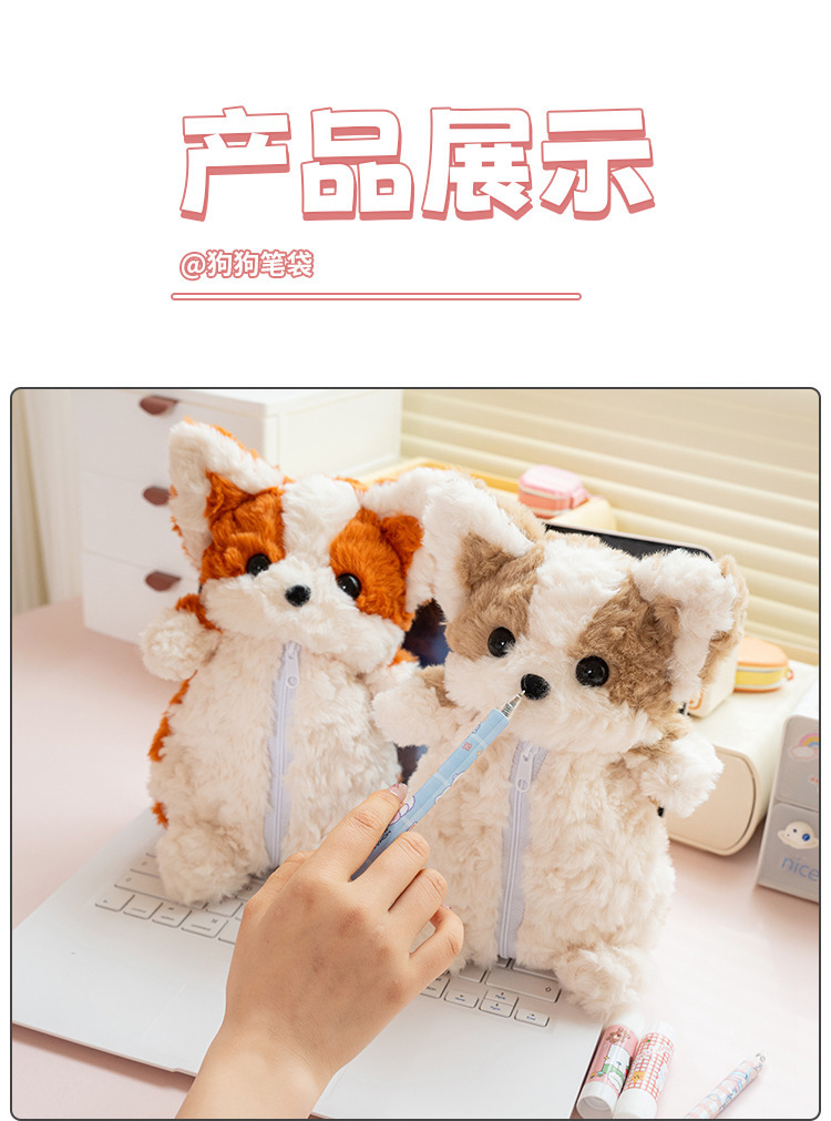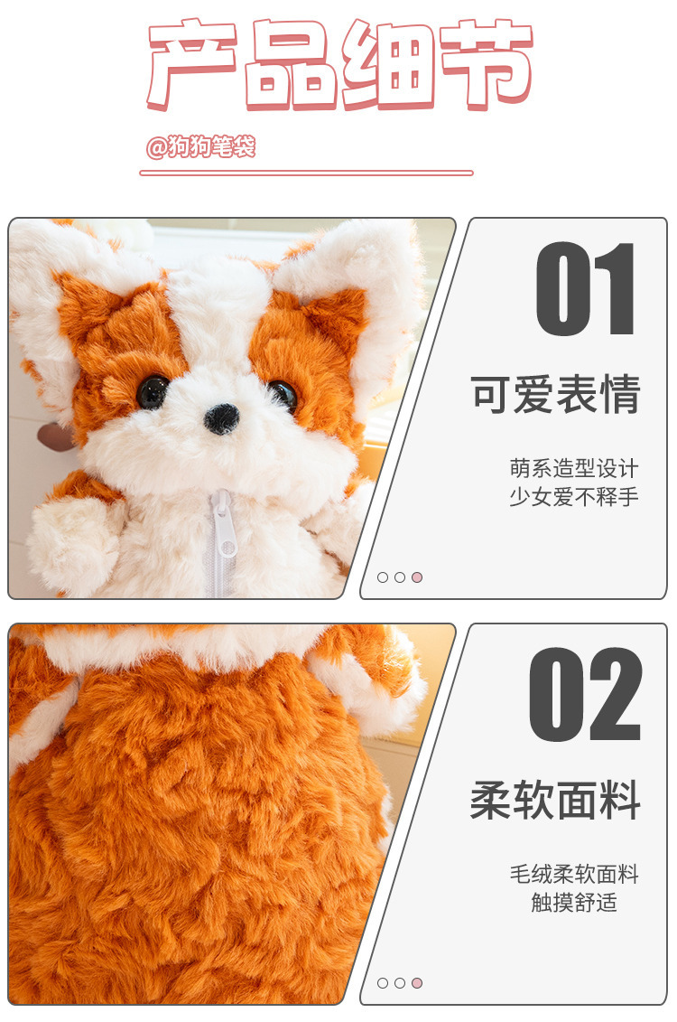 귀여운 코기 개 봉제 연필 케이스 만화 강아지 대용량 소녀 문구 가방 초등학생 창조적 인 부드러운 귀여운 휴대용스토어 가기