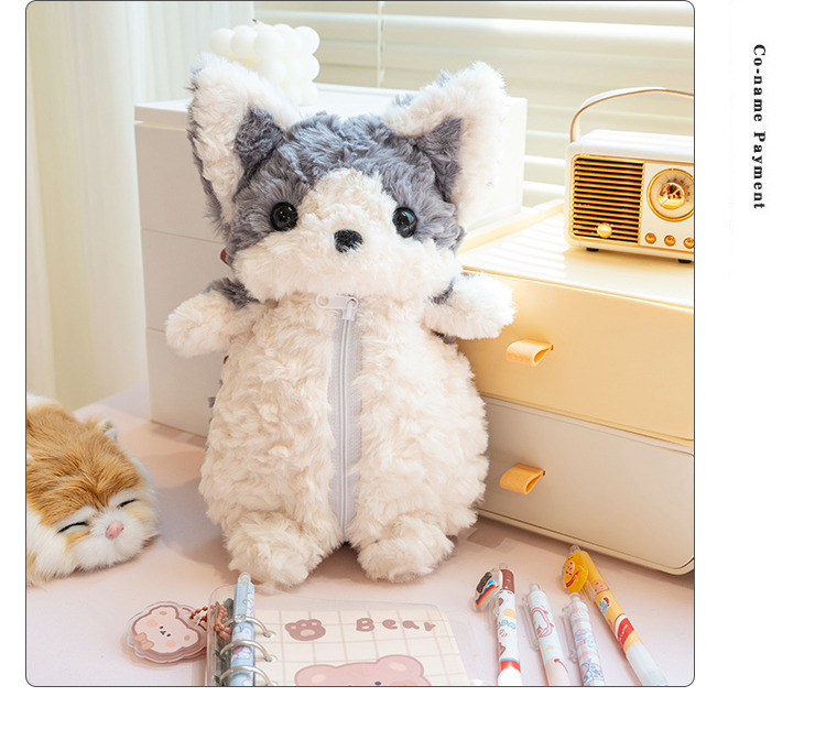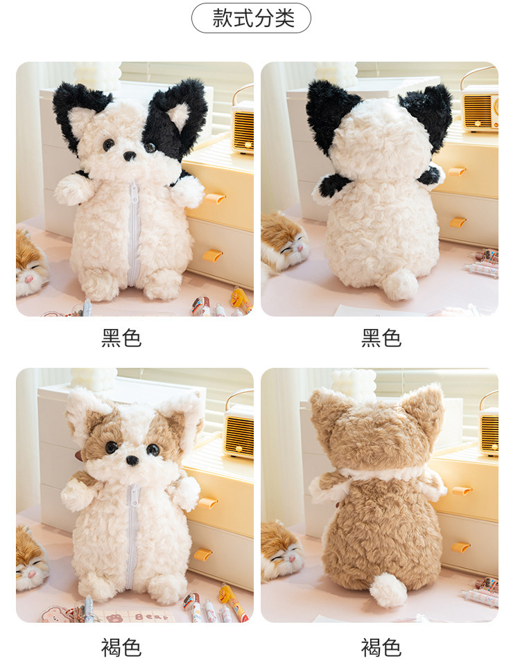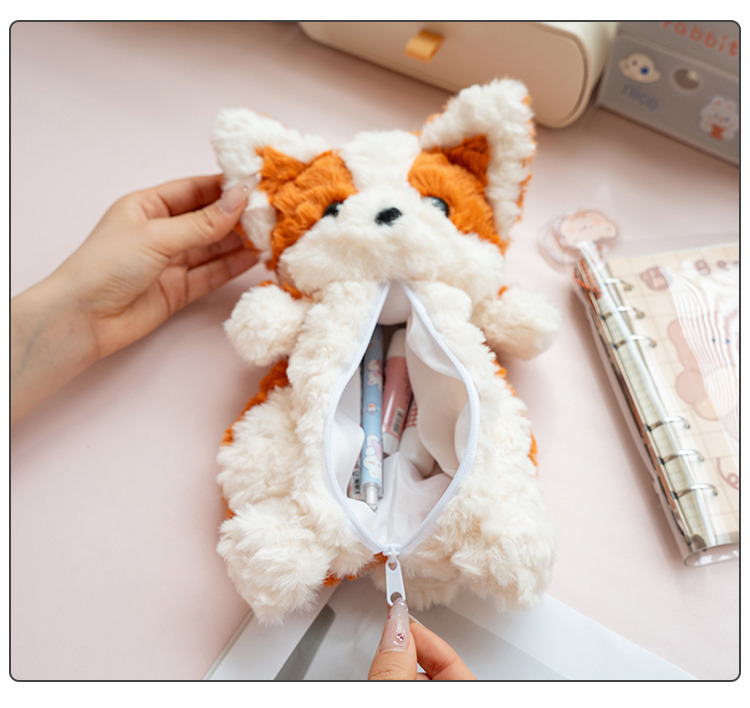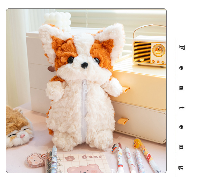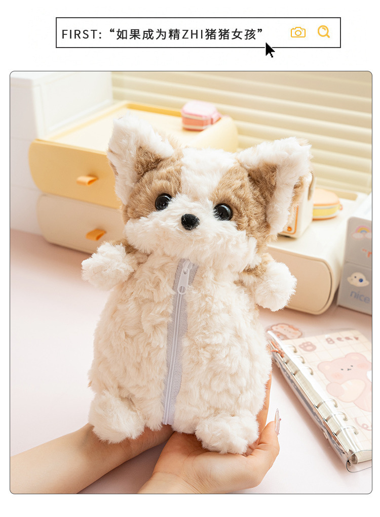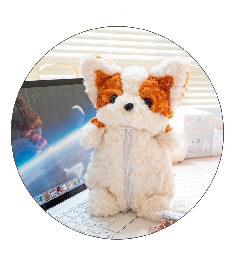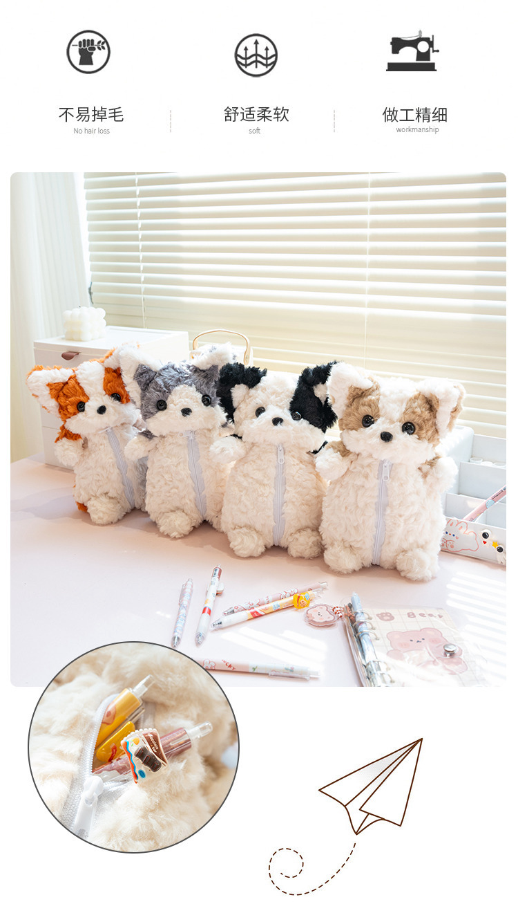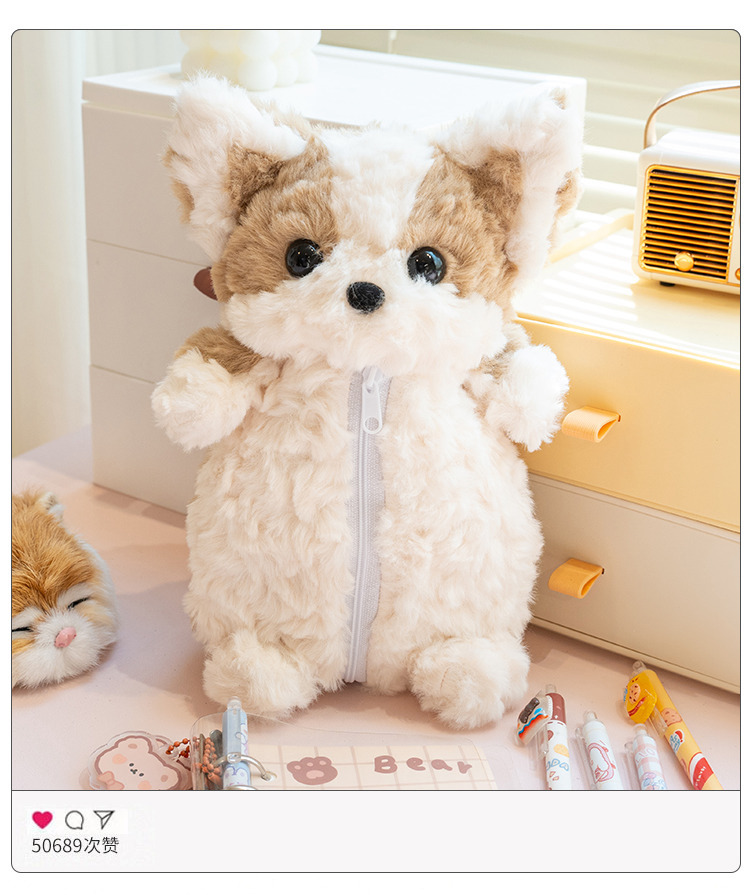 귀여운 코기 개 봉제 연필 케이스 만화 강아지 대용량 소녀 문구 가방 초등학생 창조적 인 부드러운 귀여운 휴대용