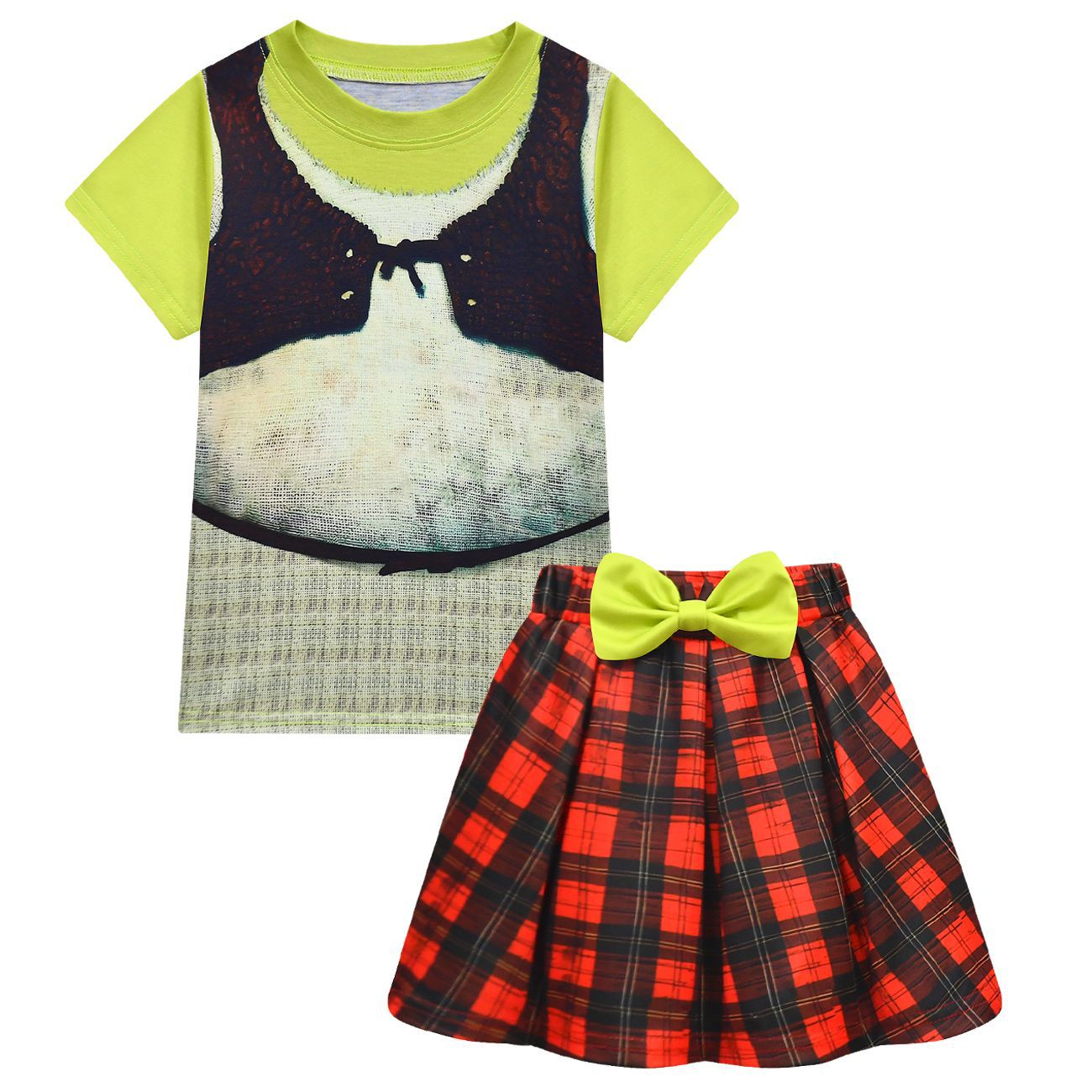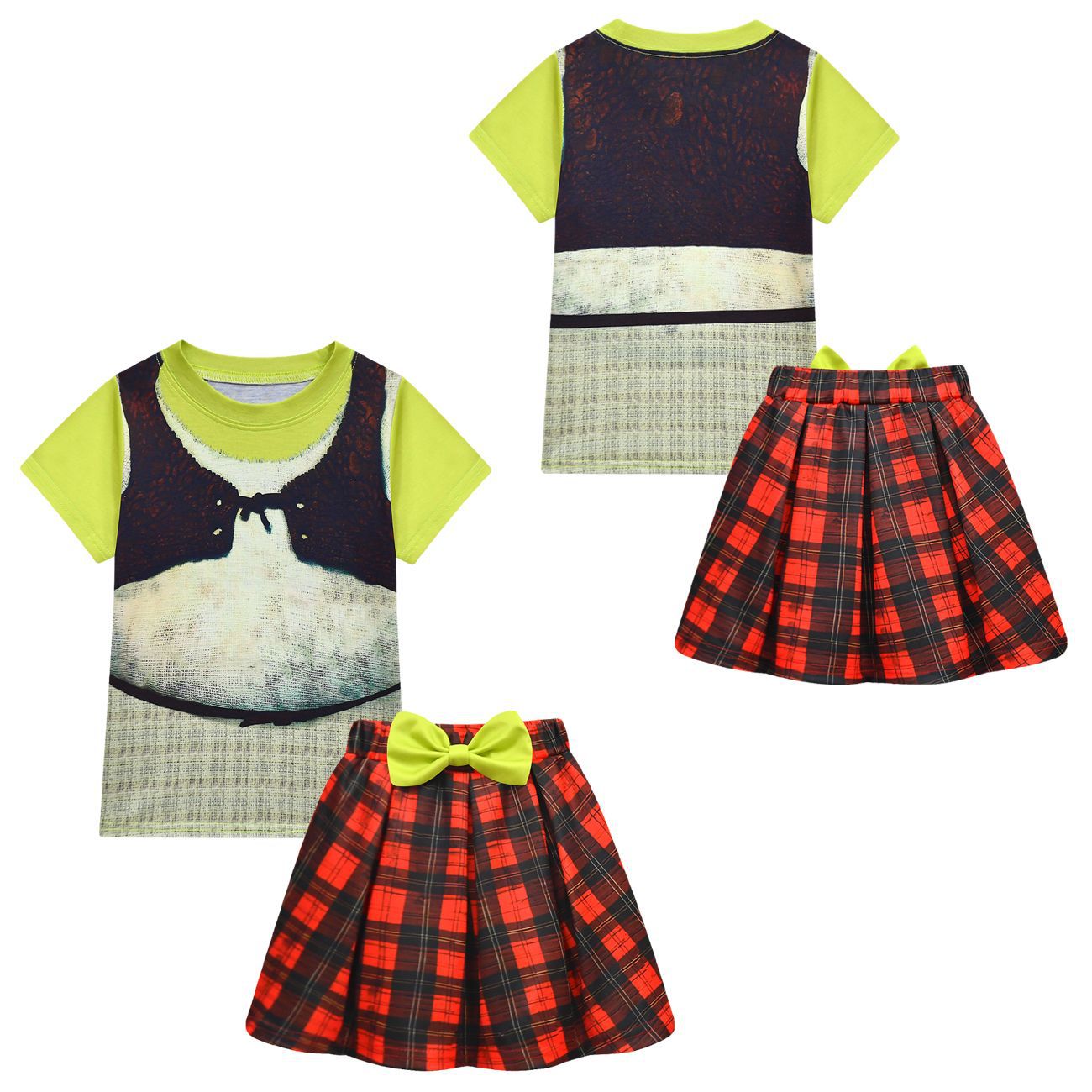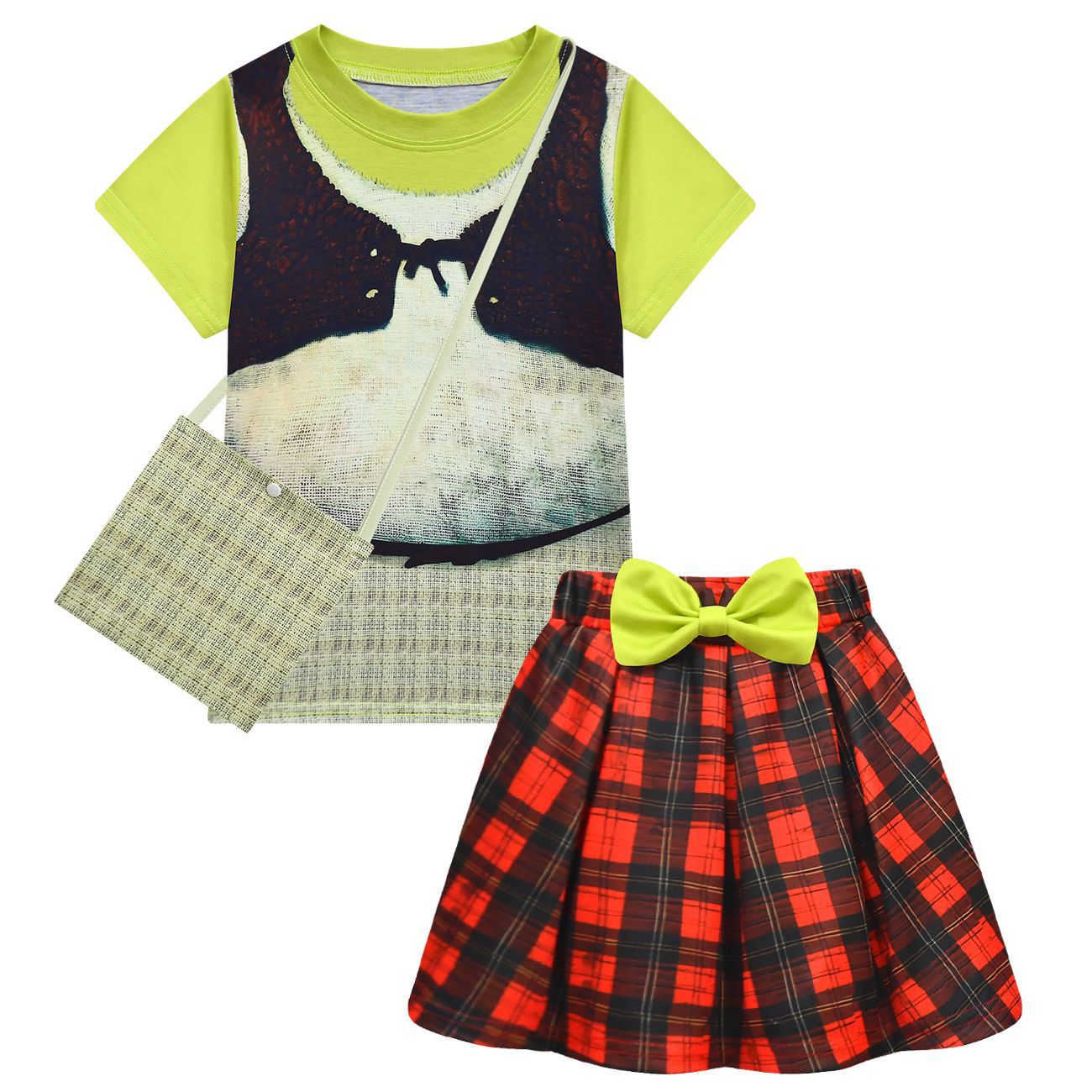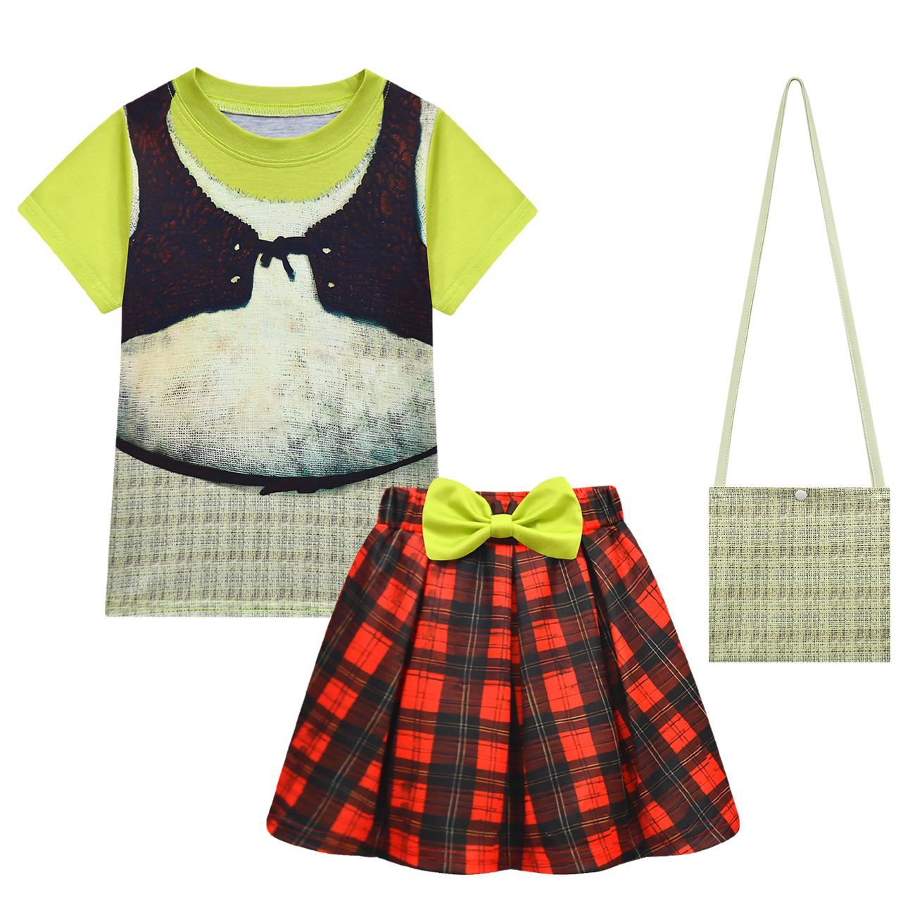 새로운 어린이 세트 코스프레 몬스터 슈렉 짧은 소매 주름 치마 가방 3 조각 세트 3110 81937스토어 가기