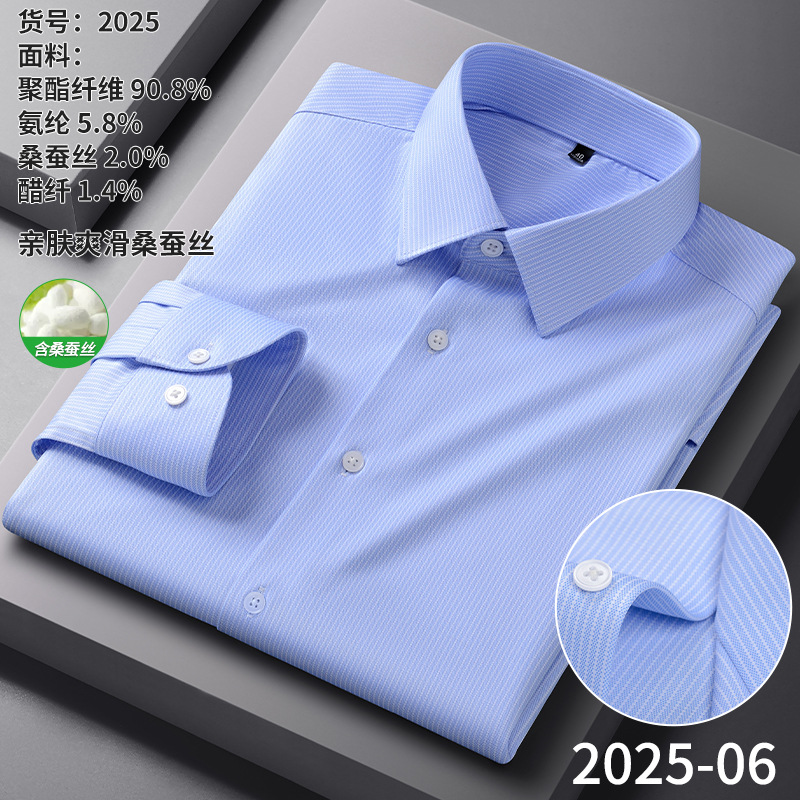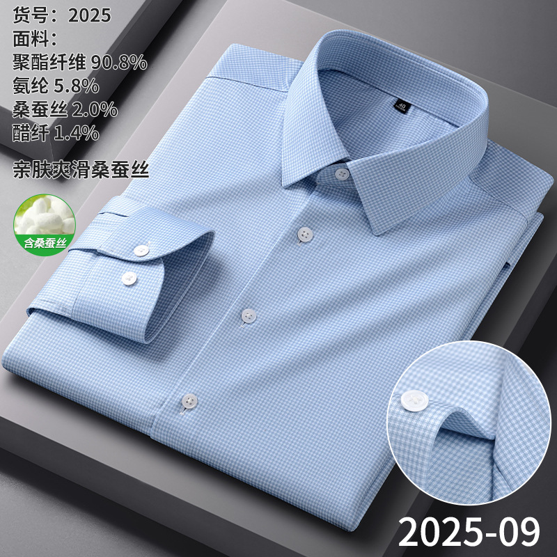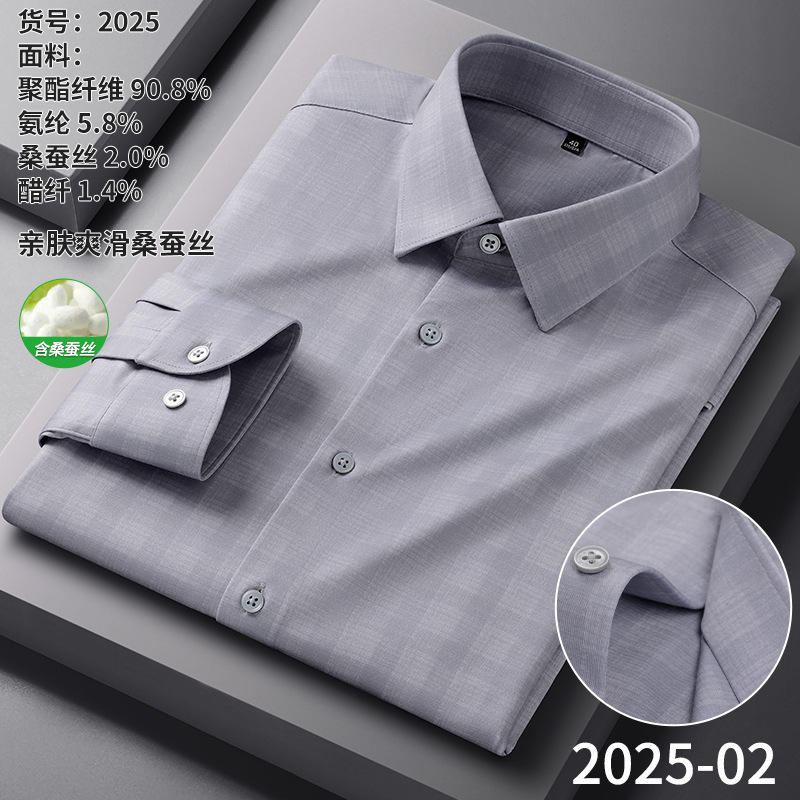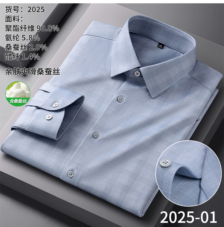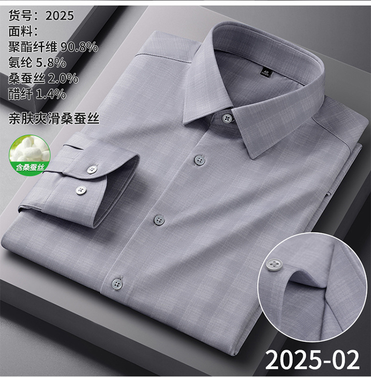 2025新款桑蚕丝男士长袖衬衫春季商务休闲抗皱免烫透气正装莫代尔