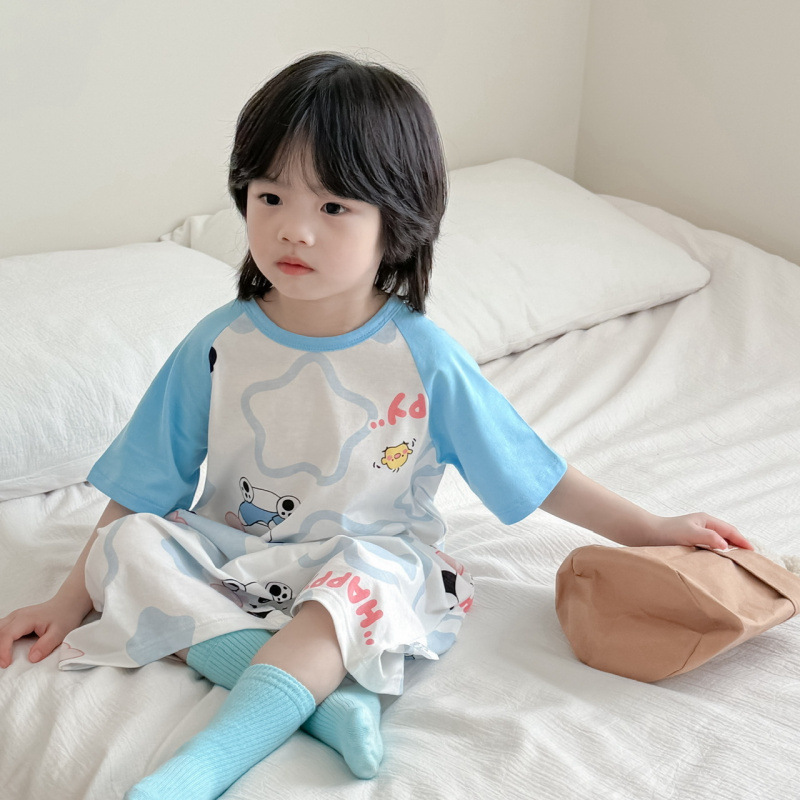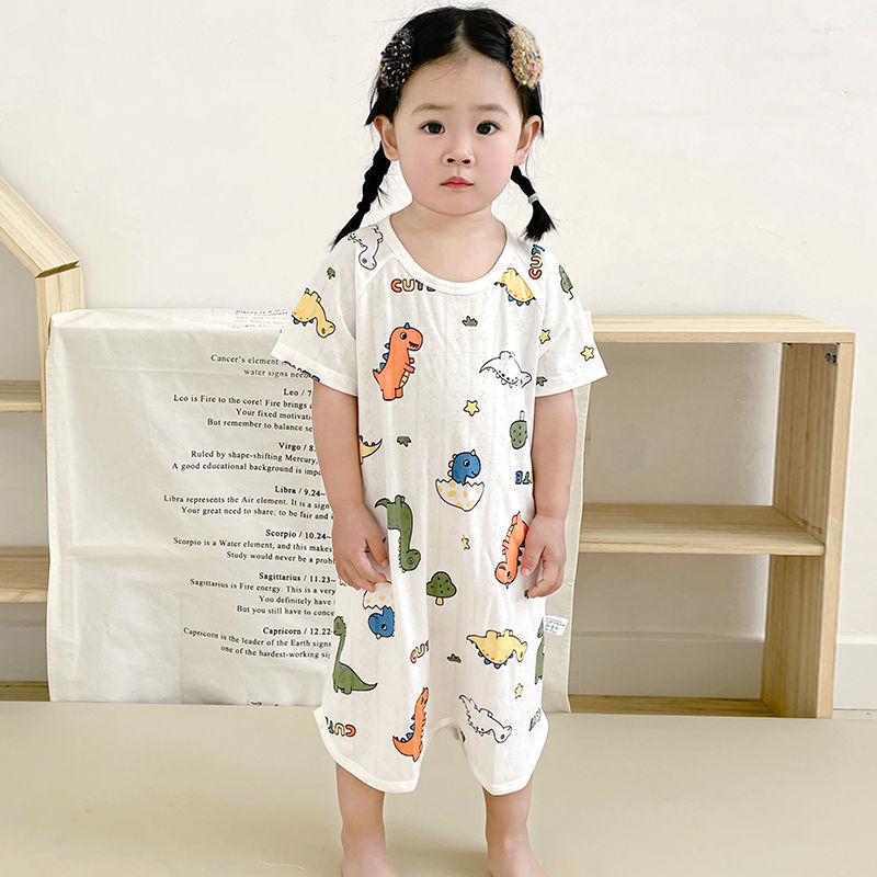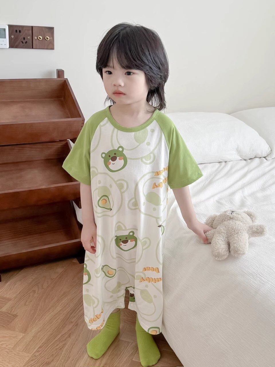 어린이 코튼 배꼽 보호 안티 킥 나이트 가운 아기의 클래스 반팔 스냅 버튼 슬리퍼 와이드