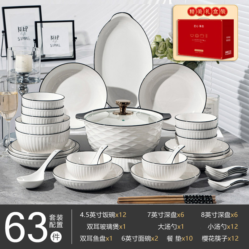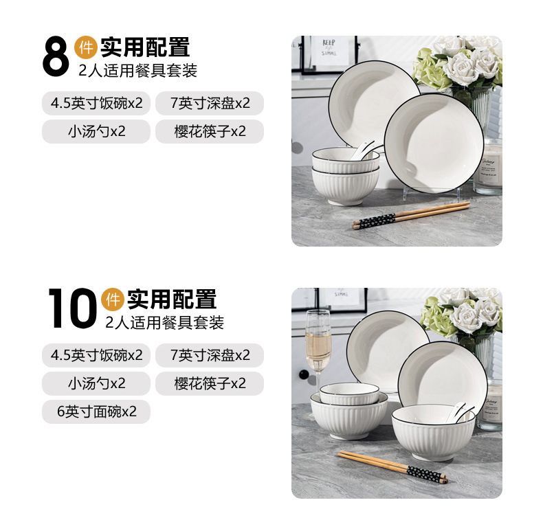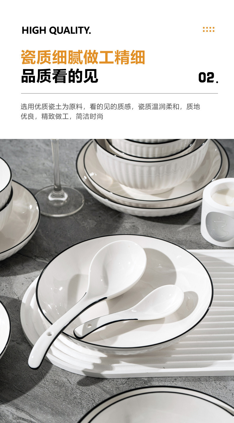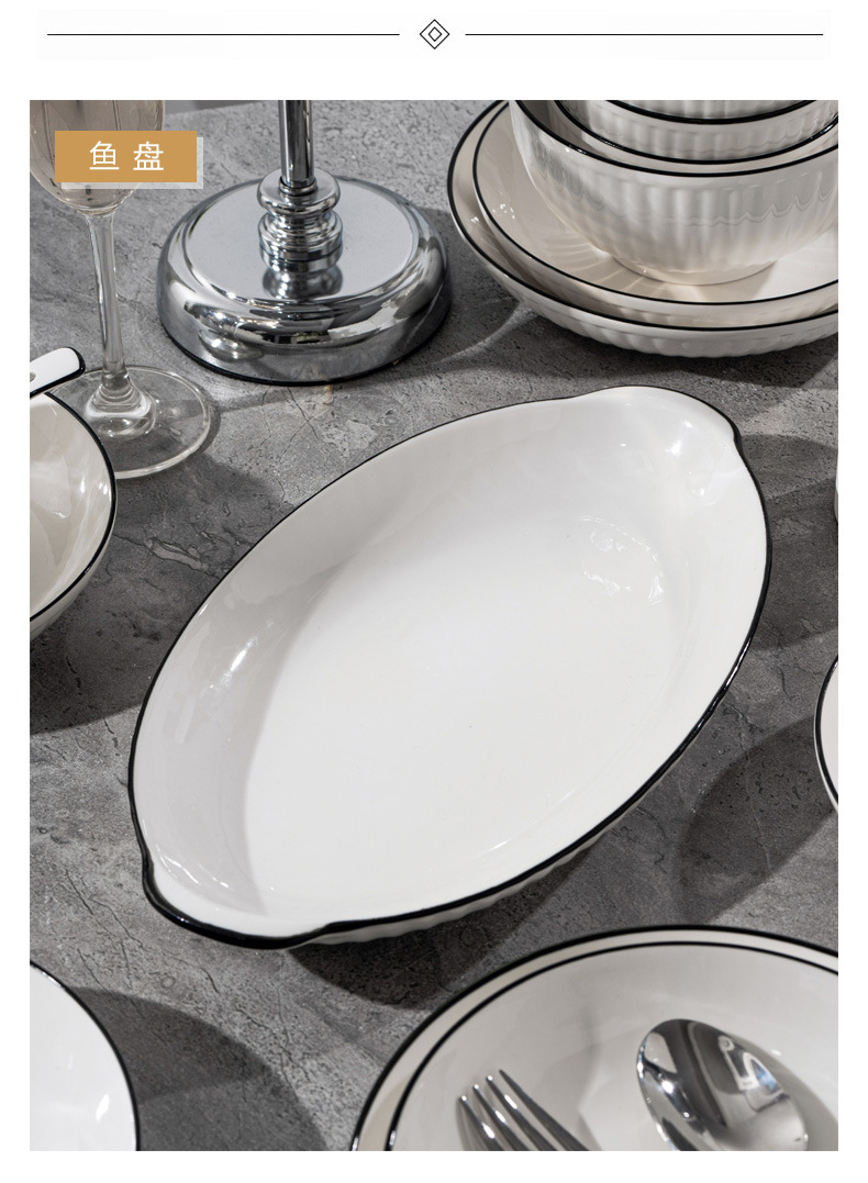 경덕진 도자기 식기 세트, 산타야 세로 줄무늬 검은 선 일본식 그릇 세트, 가정용 유약 밑색 식기 세트 선물