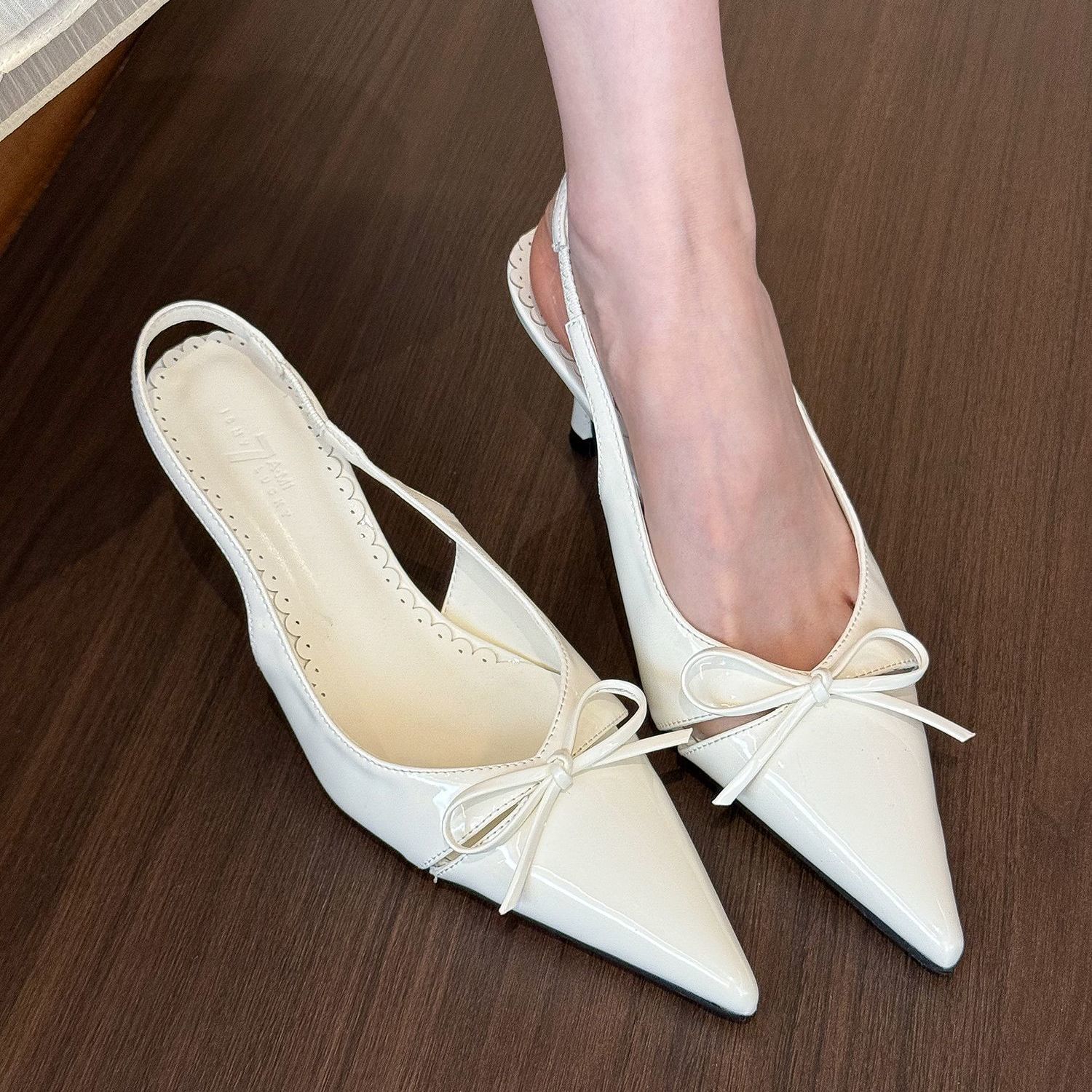 우아한 높이 높이는 슬림 2025 새로운 누드 뾰족한 활 얕은 여성용 봄 빈 샌들스토어 가기