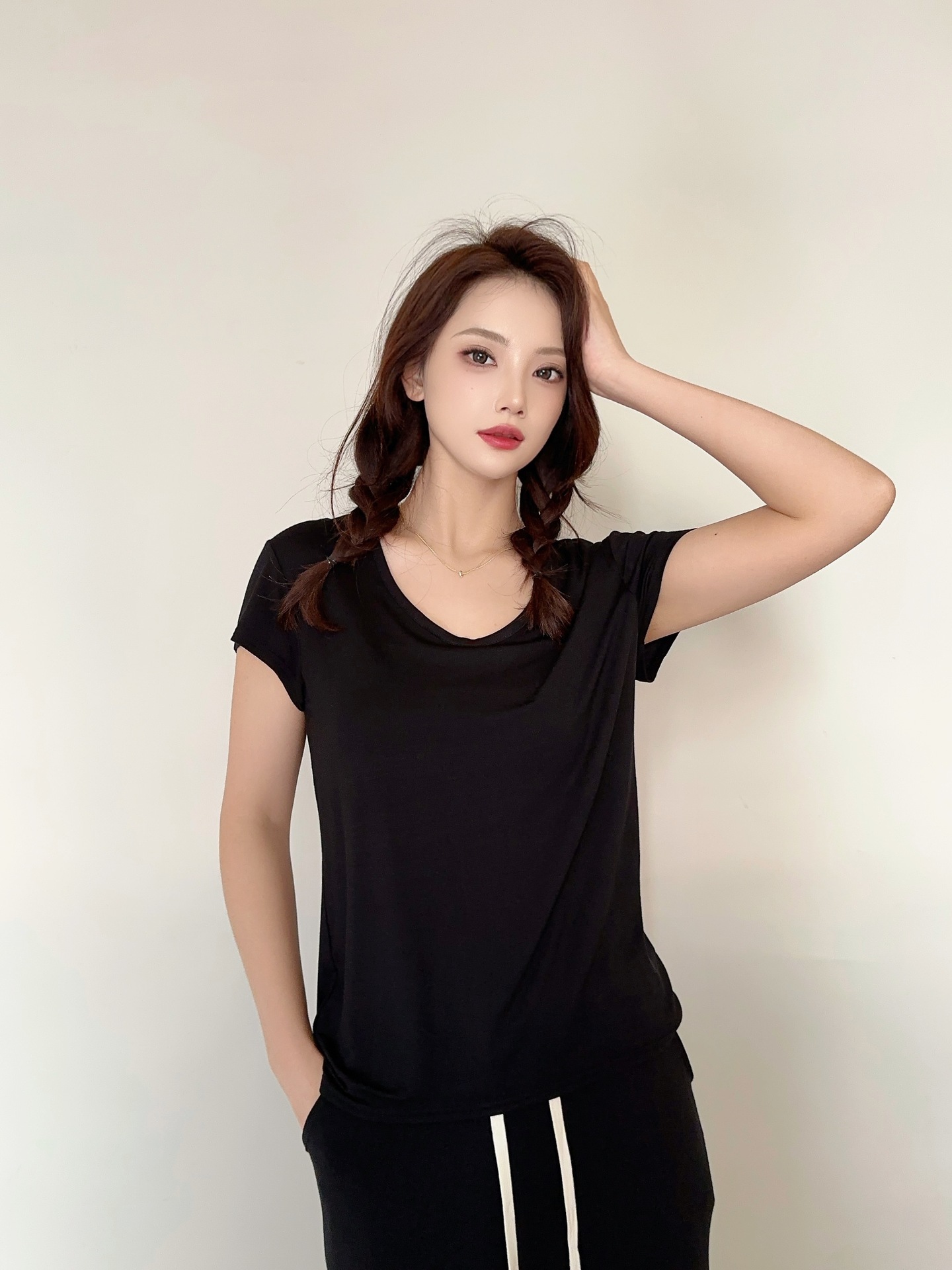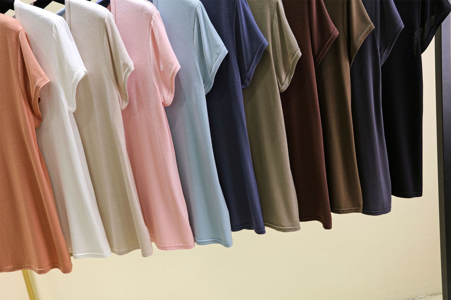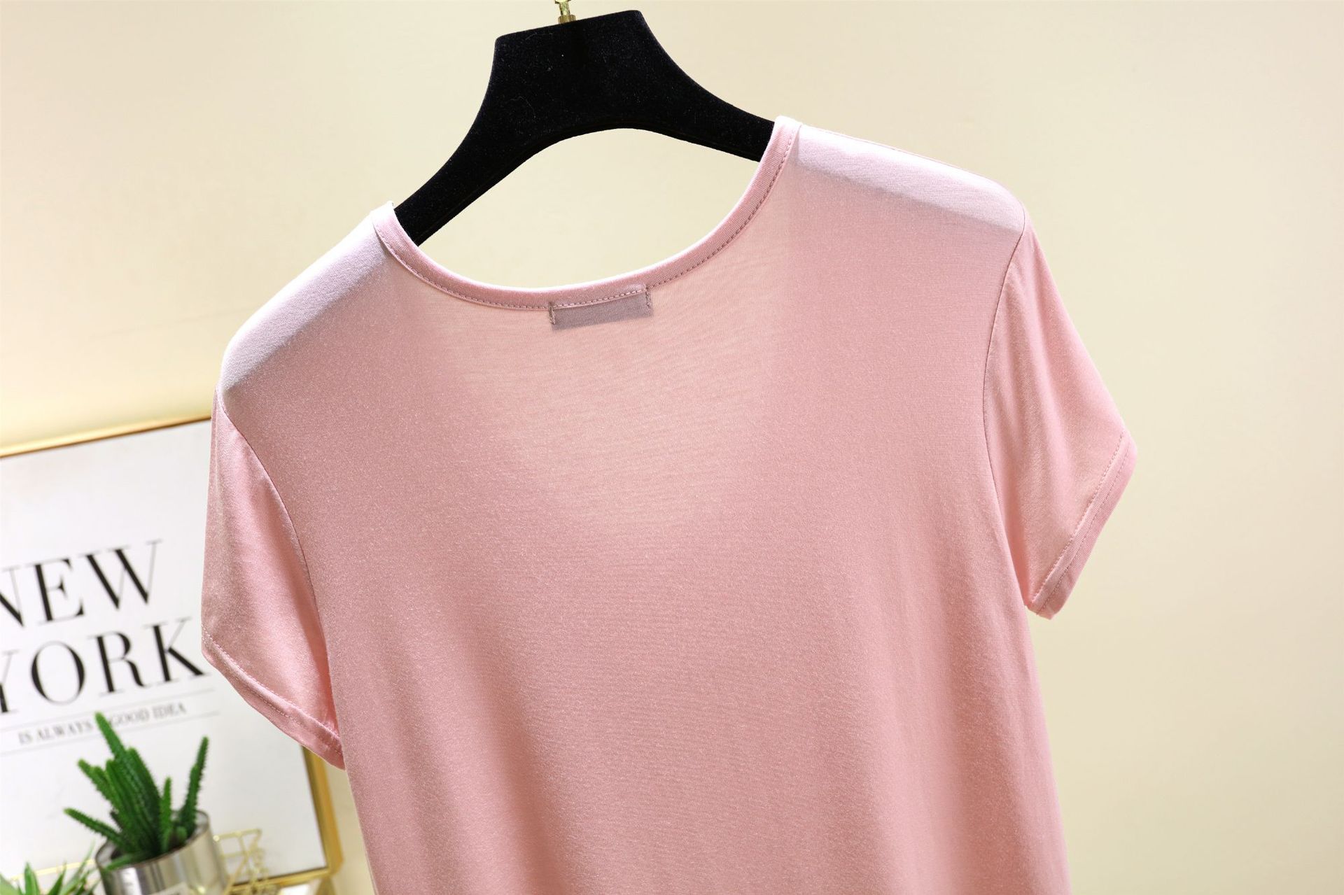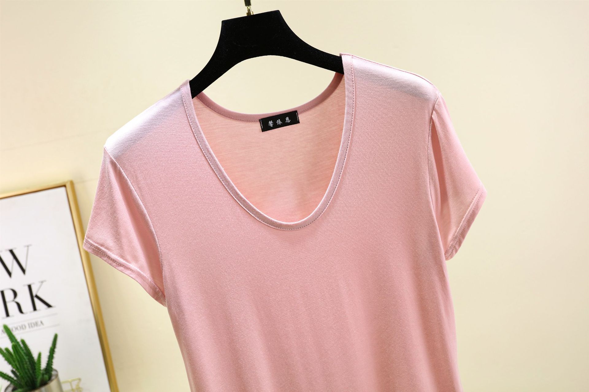여성용 모달 반팔 로우 넥 U 넥 홈 의류 여름 얇은 느슨한 타원형 칼라 티셔츠 잠옷은 캐주얼 외부에서 착용 가능스토어 가기