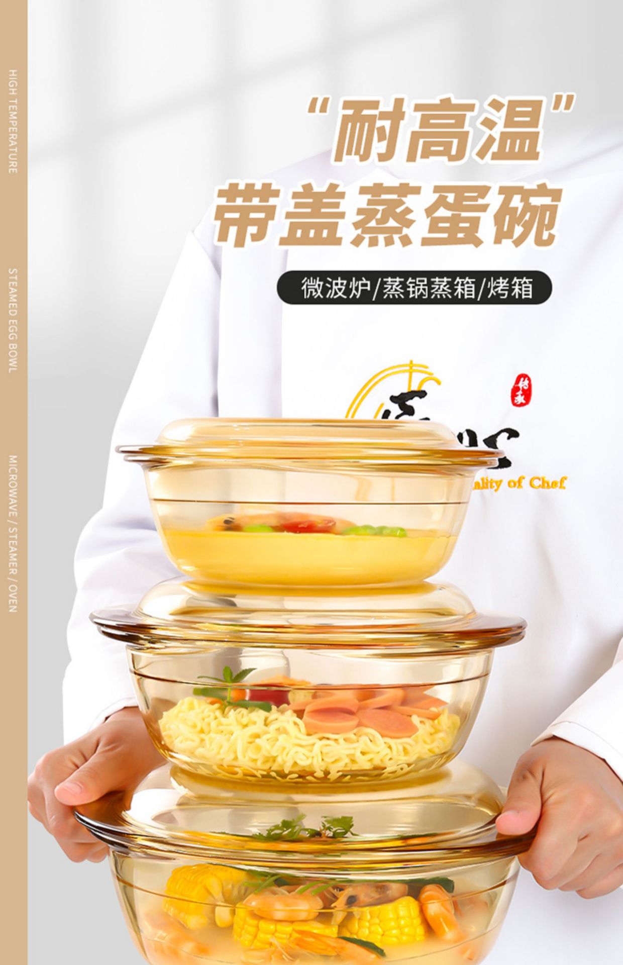 찐 닭고기 달걀 그릇 아기 가정용 고온 내성 유리 그릇 뚜껑 큰 국수 수프 그릇 전자레인지 오븐 찐 계란 그릇스토어 가기