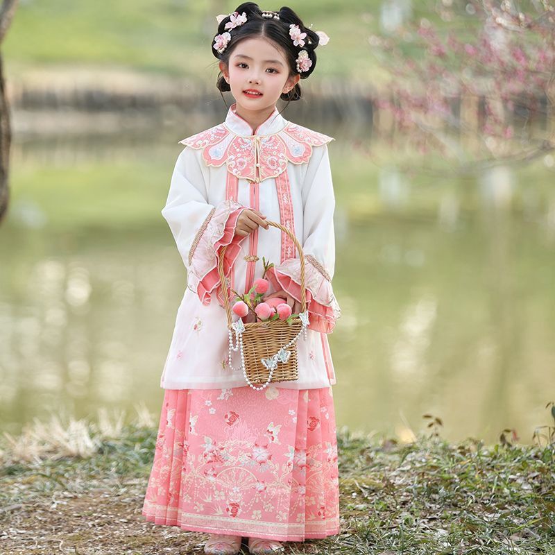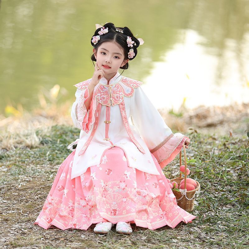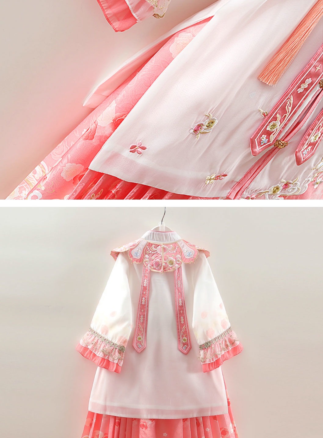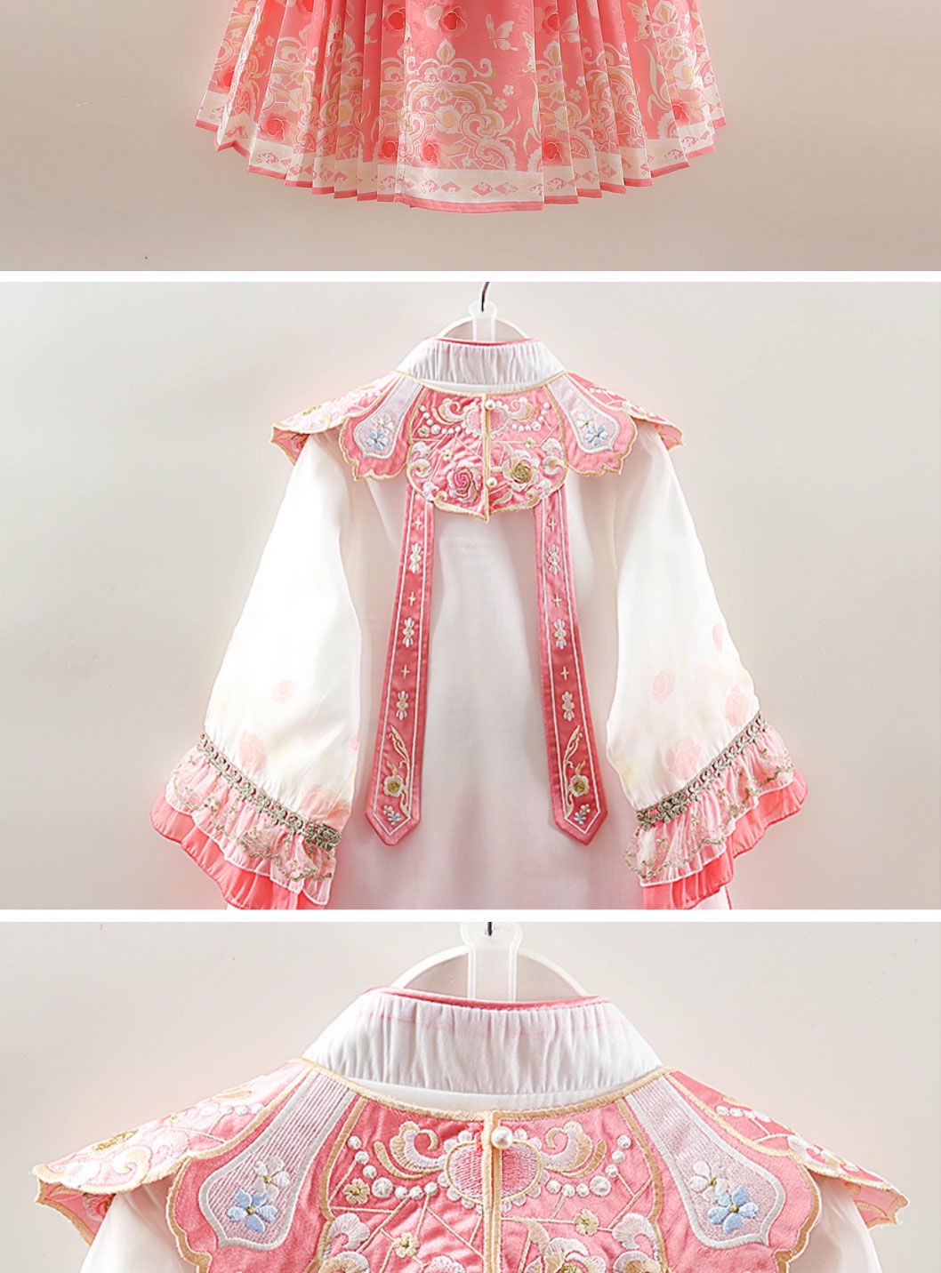 2025 새로운 소녀 한푸 봄 구름 어깨 중공업 자수 중국 스타일 골동품 어린이 하이 엔드 공주 고대 원피스
