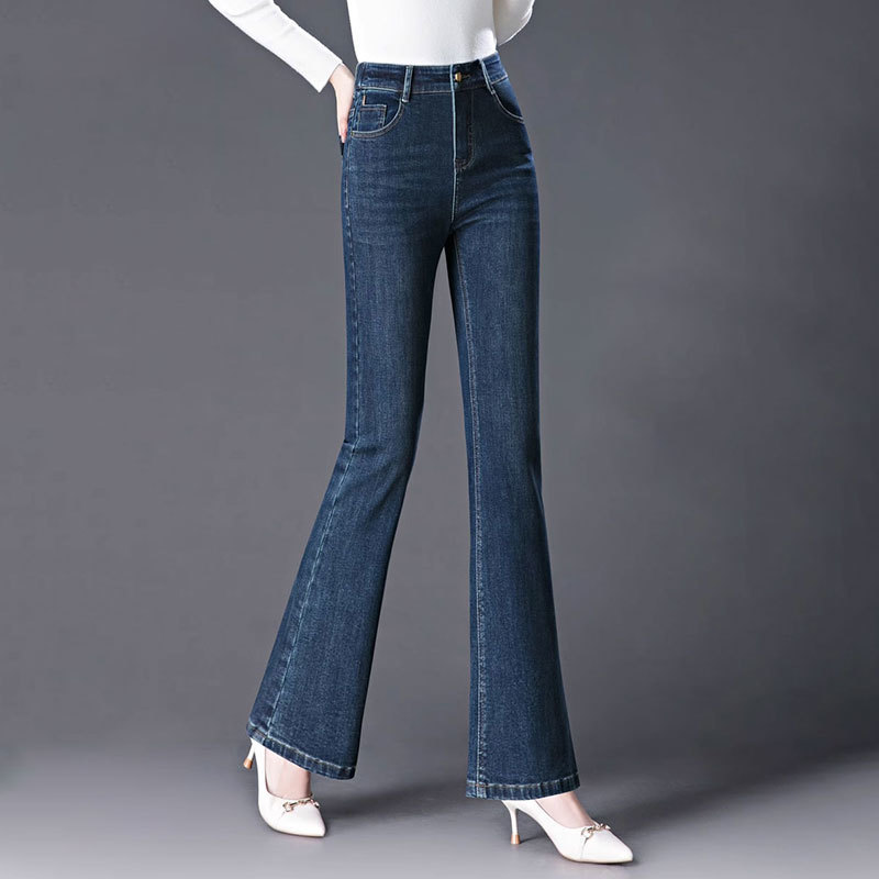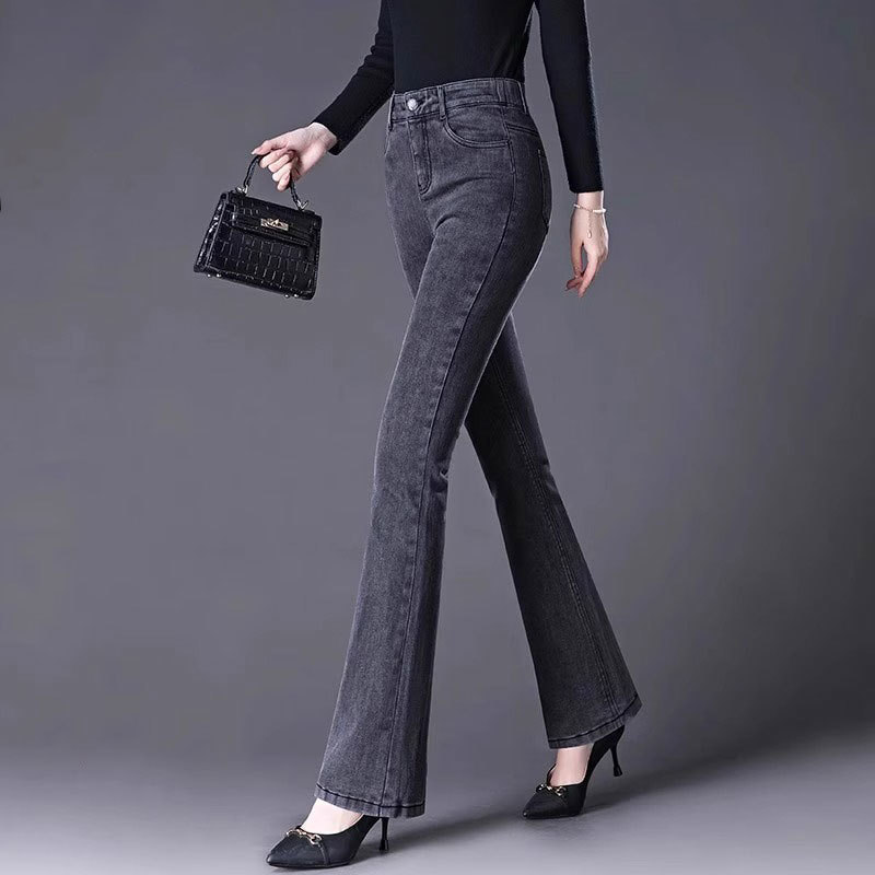 Weila Jeans 여성의 봄과 가을 연기 그레이 스트레치 새 스타일 슬리밍 높은 허리 슬림 핏 바지 어머니를위한 긴 바지스토어 가기