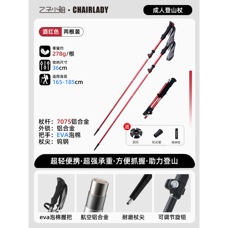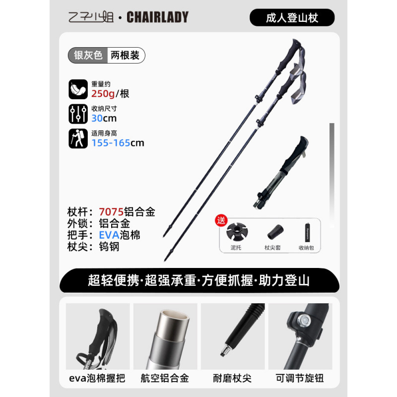 휴대용 어린이 여성의 미니 탄소 걷는 스틱 등산 장비