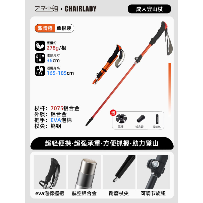 • T자형 손잡이 - 텔레스코픽 스틱 [알루미늄 합금] - 오렌지