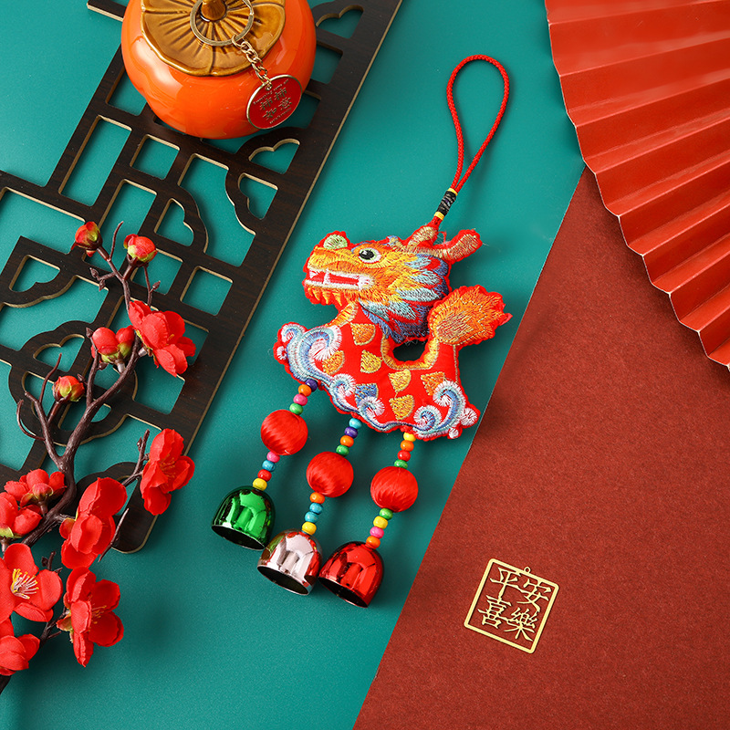 2024 Dragon Year Sachet Wind Bell 중국 스타일 자수 바람 벨 펜던트 축복받은 가방 Sachet Sequin Bell 자동차 펜던트스토어 가기