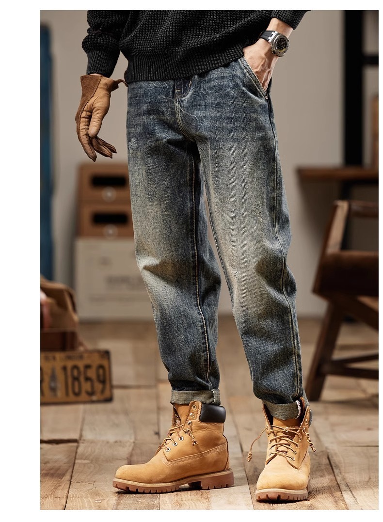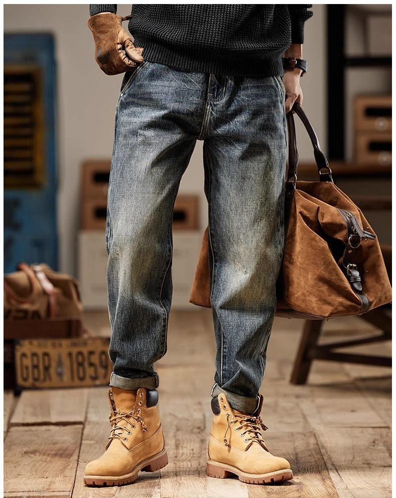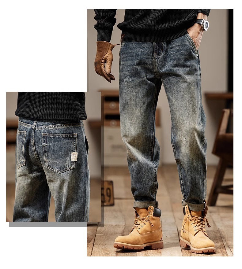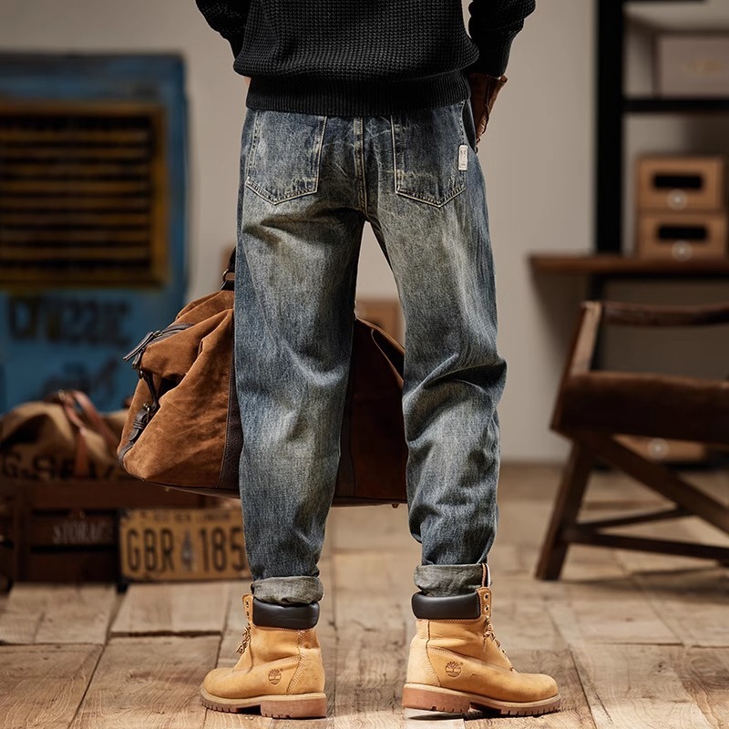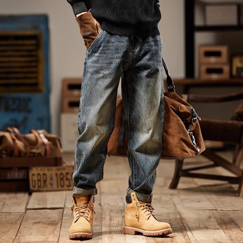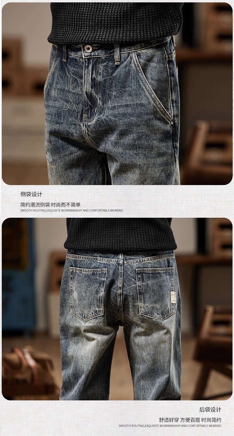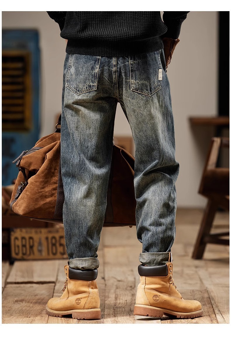 청바지 남성 아메리칸 스타일 봄 새로운 패션 브랜드 미국 스타일 레트로 헤비 세탁 스트레이트 루즈 캐주얼 롱 스타일스토어 가기