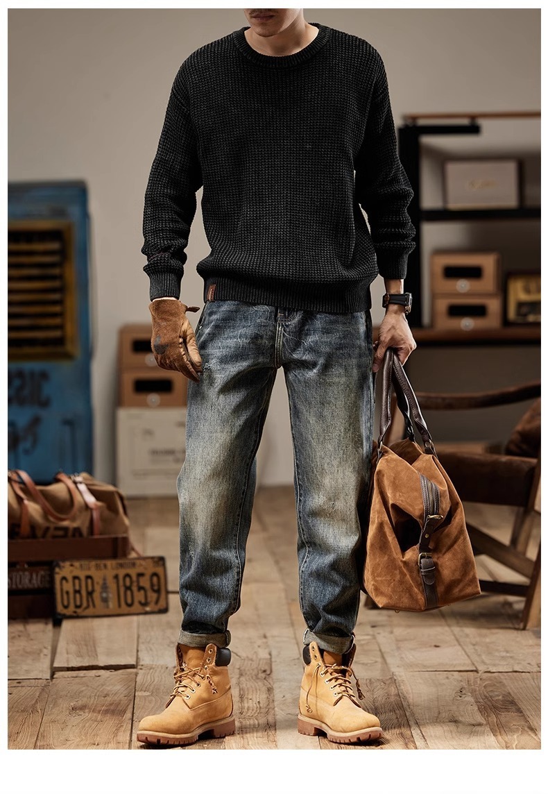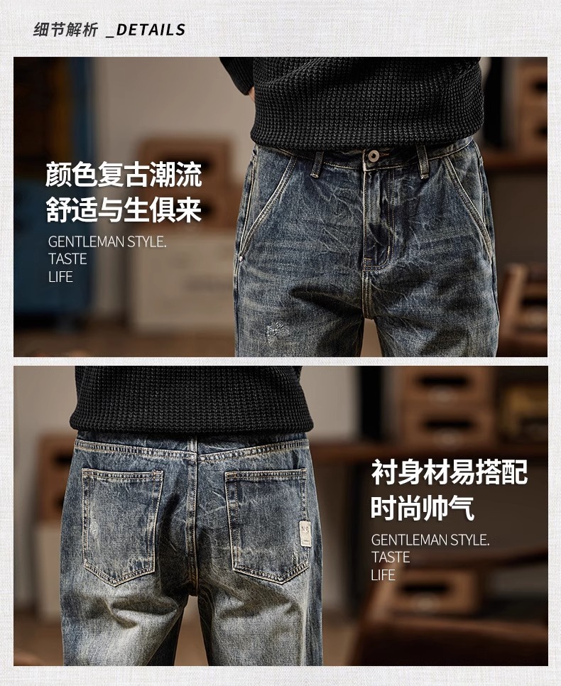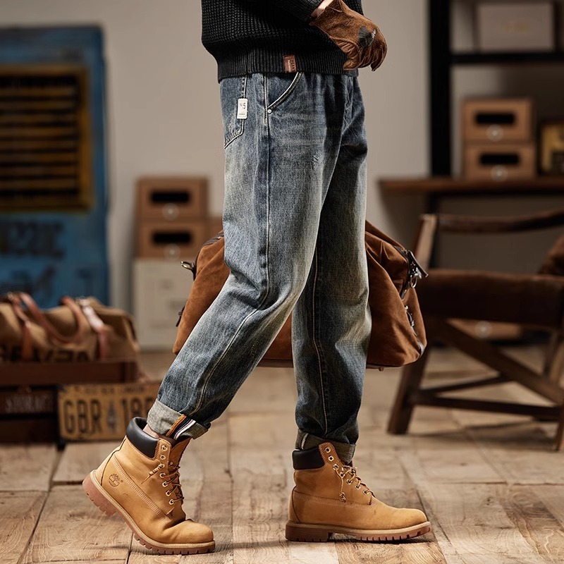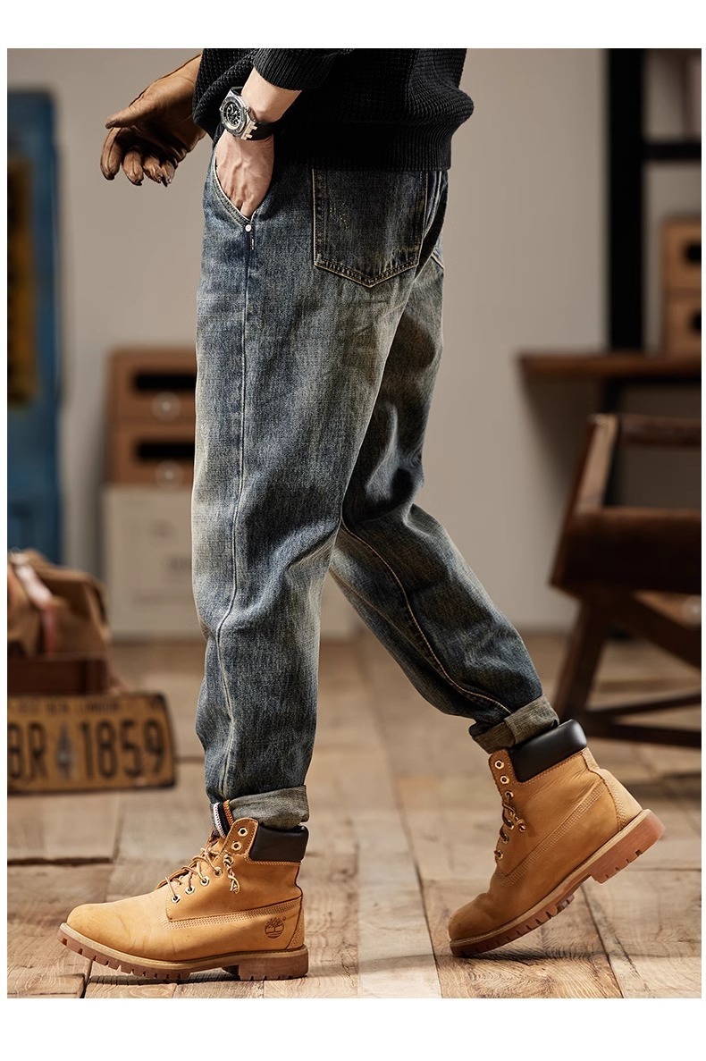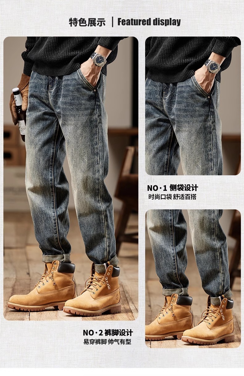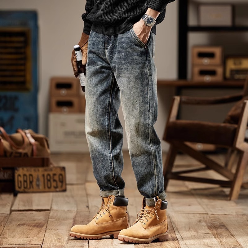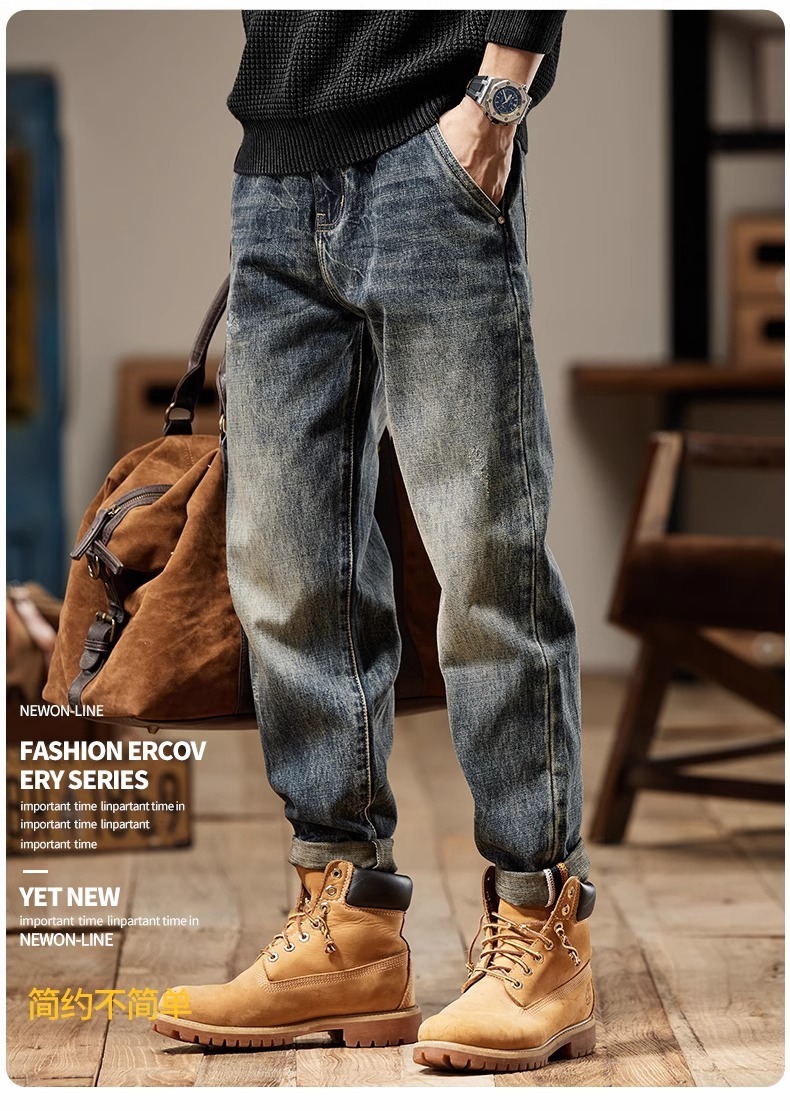 청바지 남성 아메리칸 스타일 봄 새로운 패션 브랜드 미국 스타일 레트로 헤비 세탁 스트레이트 루즈 캐주얼 롱 스타일스토어 가기