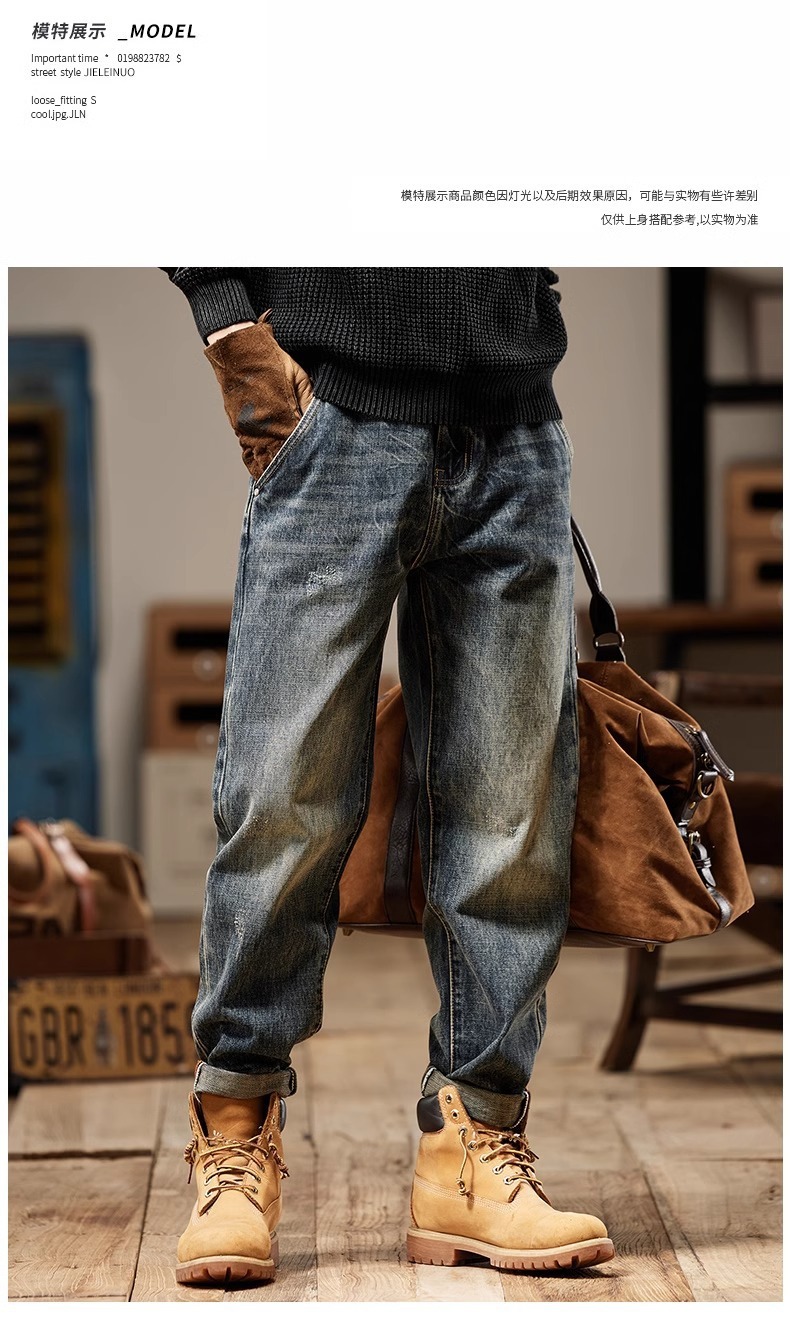 청바지 남성 아메리칸 스타일 봄 새로운 패션 브랜드 미국 스타일 레트로 헤비 세탁 스트레이트 루즈 캐주얼 롱 스타일