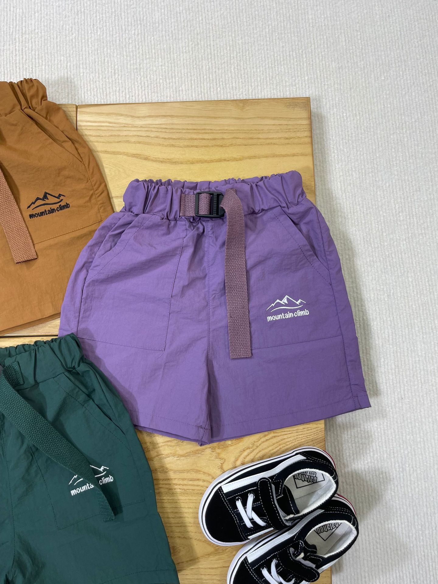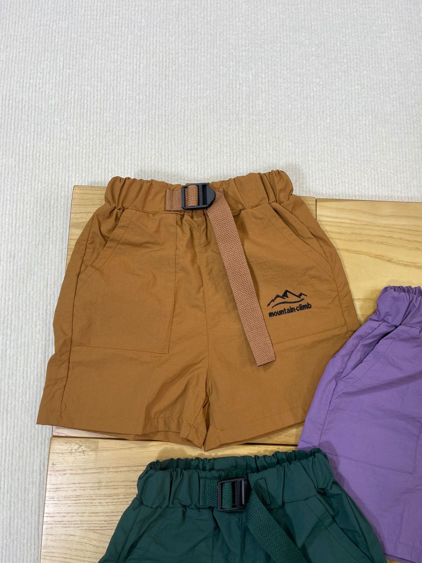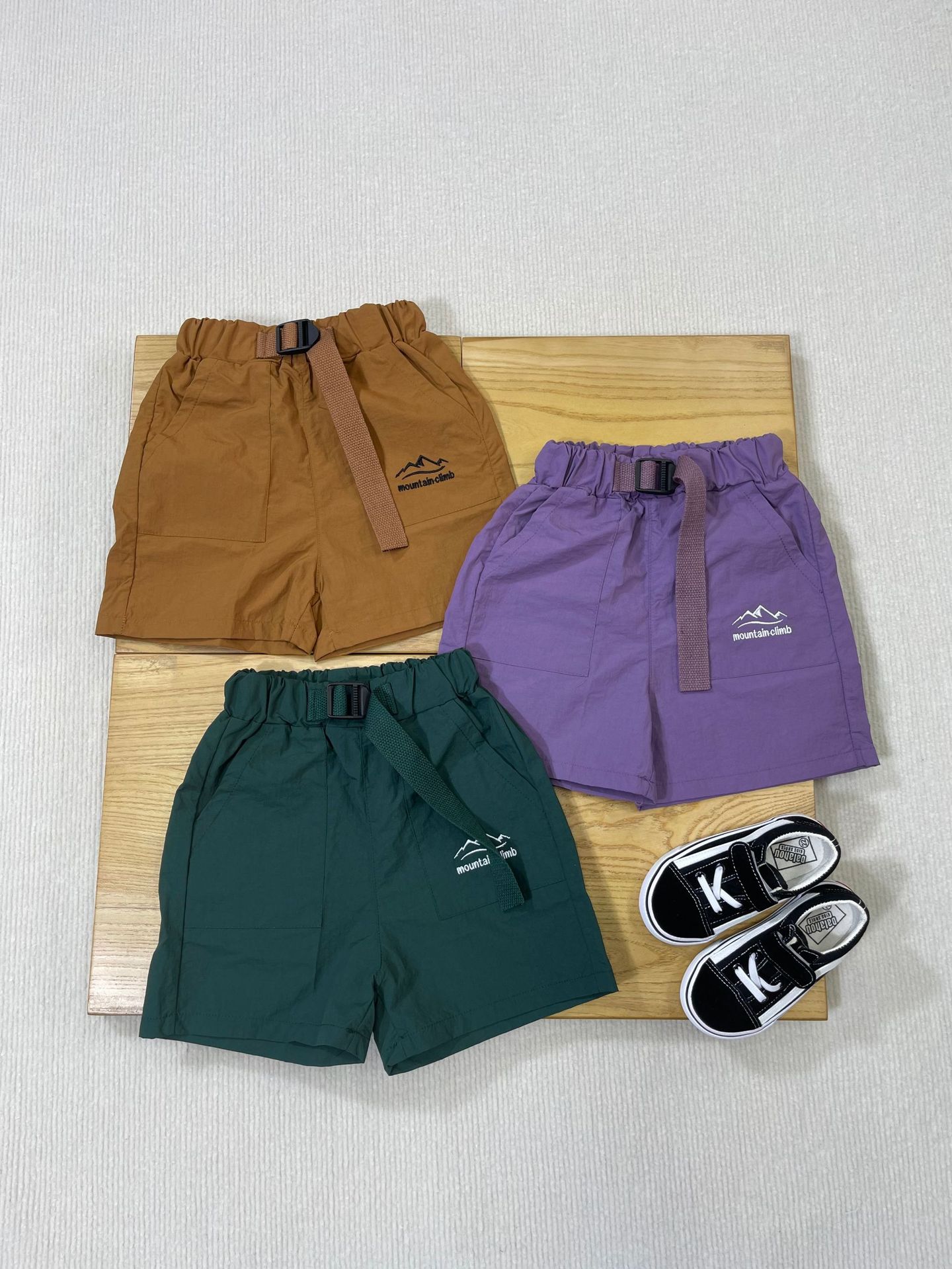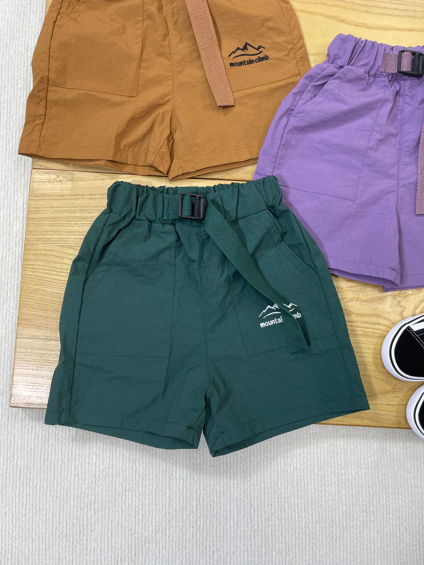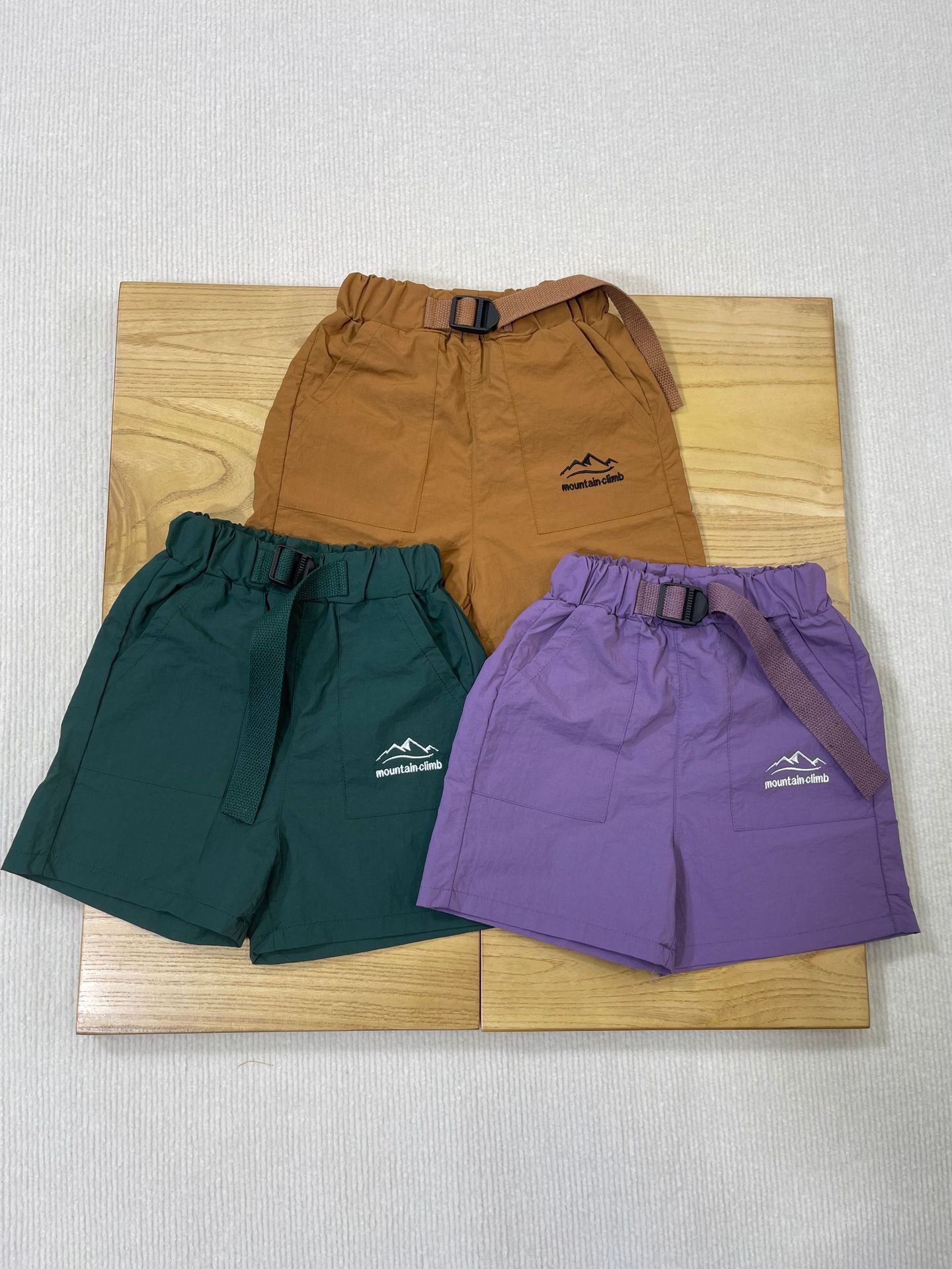 산 야외 아동복 2025 여름 새로운 어린이 맞춤형 자수 스포츠 반바지 큰 어린이 빠른 건조 바지