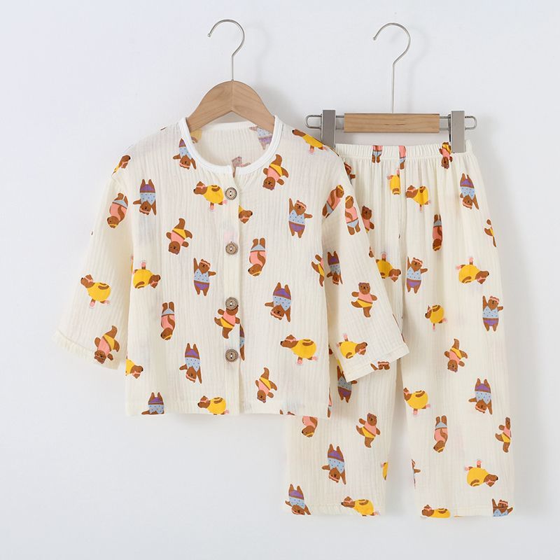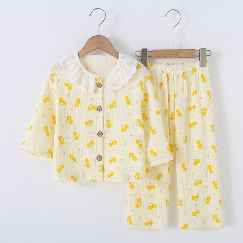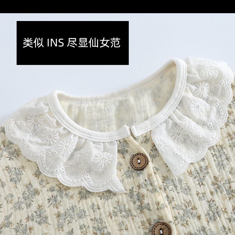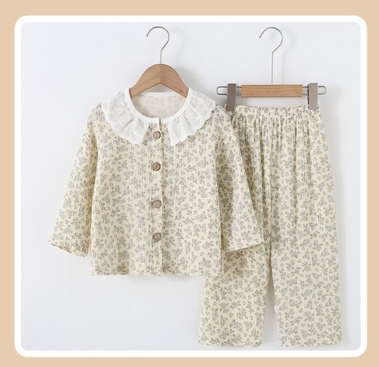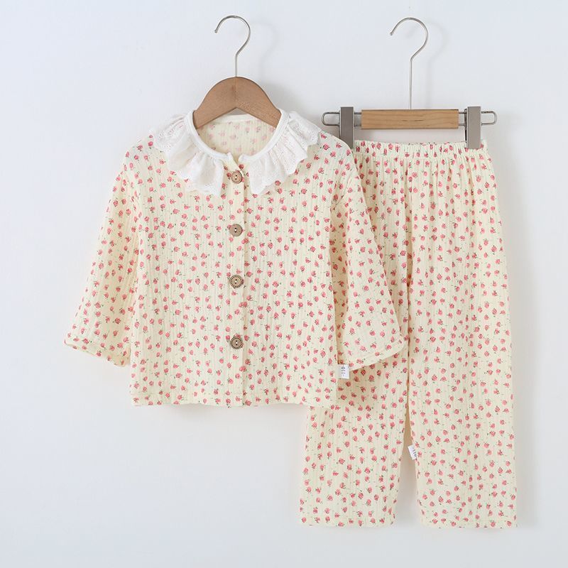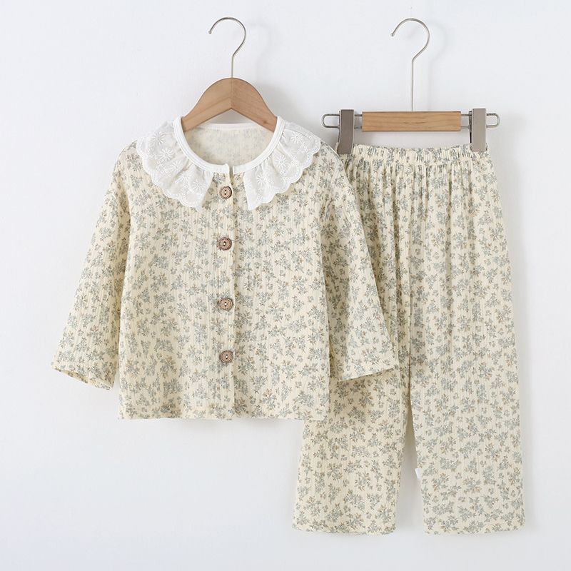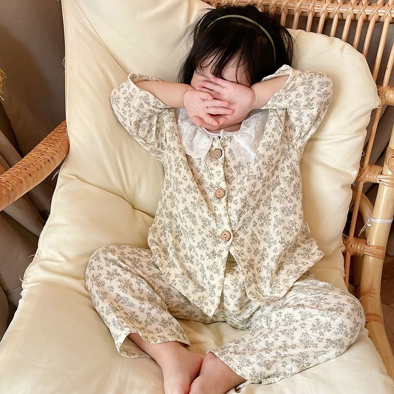 봄과 가을 신선한 소녀의 잠옷 면 어린이 긴 소매 면 원사 큰 어린이 소녀스토어 가기