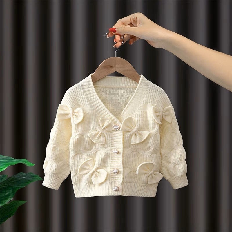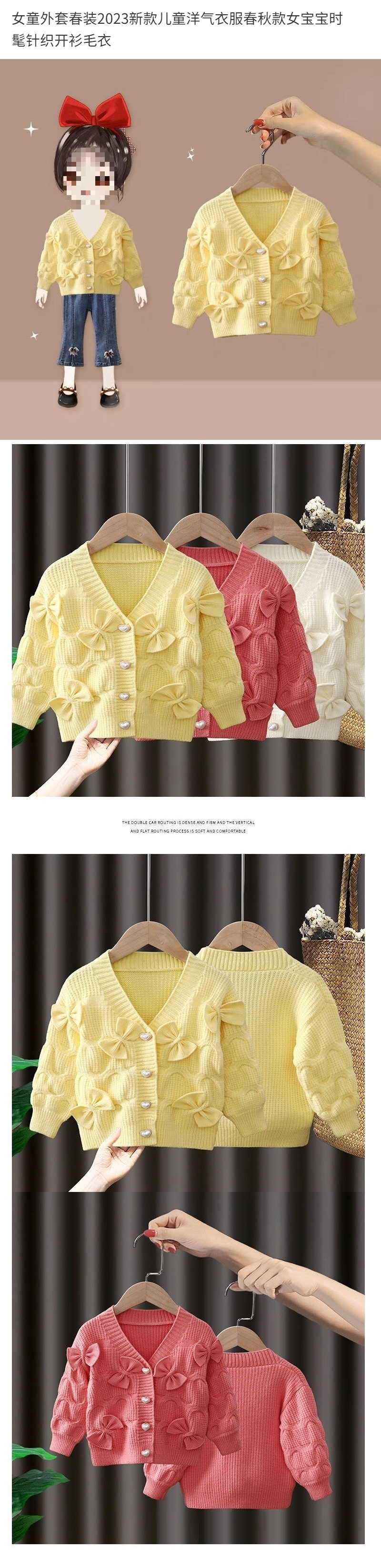 소녀 코트 봄 2025 새로운 어린이 서양 스타일 옷 봄과 가을 유행 니트 카디건 스웨터 아기 소녀스토어 가기