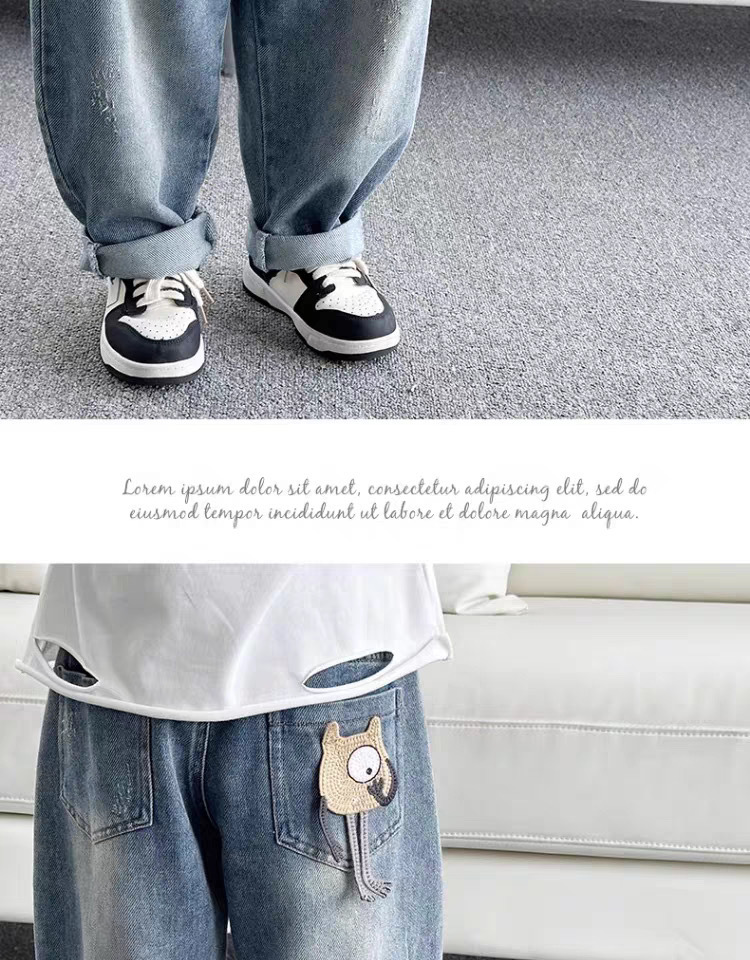 청바지 소년 2025 새로운 어린이 봄과 가을 얇은 밝은 색 스트레이트 바지 소년 한국 바지 아기 키즈