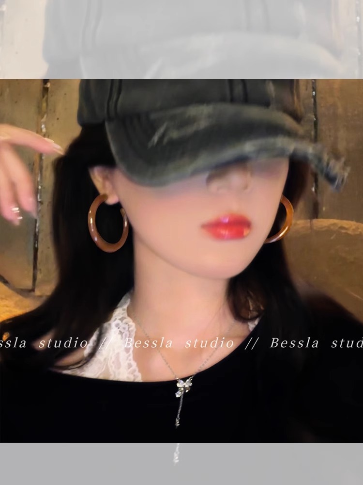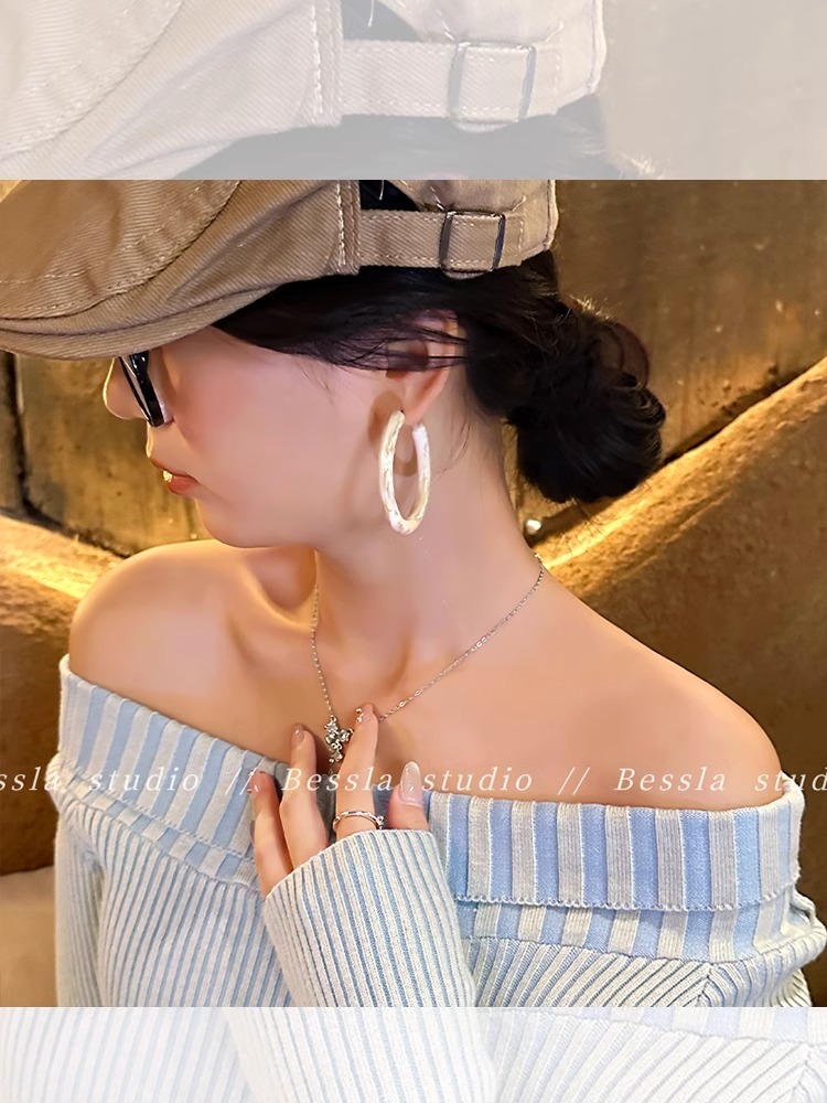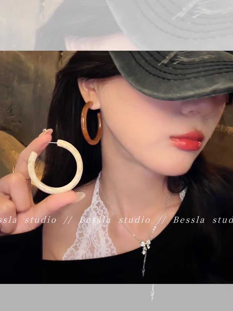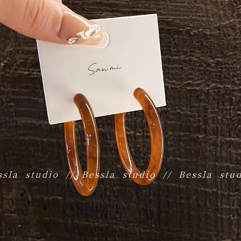 슈퍼 페어리 레트로 홍콩 스타일 염료 아크릴 올 매치 이어 링 여성 하이 엔드 센스 틈새 세련된 C 자형 우아한 귀걸이 트렌디스토어 가기
