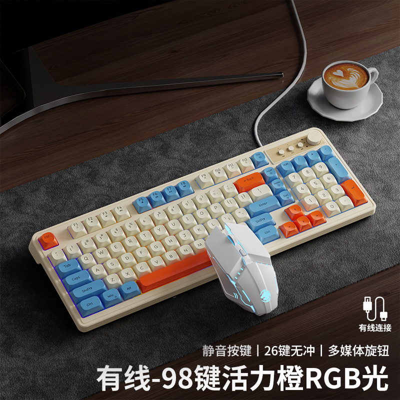 눈부신 다기능 침묵 키보드 및 마우스 기계적 느낌 소녀 사무실 게임 유선 인터넷 빨간 키보드 및 마우스 세트