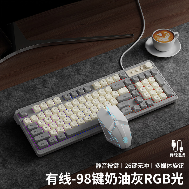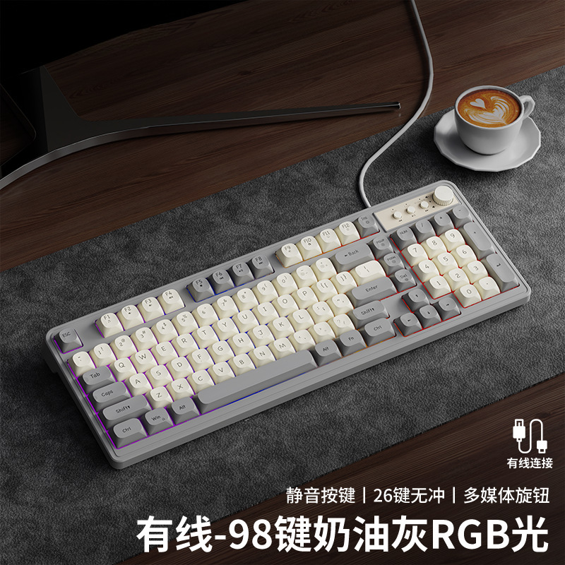 • [무음버튼]-크림그레이-유선-RGB조명[단일키보드]