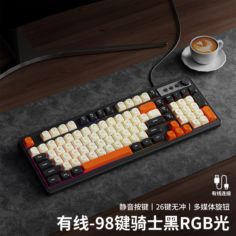 • [무음버튼]-나이트 블랙-유선-RGB 조명[싱글 키보드]
