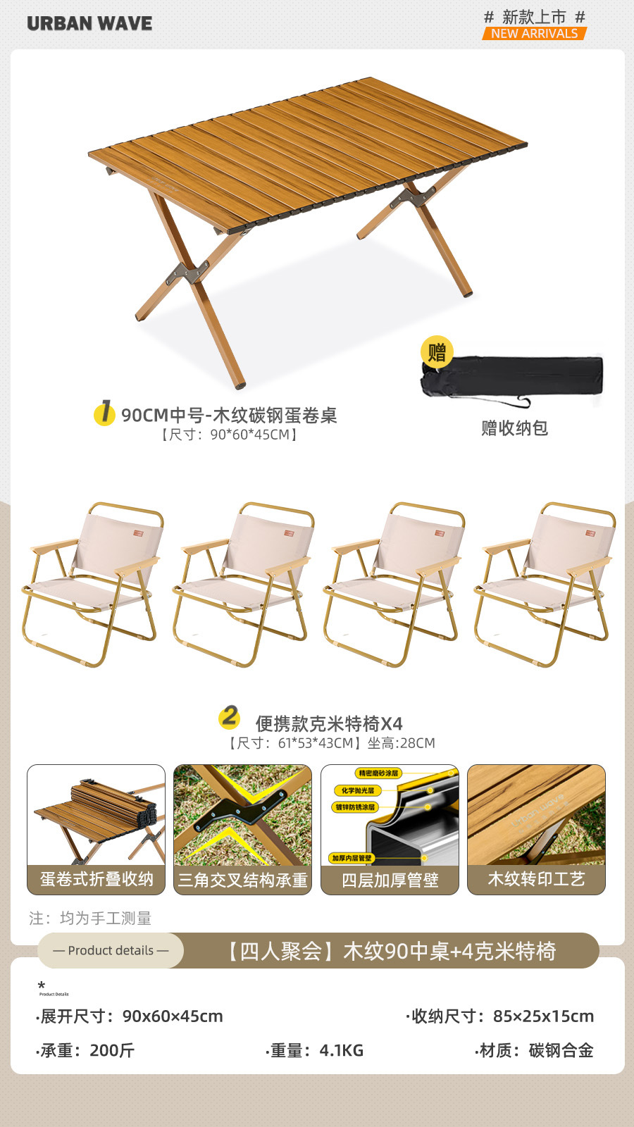 시티 웨이브 야외 접이식 테이블 캠핑 테이블과 의자 계란 롤 테이블 피크닉 휴대용 캠핑 장비 풀 세트 Shenheng