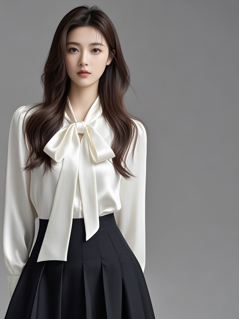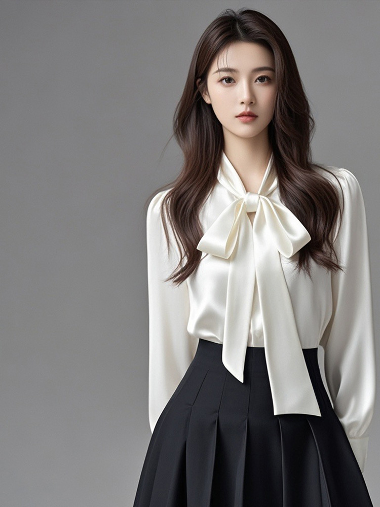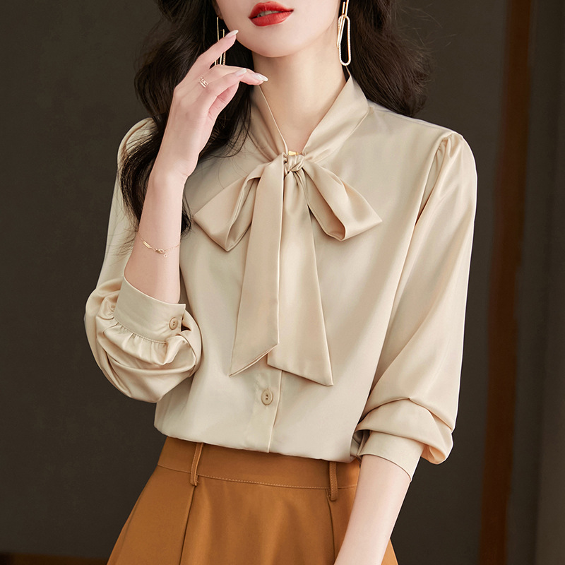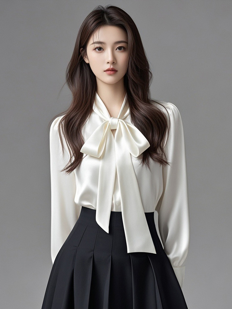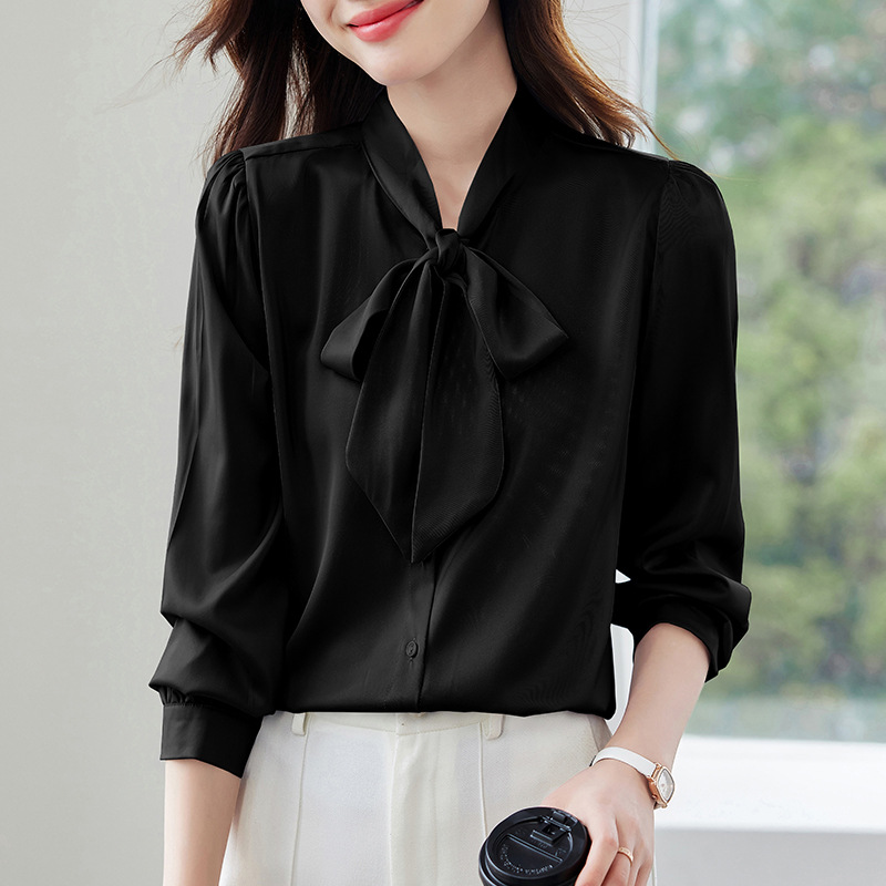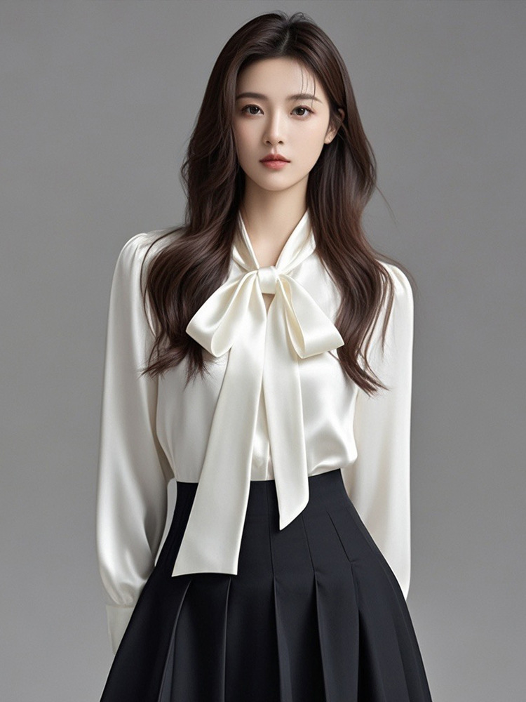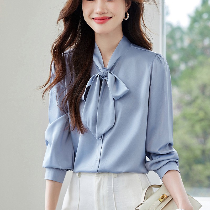 2025 봄과 가을 새로운 고급 우아한 리본 활 셔츠 여성 긴팔 전문 교육 흰색 셔츠를 입고스토어 가기