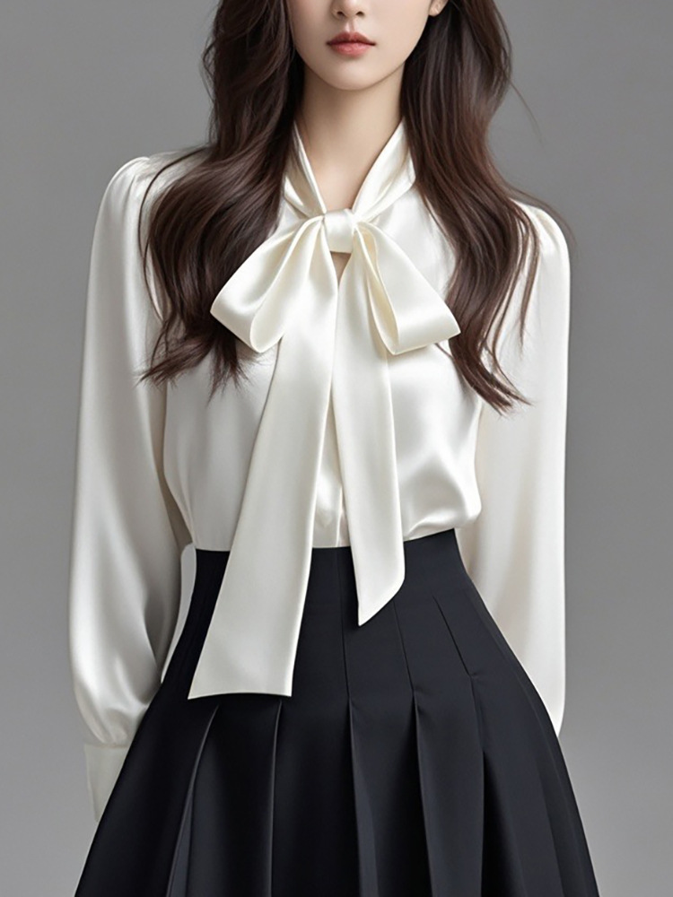 2025 봄과 가을 새로운 고급 우아한 리본 활 셔츠 여성 긴팔 전문 교육 흰색 셔츠를 입고