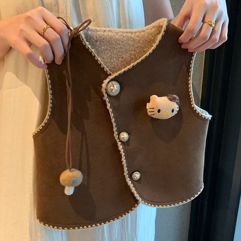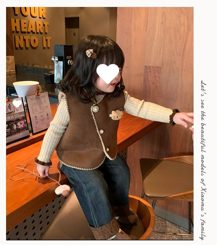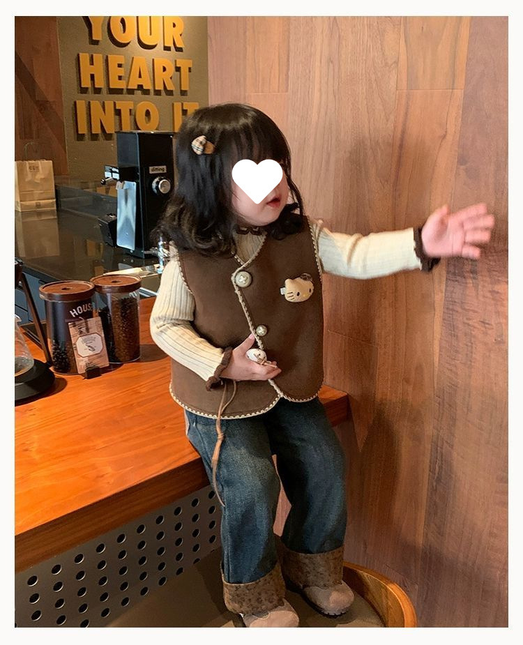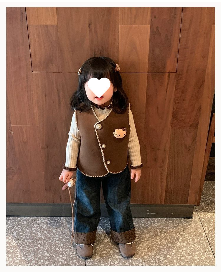 여자 모피 원피스 조끼 2025 새로운 겨울 키드 걸스 한국식 양고기 양모 조끼 착용