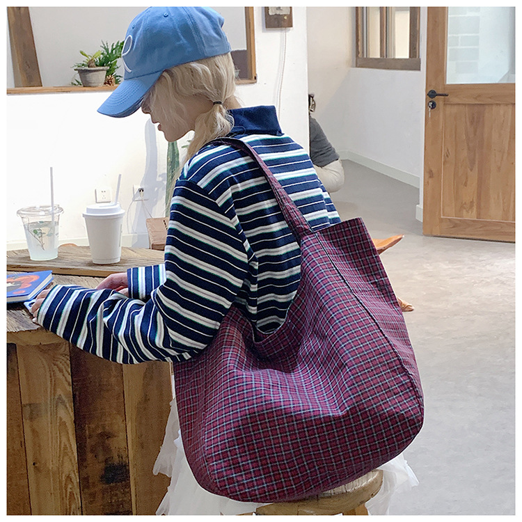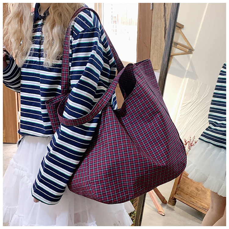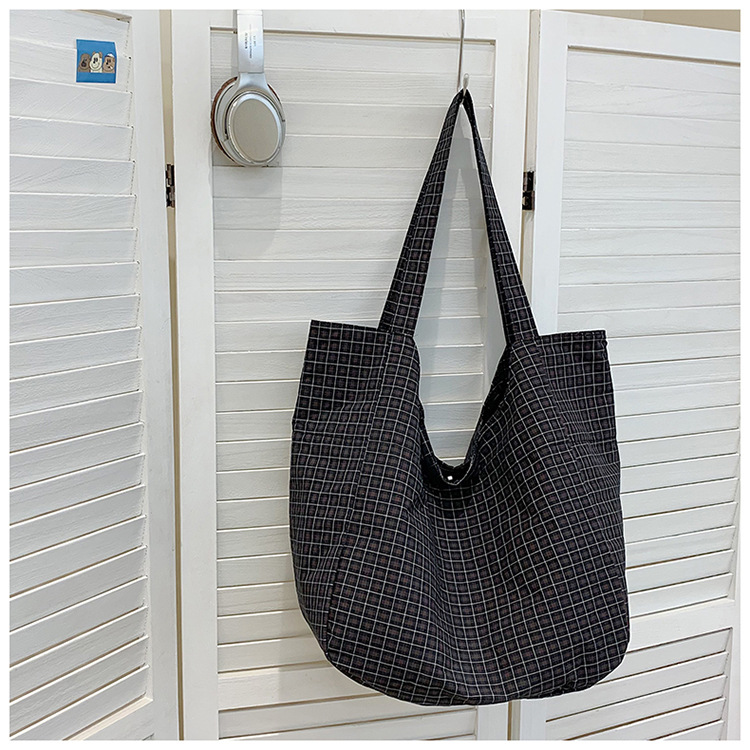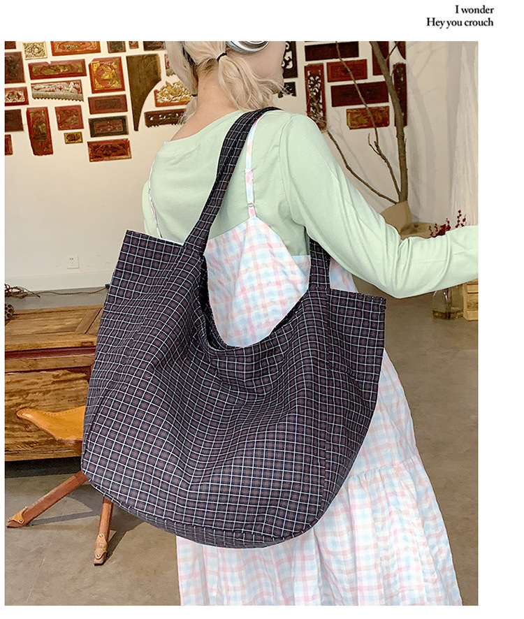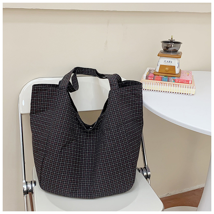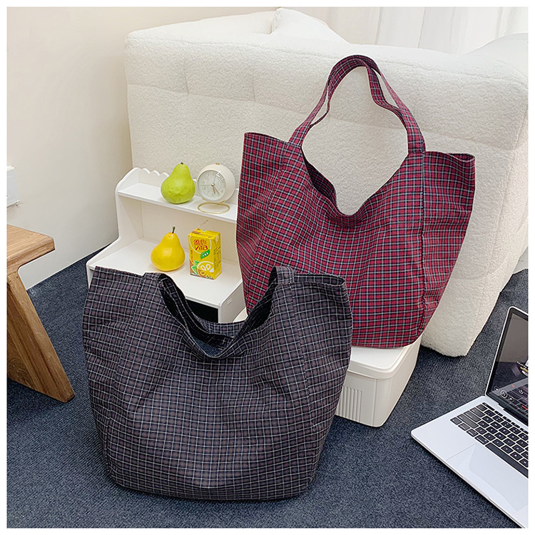 한국 스타일 세련된 격자 무늬 가방 여성 가방 새로운 대용량 패션 캐주얼 캐주얼 스타일 어깨 크로스 바디 토트 백스토어 가기