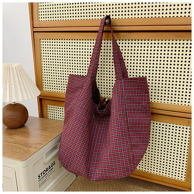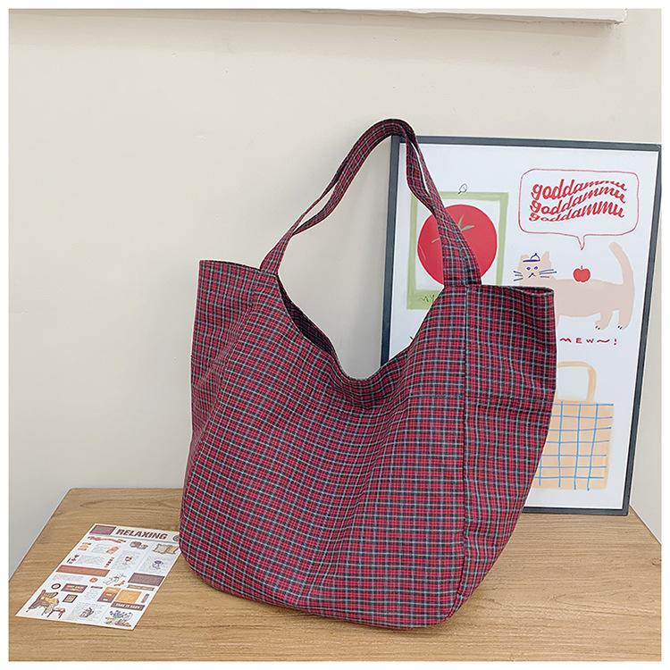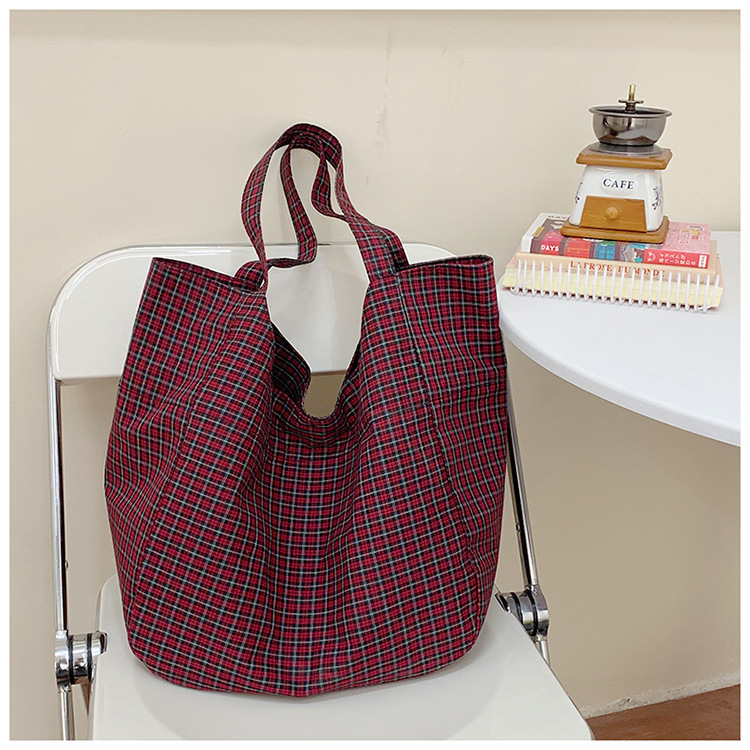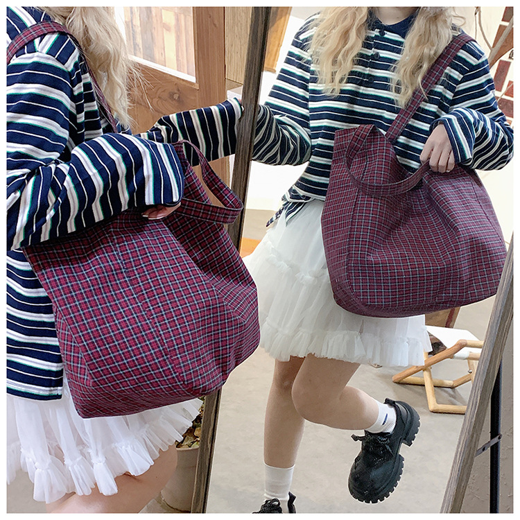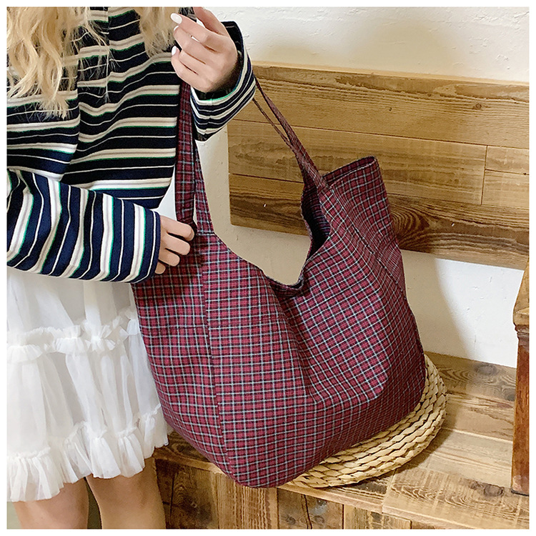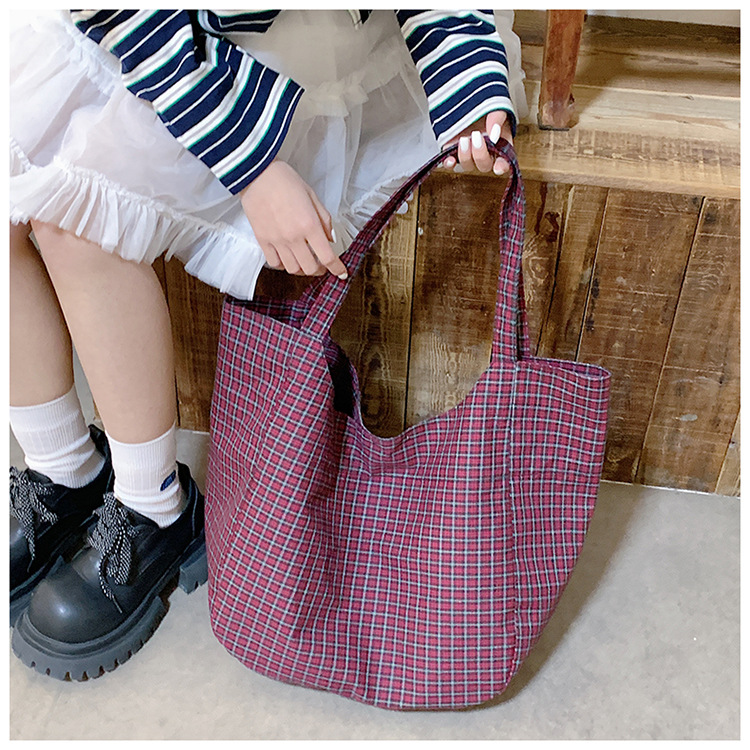 한국 스타일 세련된 격자 무늬 가방 여성 가방 새로운 대용량 패션 캐주얼 캐주얼 스타일 어깨 크로스 바디 토트 백스토어 가기