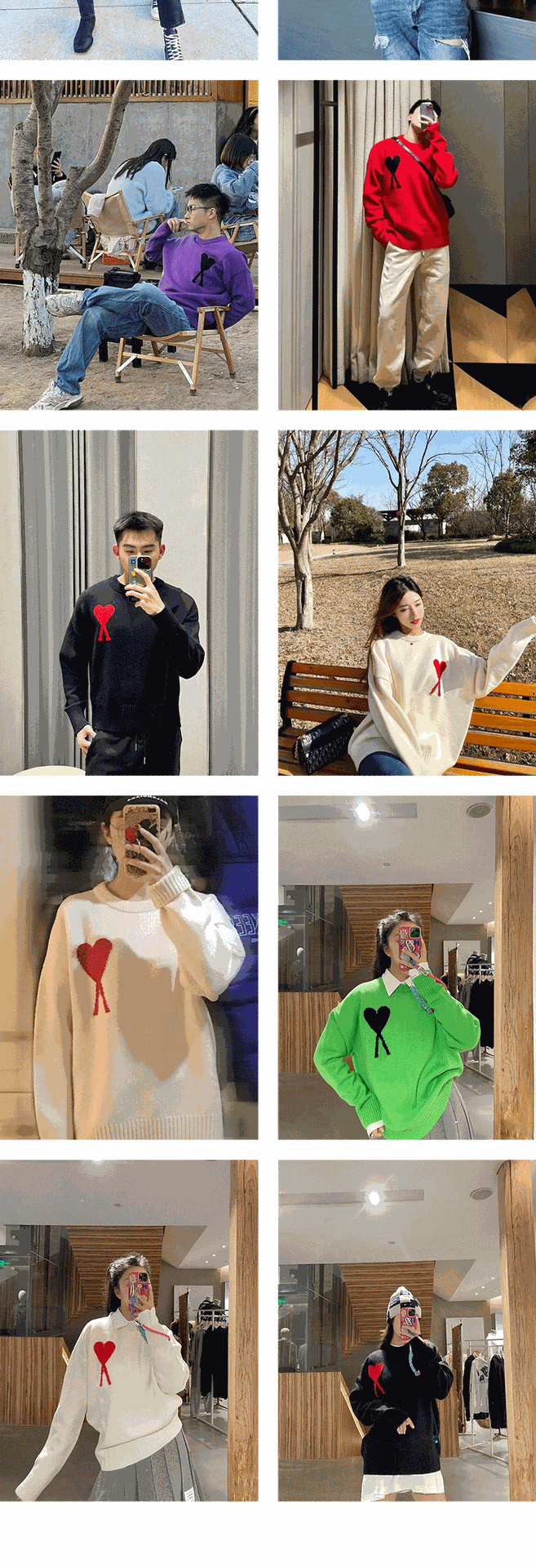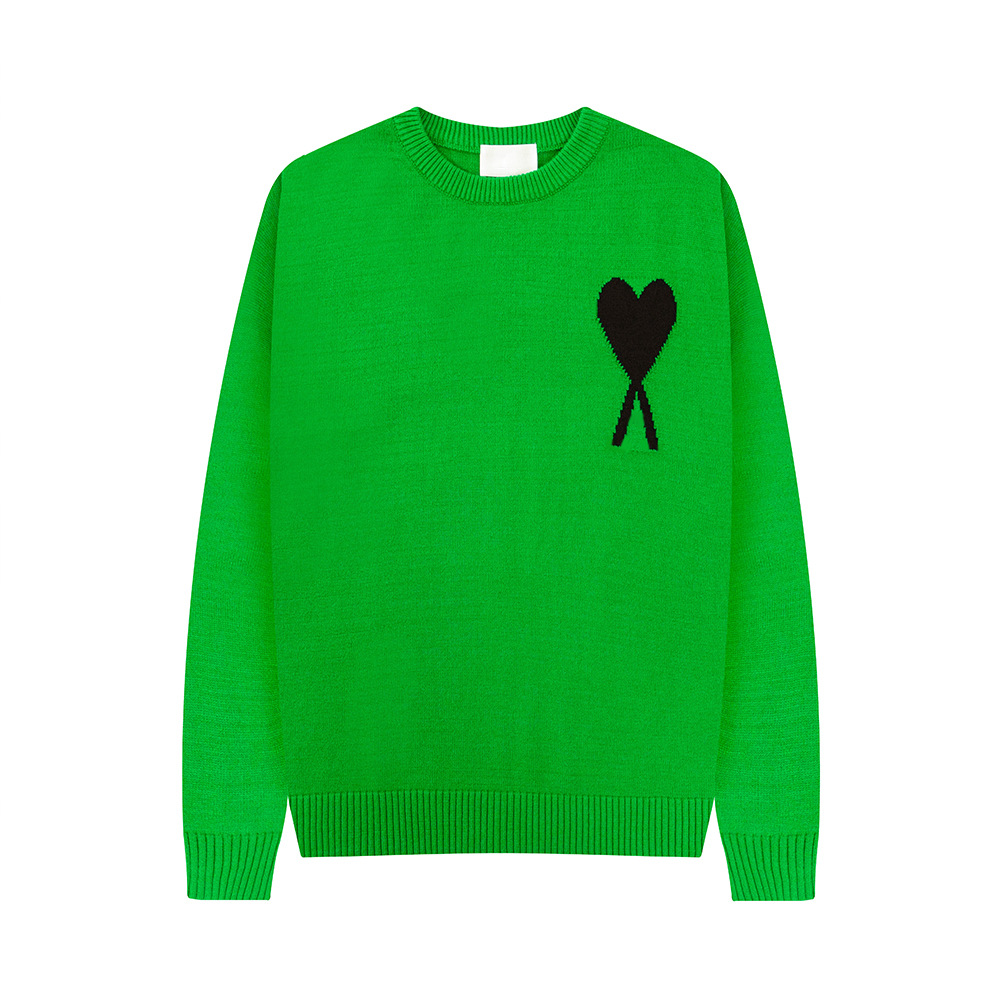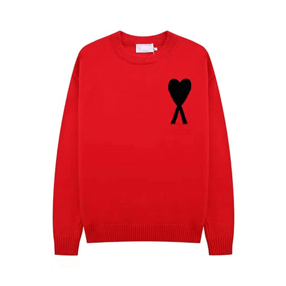 가을과 겨울 새로운 라운드 넥 레드 하트 스웨터 자카드 사랑 AMI CLAMS 레저 풀오버 스웨터를 가진 남녀스토어 가기