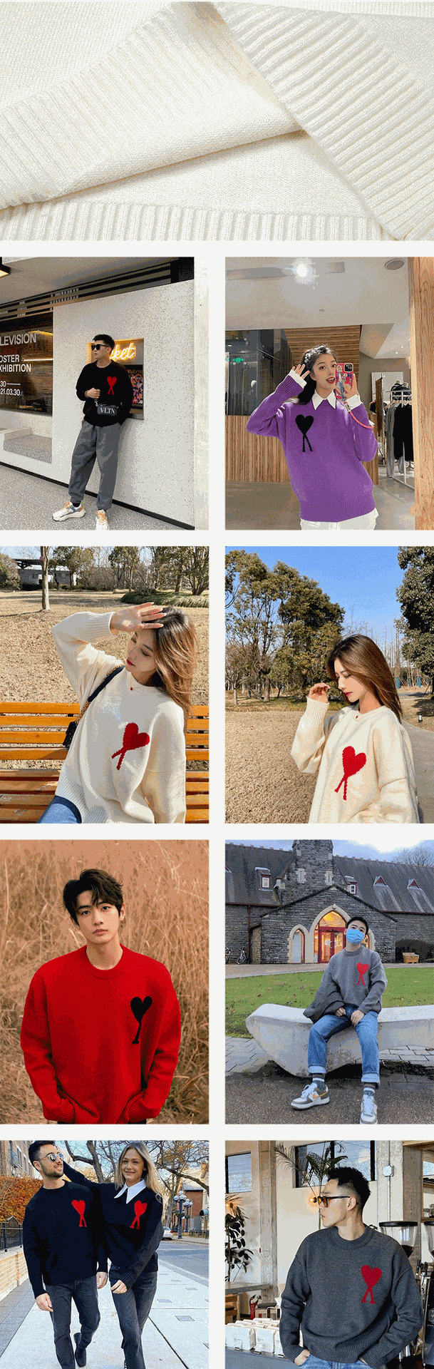 가을과 겨울 새로운 라운드 넥 레드 하트 스웨터 자카드 사랑 AMI CLAMS 레저 풀오버 스웨터를 가진 남녀