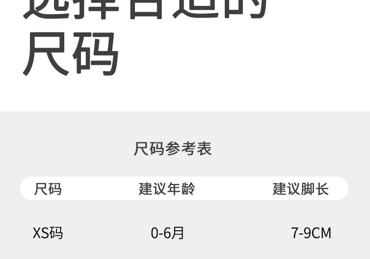 • XS 사이즈 0-6개월 권장 발 길이 8-10CM