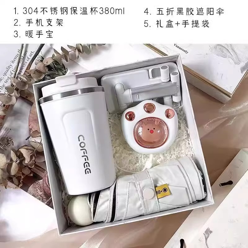 • 더블 마시는 컵 + 산호 벨벳 타월 + 캡슐 우산