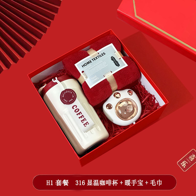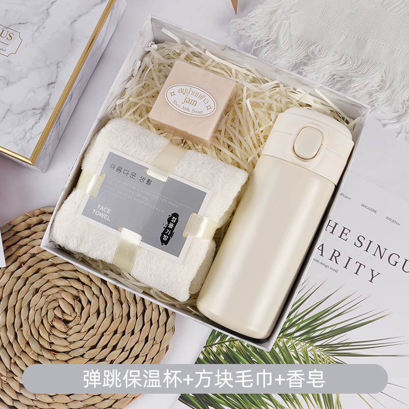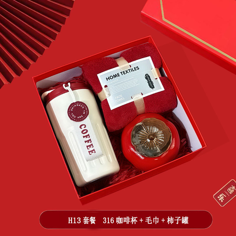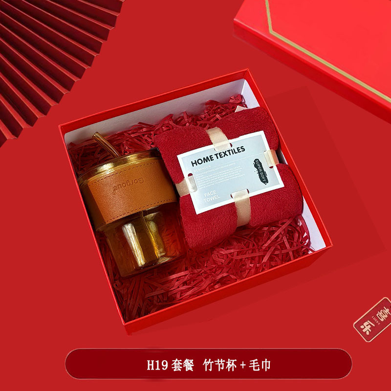 • 튀는 컵 + 수건 + 감병 빨간색 선물 상자 세트