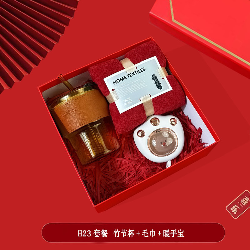 • 대나무 컵 + 수건 + 손난로 레드 선물 상자 세트