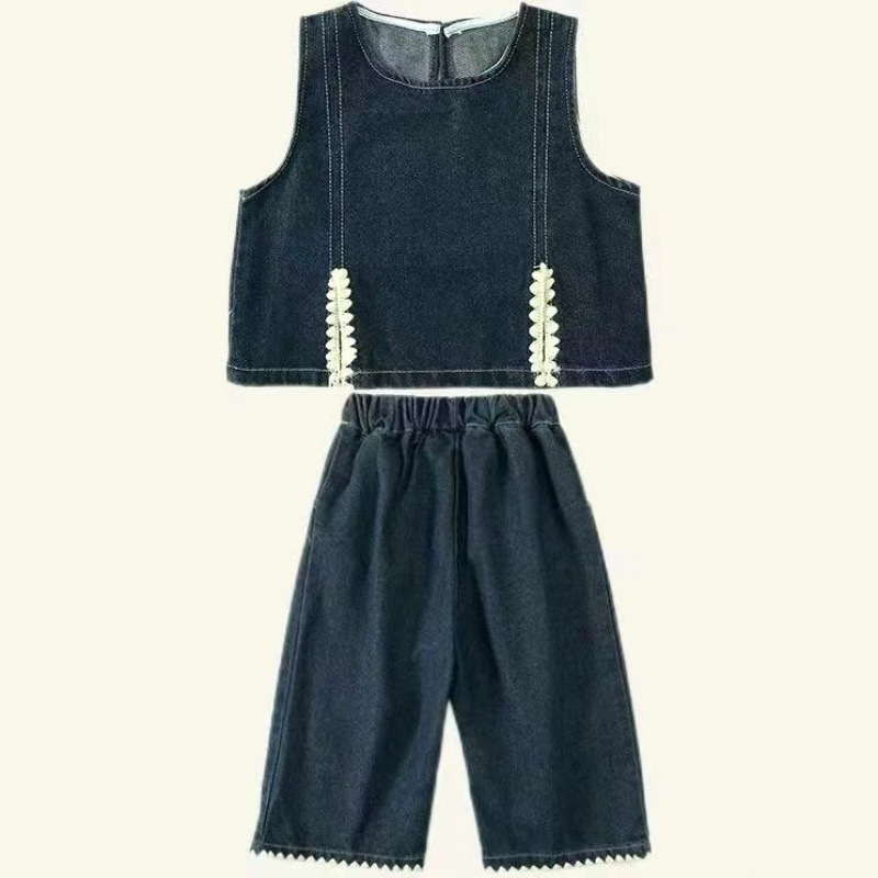 여자 가을 세트 2025 새로운 어린이 외국 스타일 데님 조끼 바지 셔츠 3 개