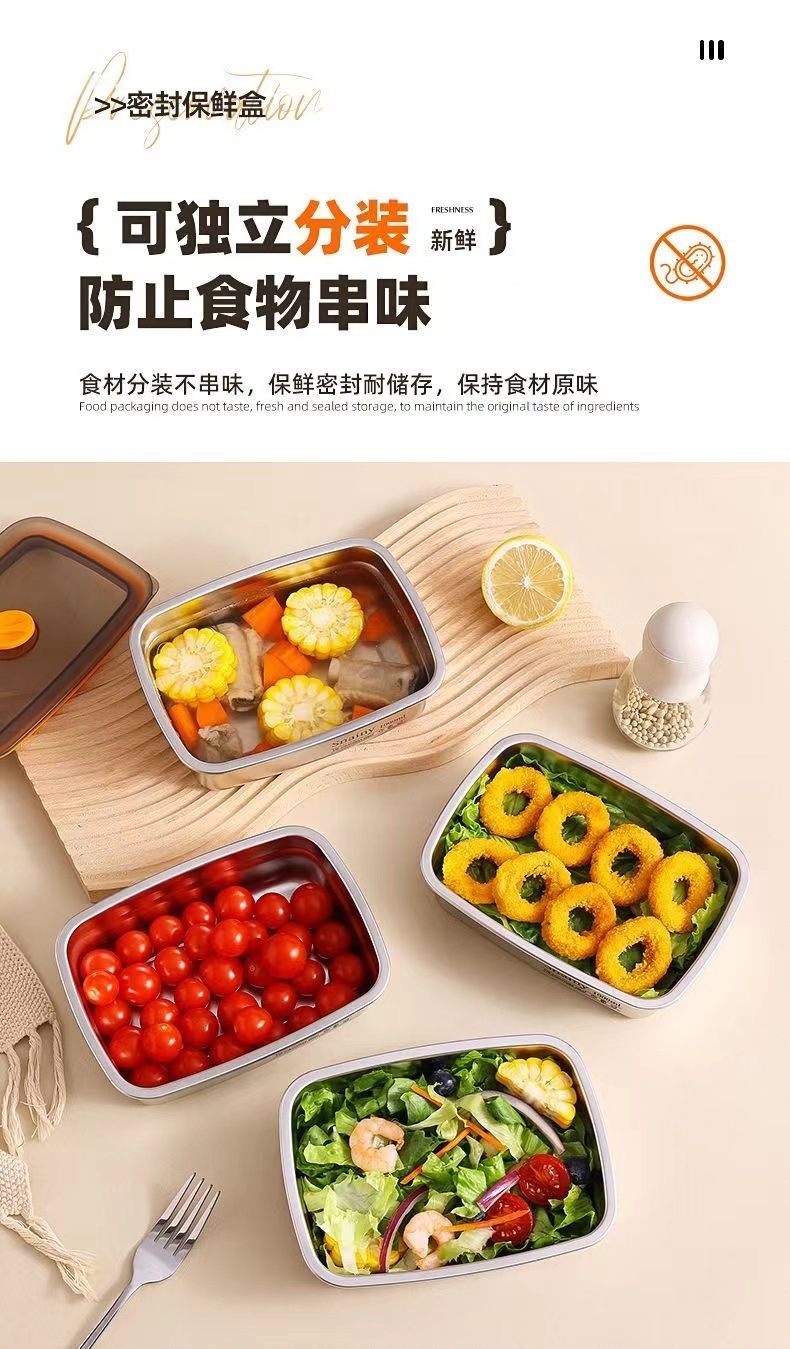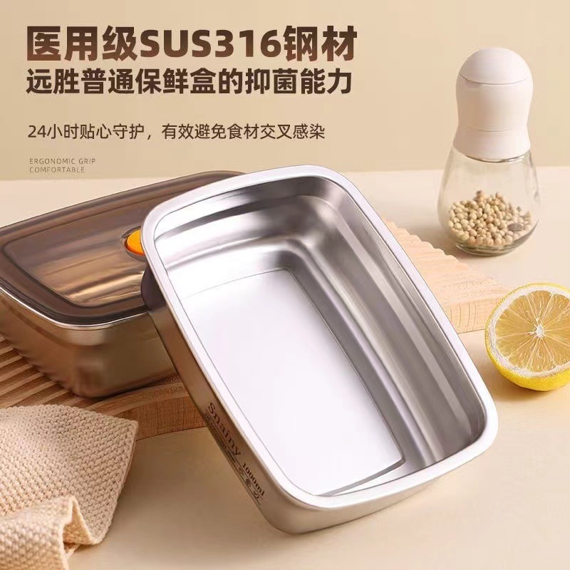 ✅두꺼운 316L 스테인레스 스틸 식품 급료 도시락 직사각형 신선한 보관 상자 밀봉 된 뚜껑 도시락 상자 과일스토어 가기
