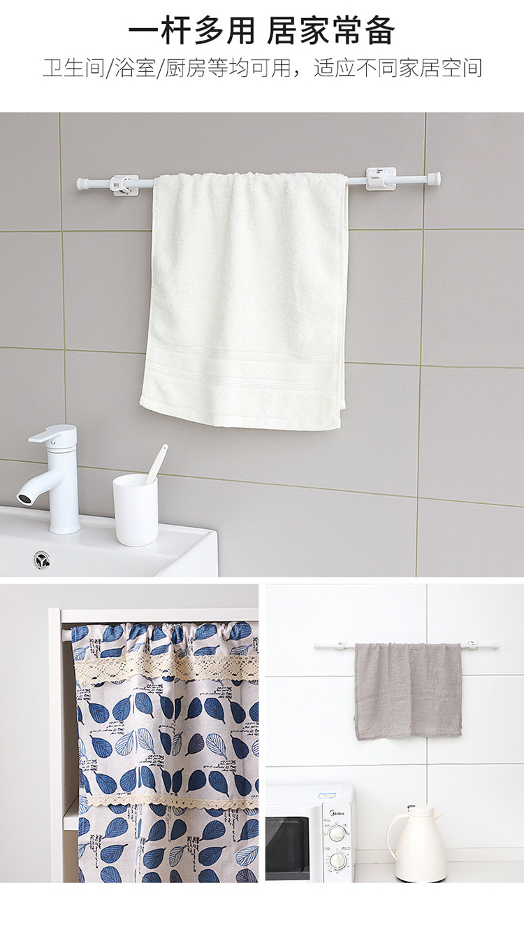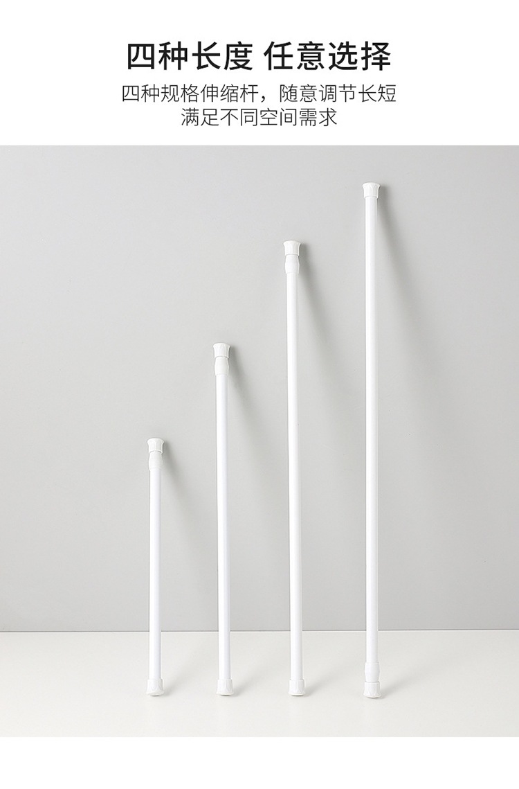 흰색 페인트 비 천공 커튼 텔레스코픽 로드 주방 워터 슈 캐비닛 레이어 로드 욕실 커튼 막대 클립 후크 지원 프레임스토어 가기