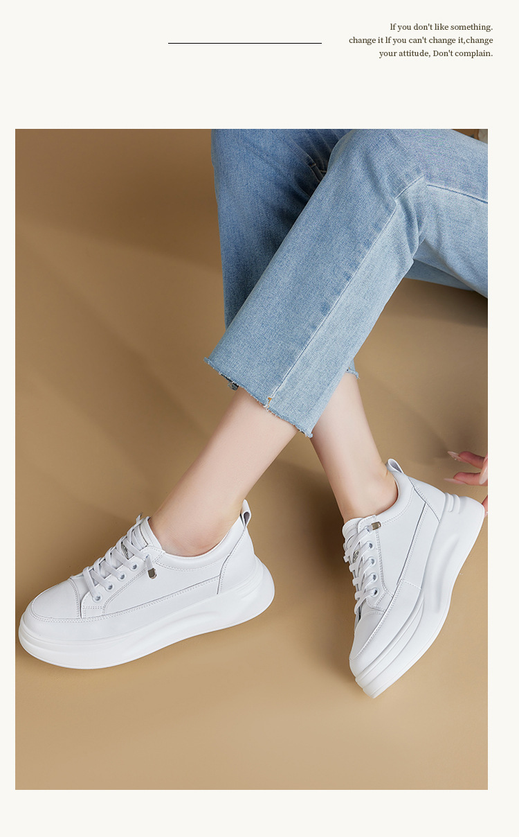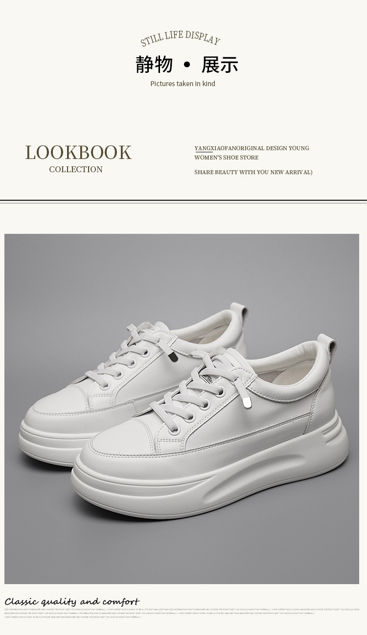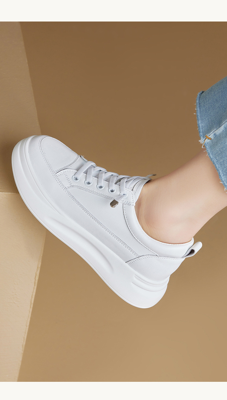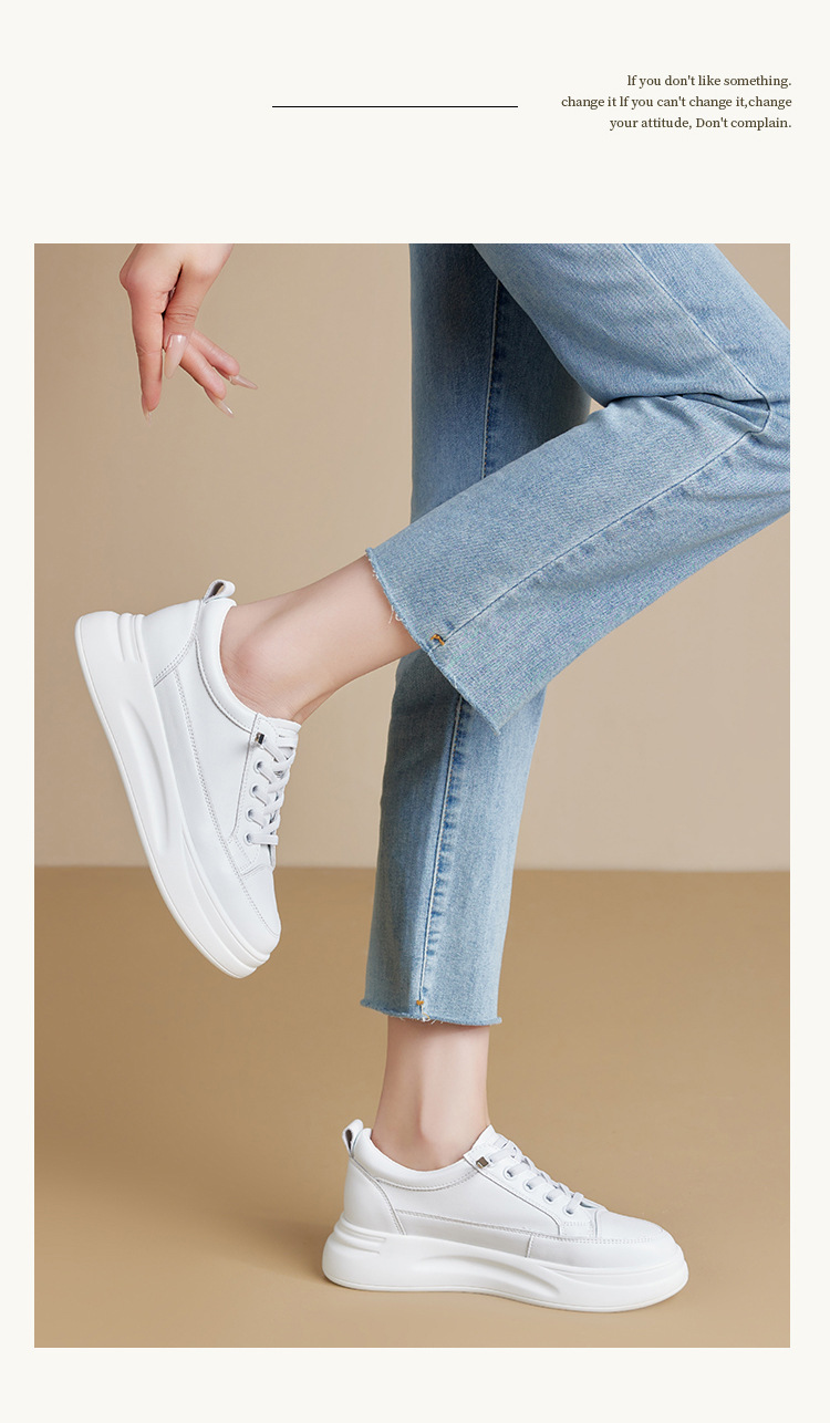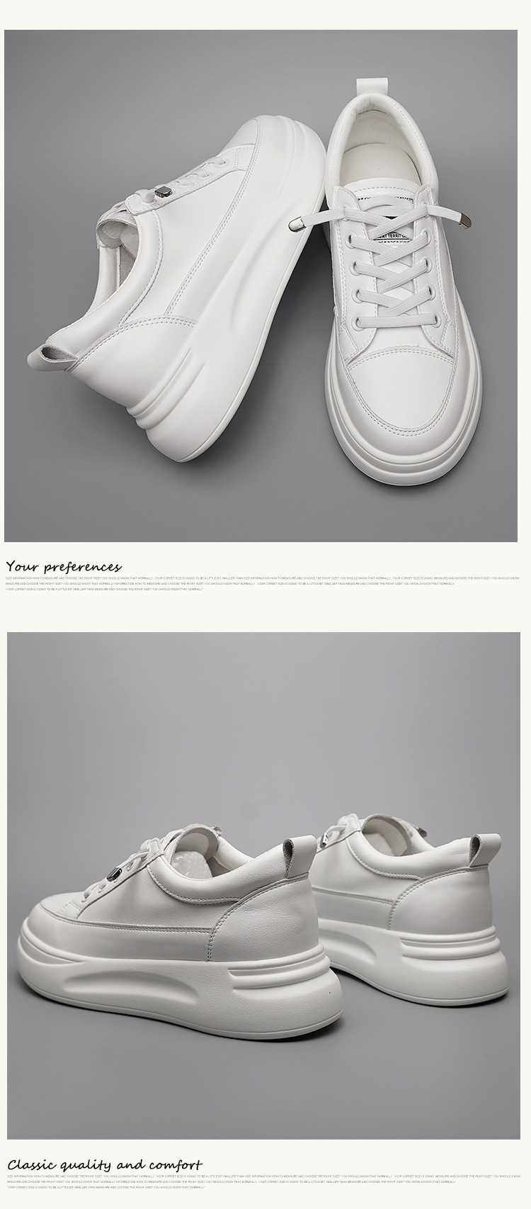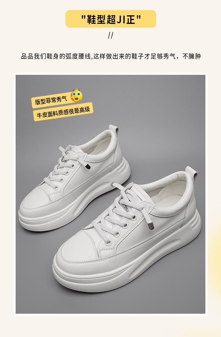 Cowhide Edition 두꺼운 밑창 트렌디 화이트 슈즈 2025 봄 폭발 여성 올매치 캐주얼 패션 높이 증가 편안한 보드 슈즈스토어 가기
