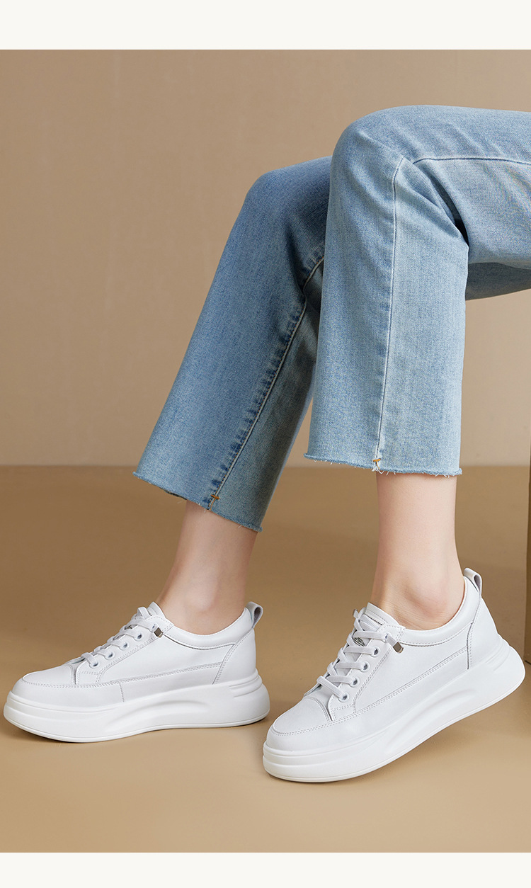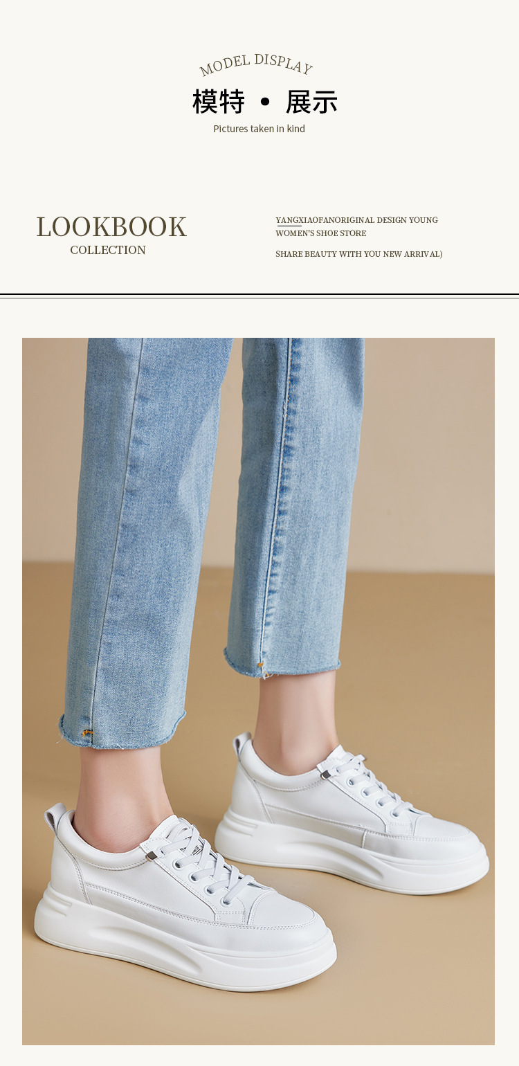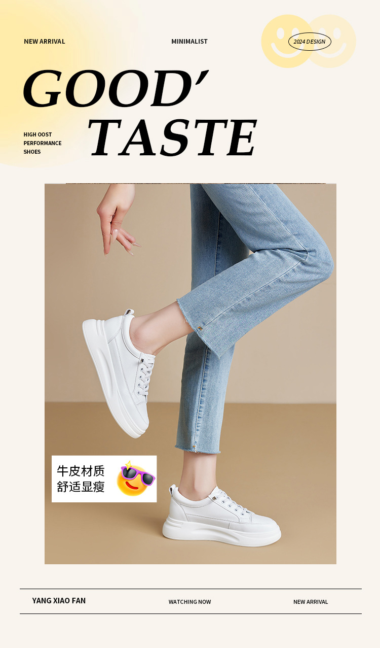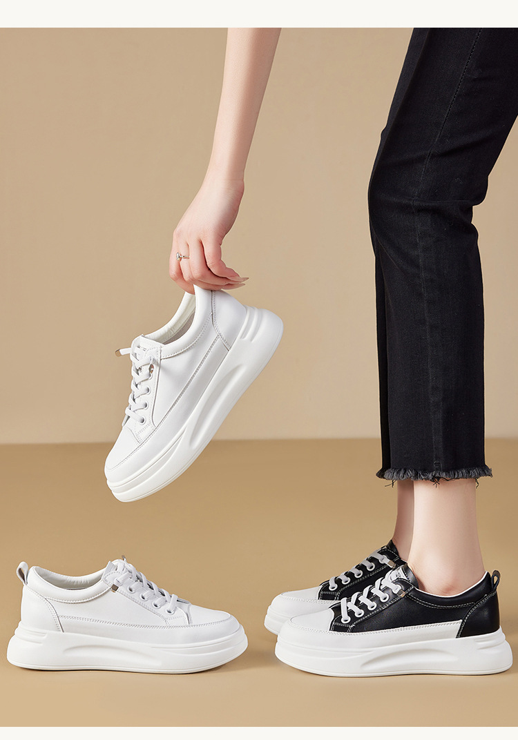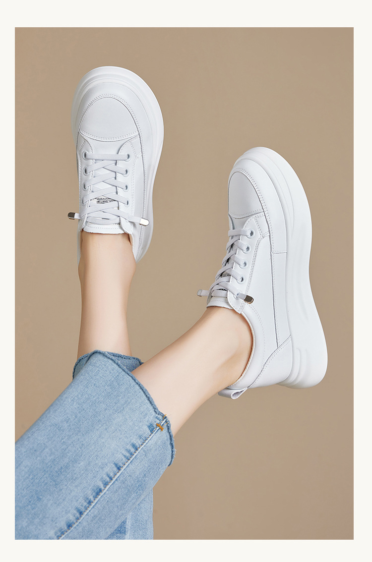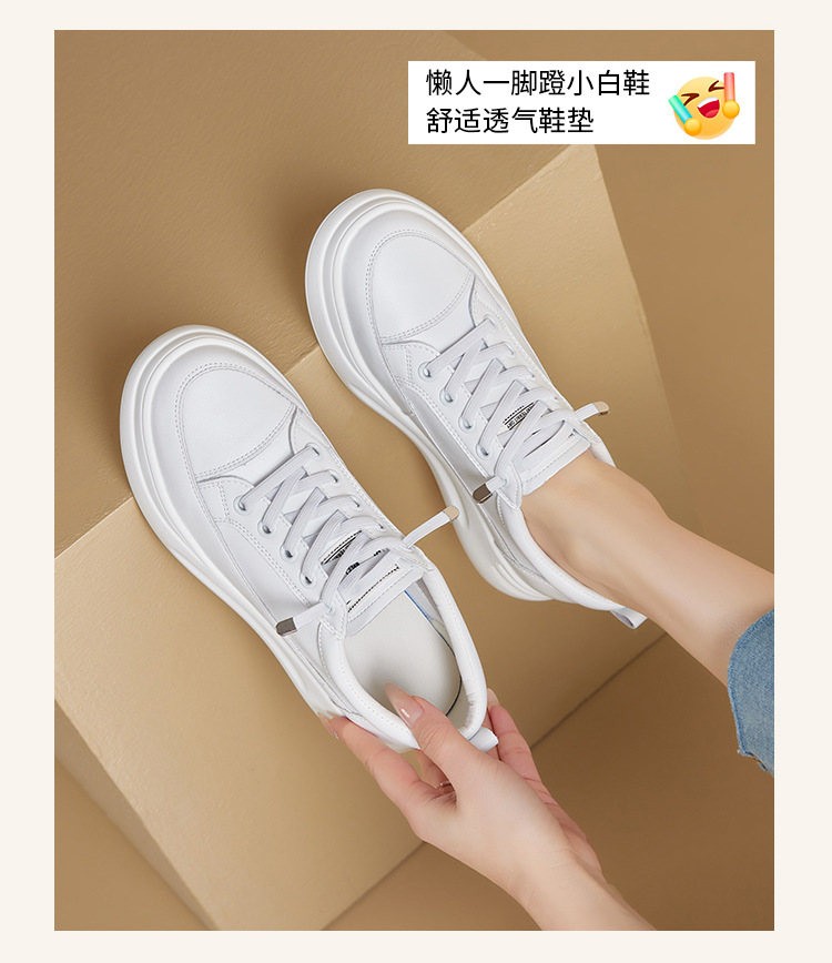 Cowhide Edition 두꺼운 밑창 트렌디 화이트 슈즈 2025 봄 폭발 여성 올매치 캐주얼 패션 높이 증가 편안한 보드 슈즈스토어 가기