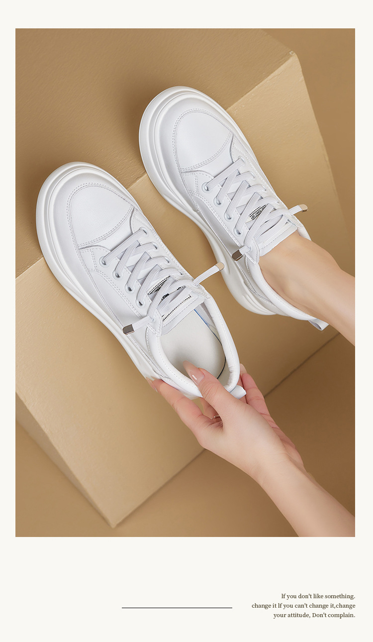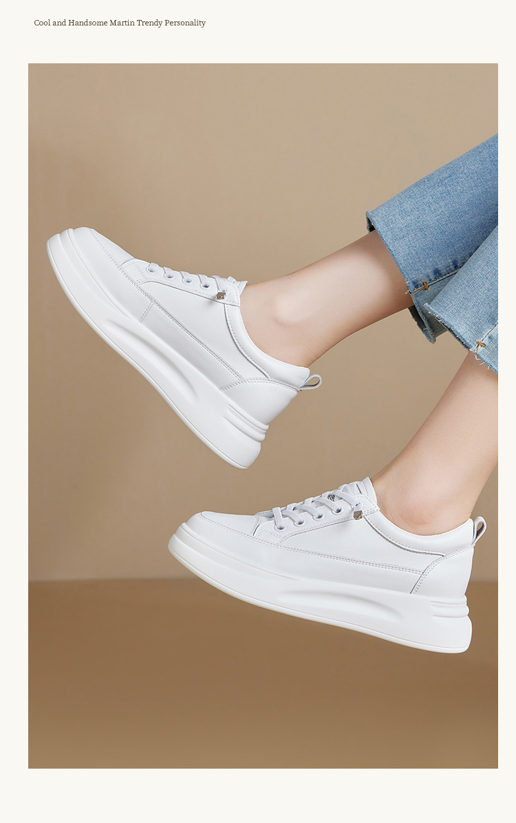 Cowhide Edition 두꺼운 밑창 트렌디 화이트 슈즈 2025 봄 폭발 여성 올매치 캐주얼 패션 높이 증가 편안한 보드 슈즈