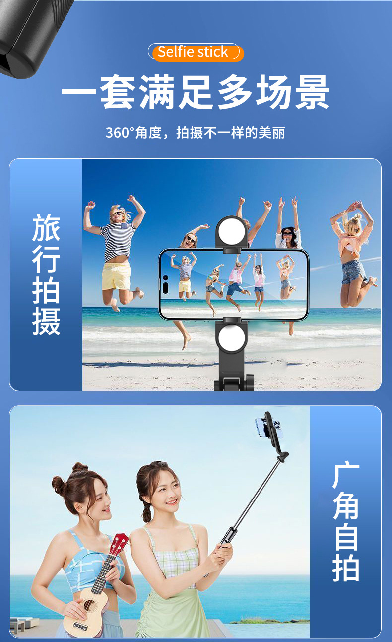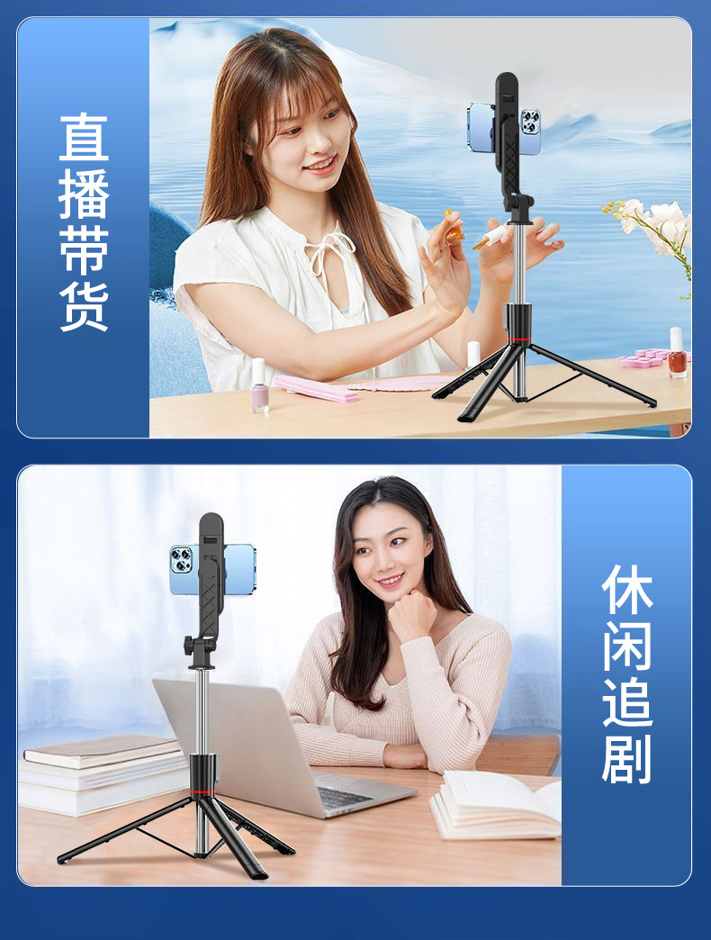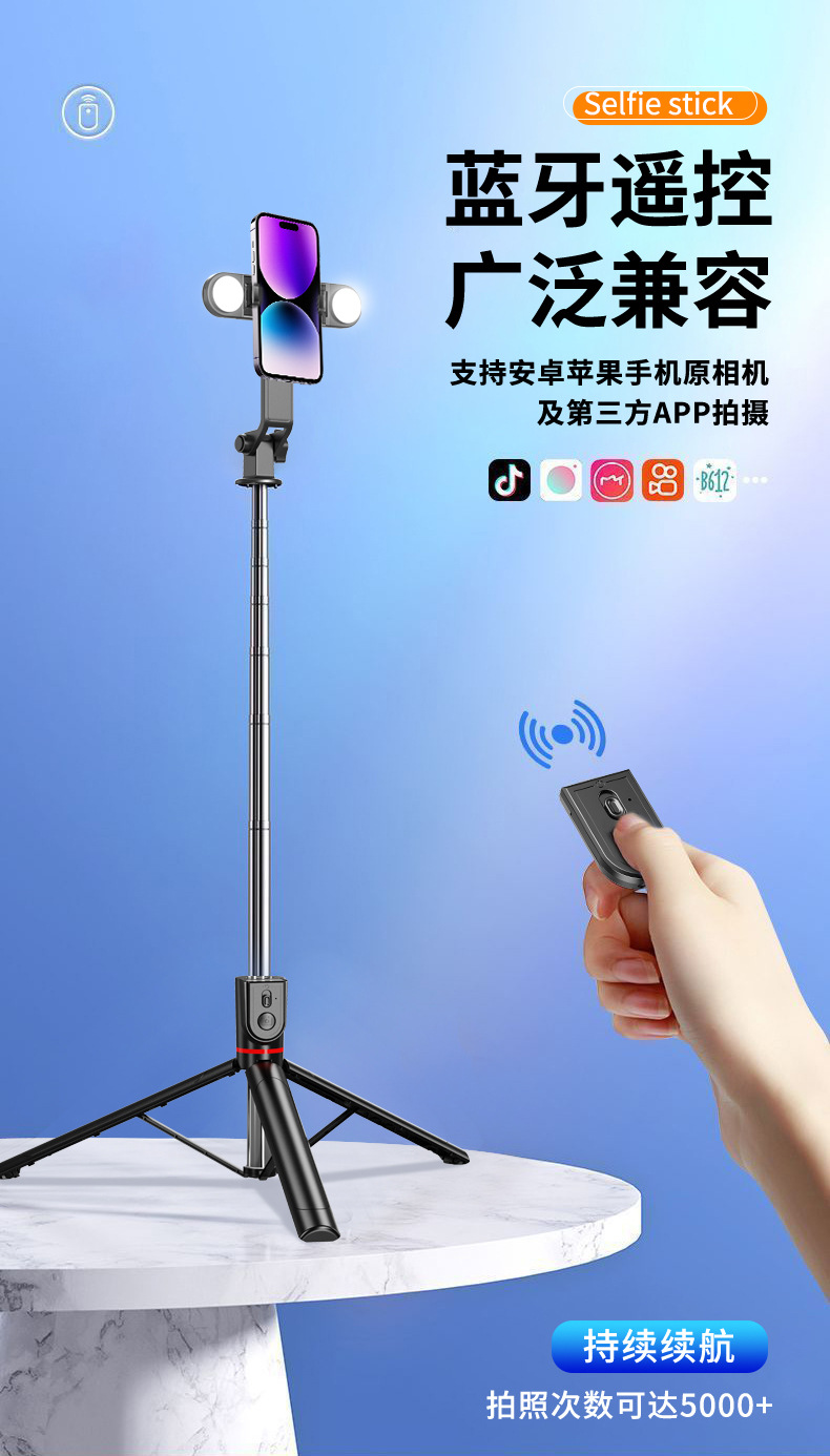 새로운 휴대 전화 블루투스 셀카 스틱 H58 휴대용 라이브 방송 삼각대 휴대 전화 홀더 채우기 빛이있는 셀카 유물