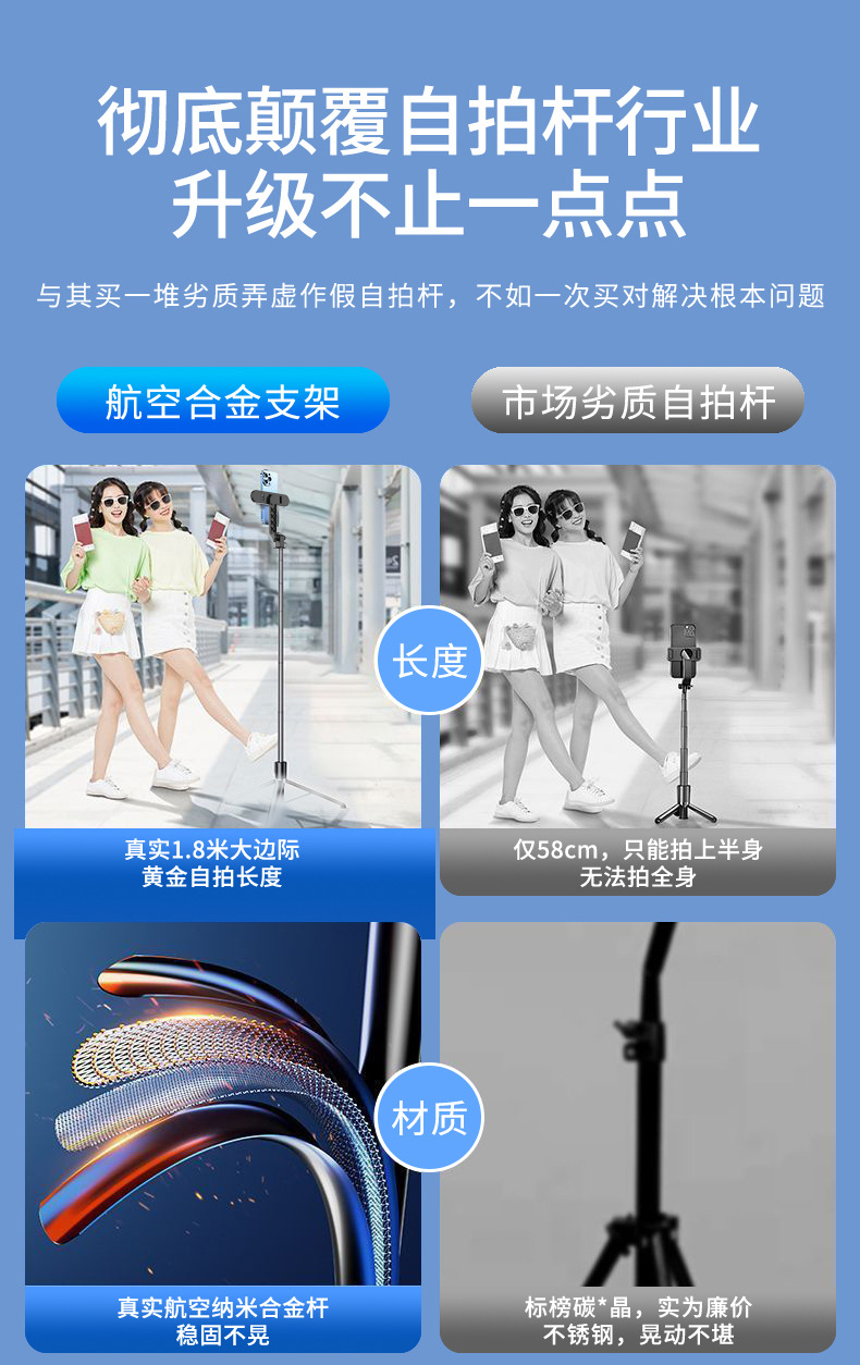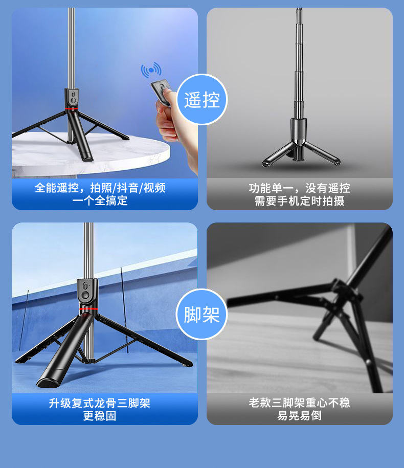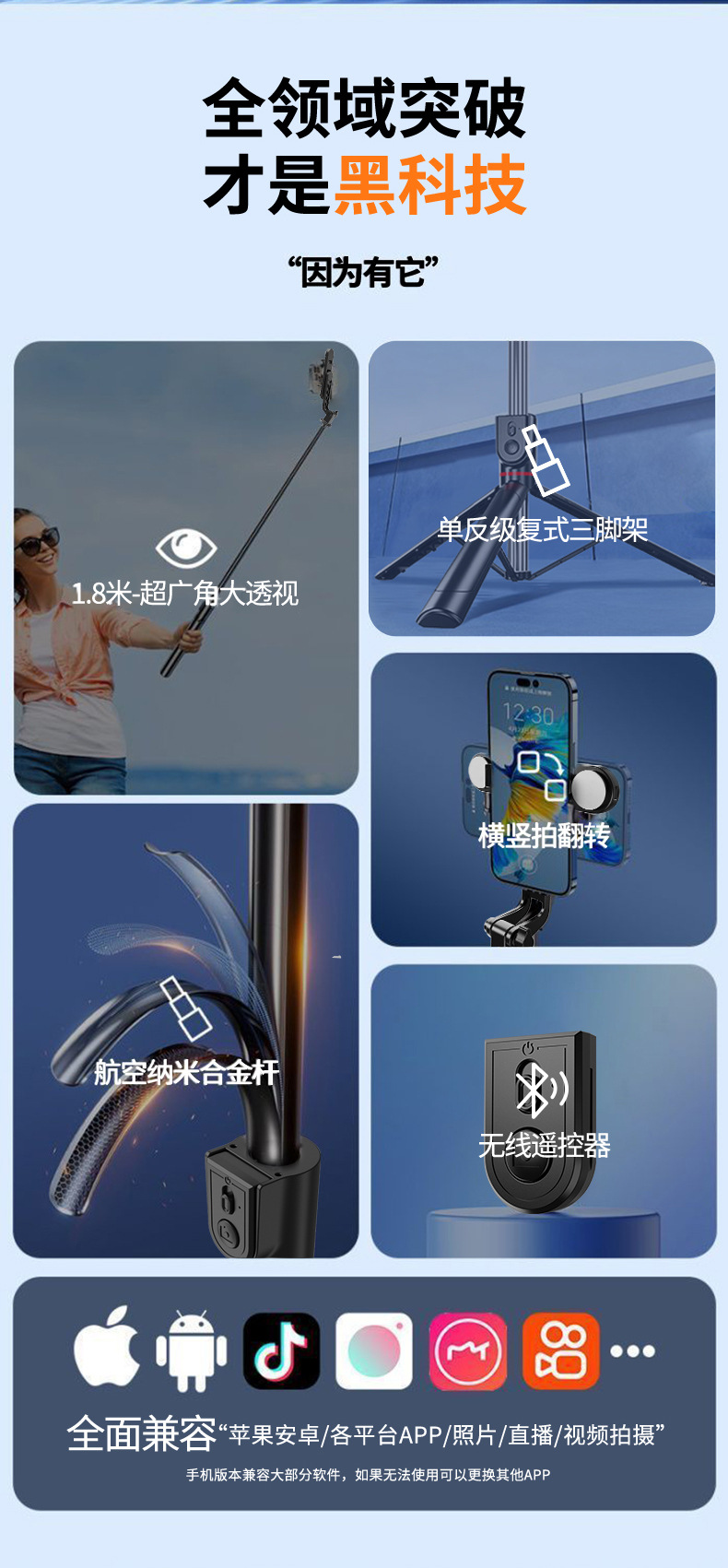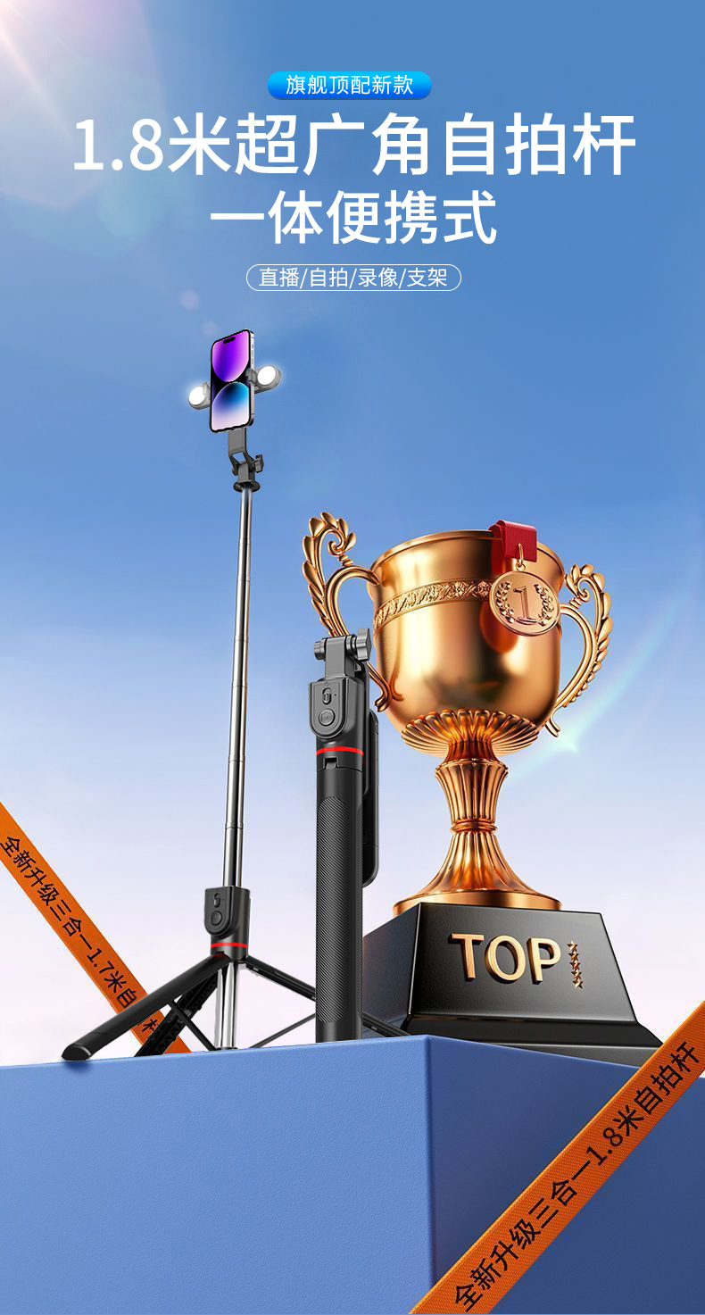 새로운 휴대 전화 블루투스 셀카 스틱 H58 휴대용 라이브 방송 삼각대 휴대 전화 홀더 채우기 빛이있는 셀카 유물