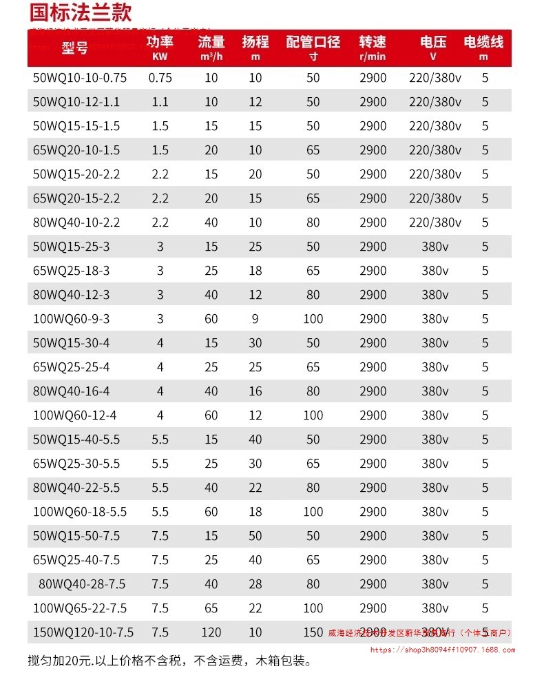 • [국가 표준 모든 구리] 50WQ15-50/7.5KW